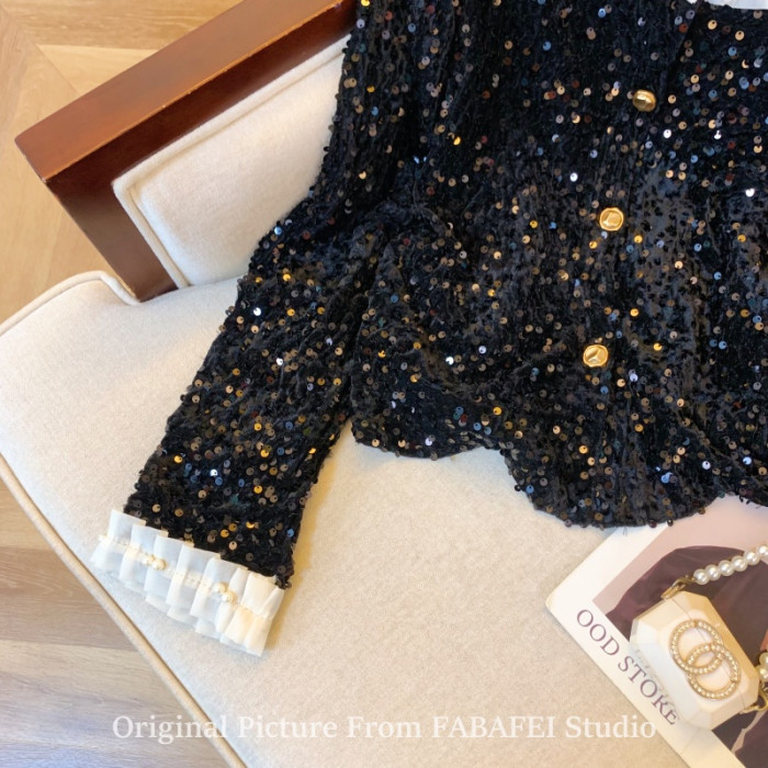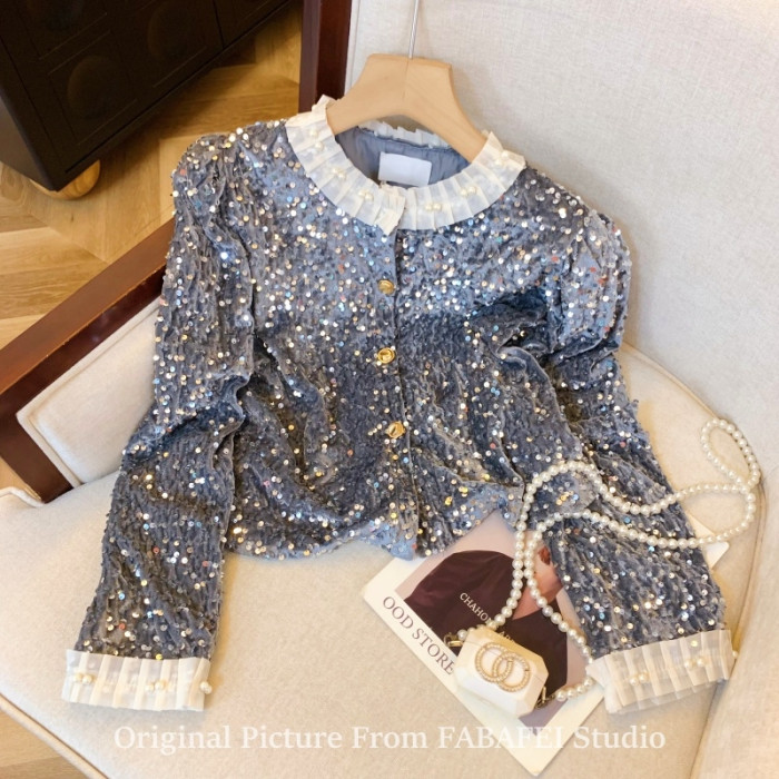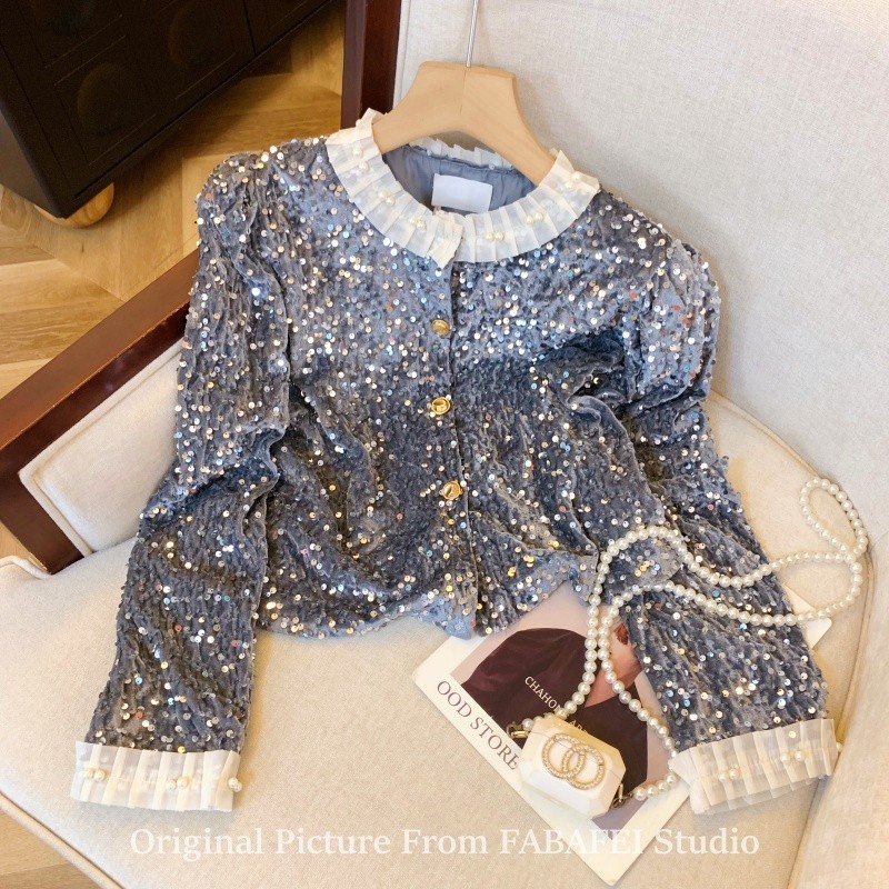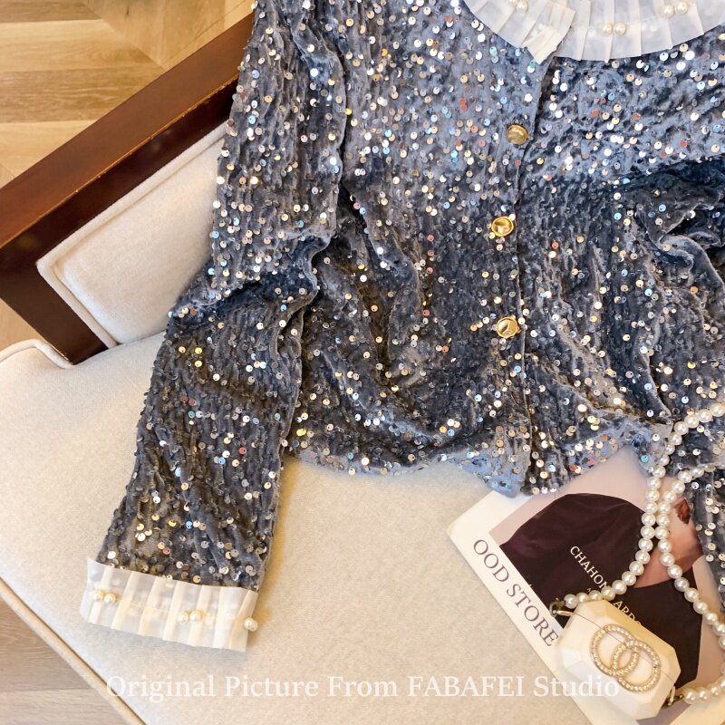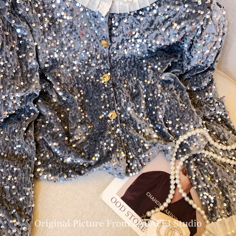 法式重工釘珠亮片絲絨襯衫女春春款輕奢高級感外套獨特超好看上衣