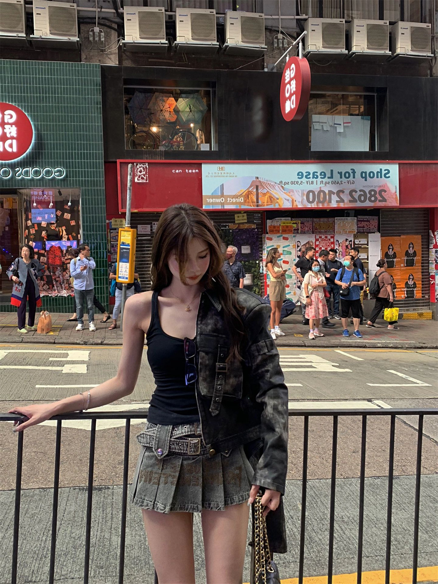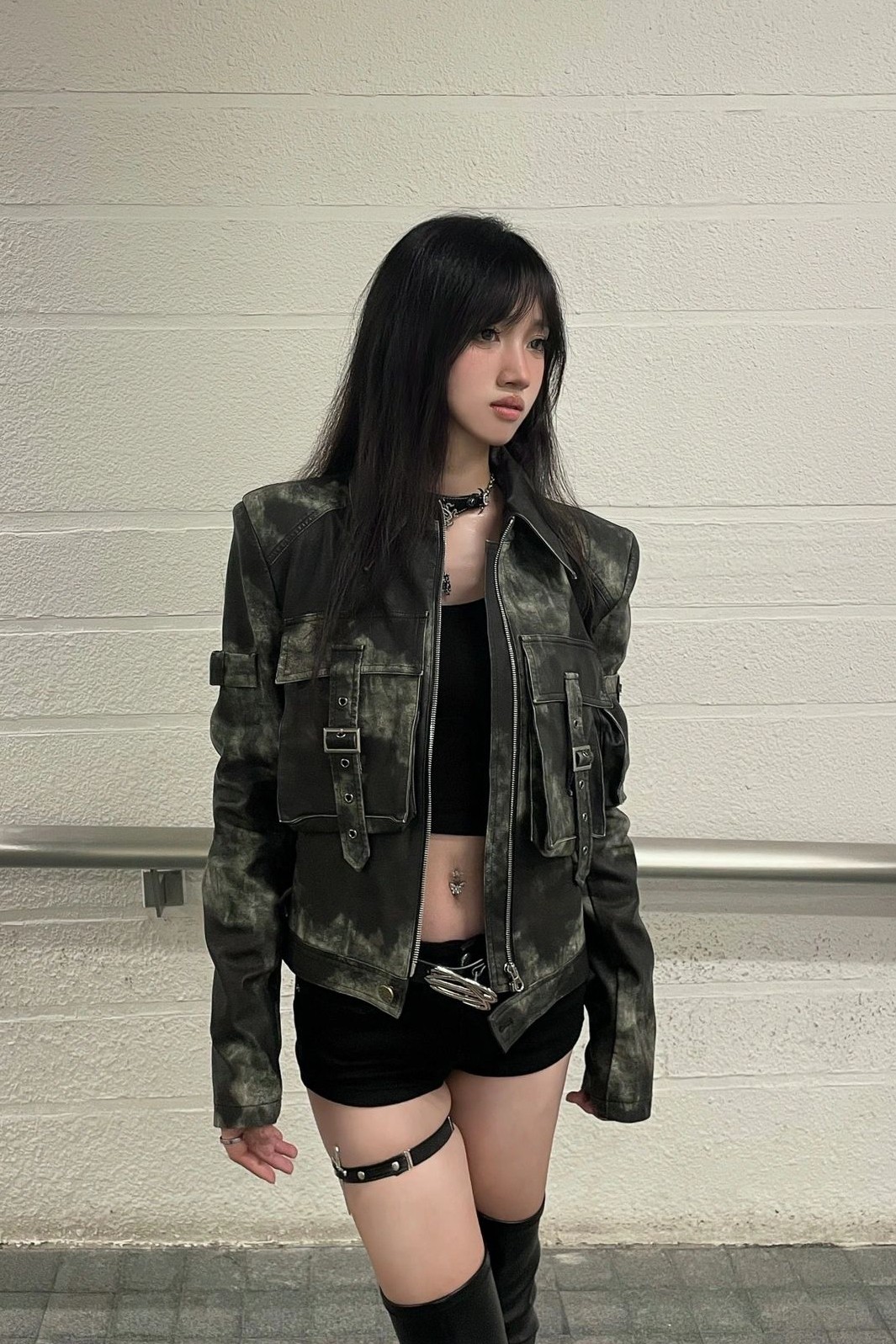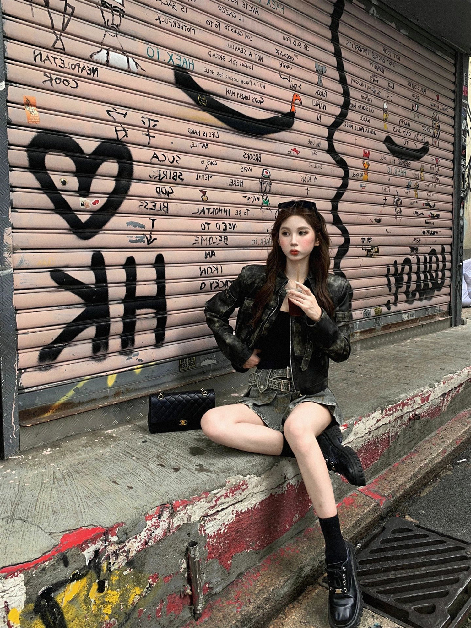 7iAe 輕punk皮衣美式街頭復古做舊辣妹外套女秋冬季機車夾克上衣
