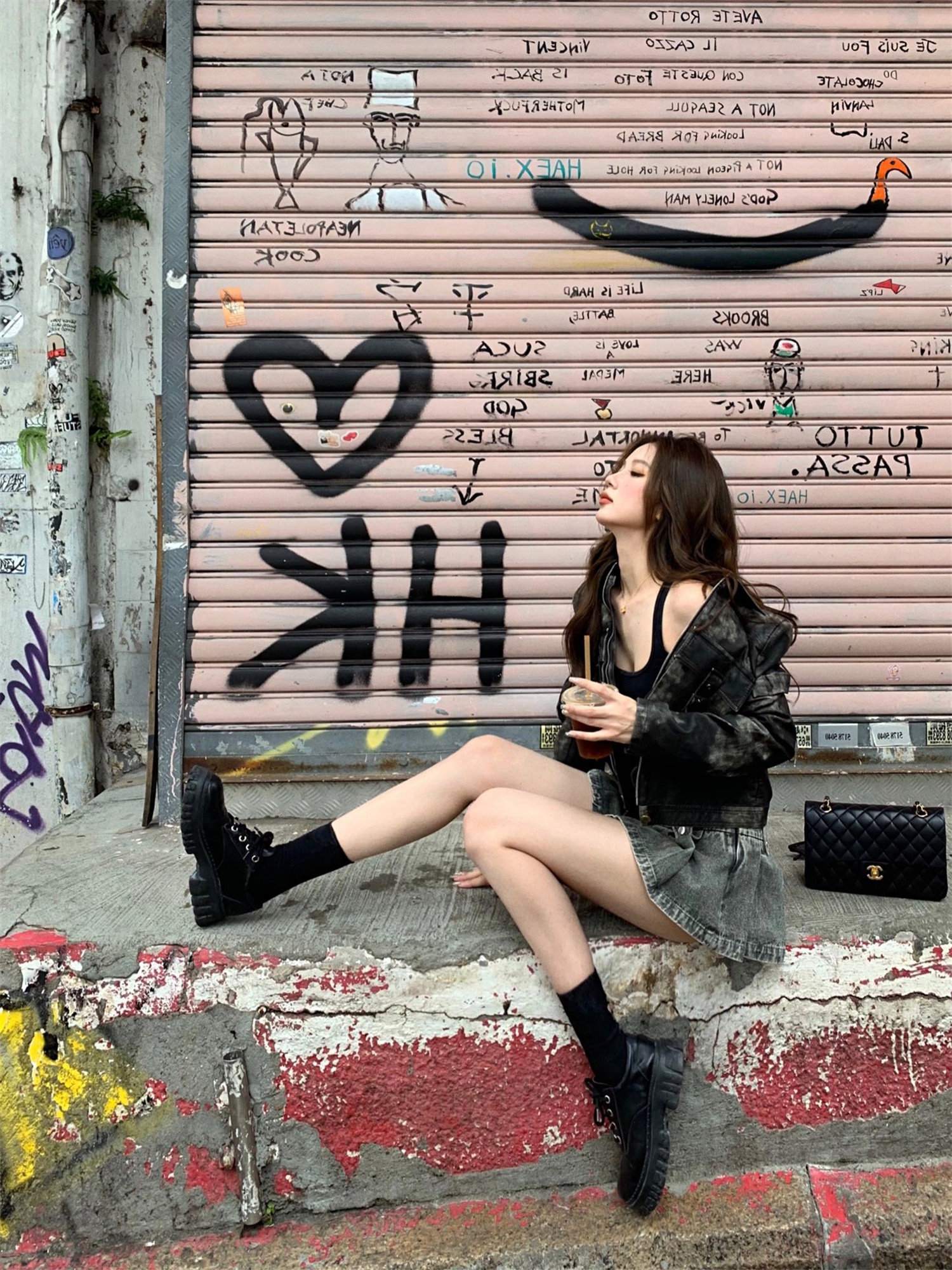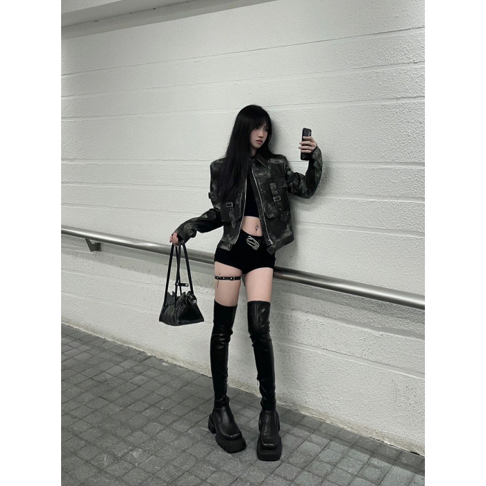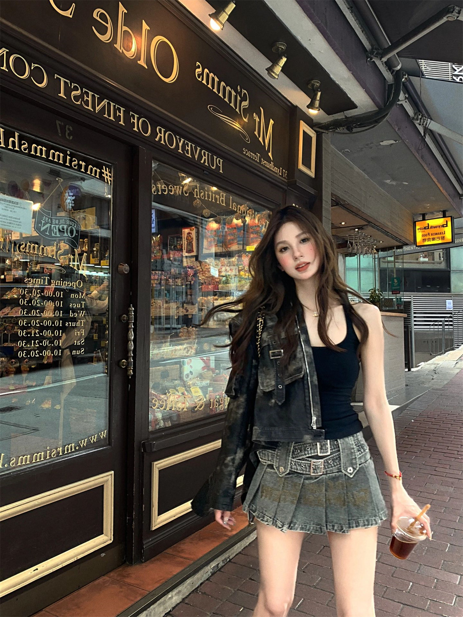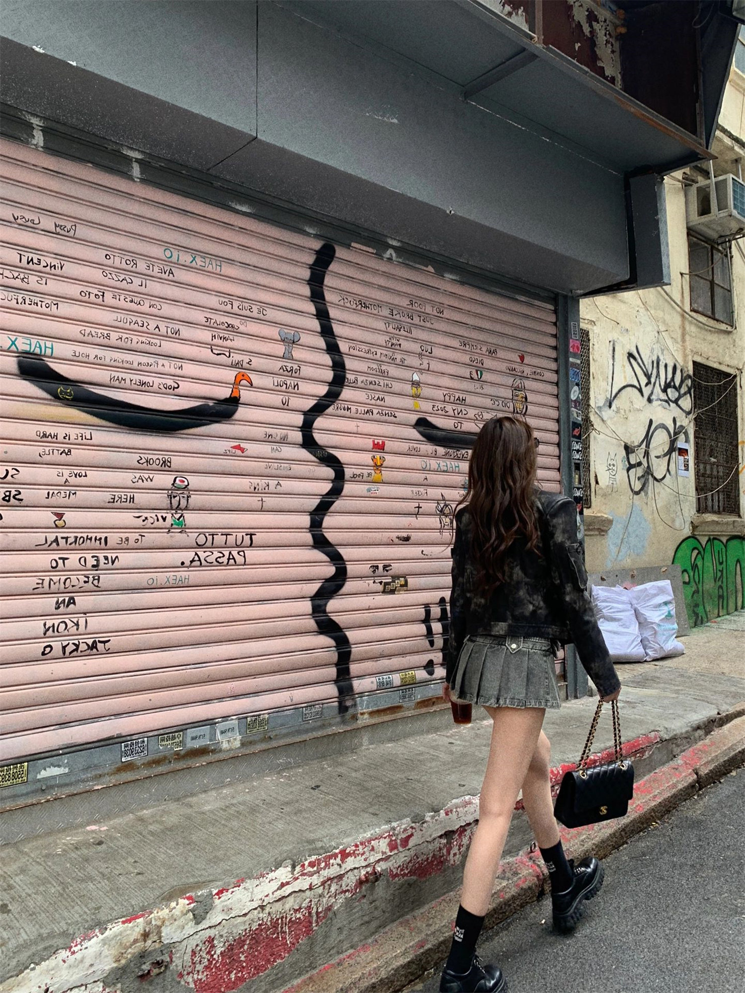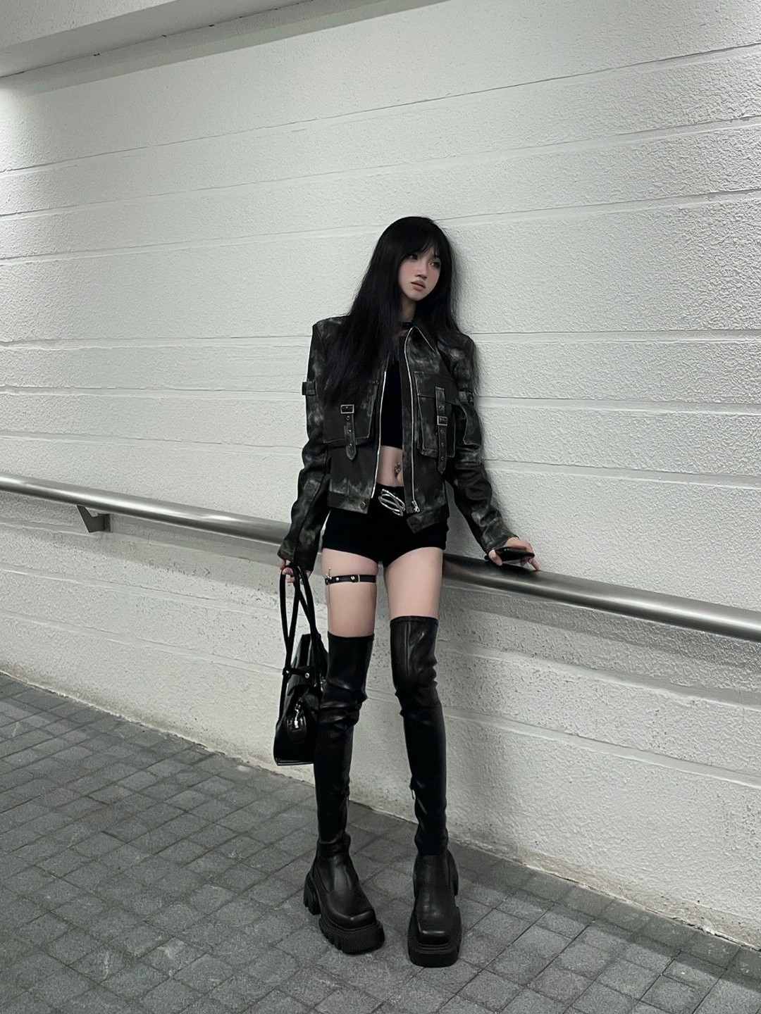 7iAe 輕punk皮衣美式街頭復古做舊辣妹外套女秋冬季機車夾克上衣