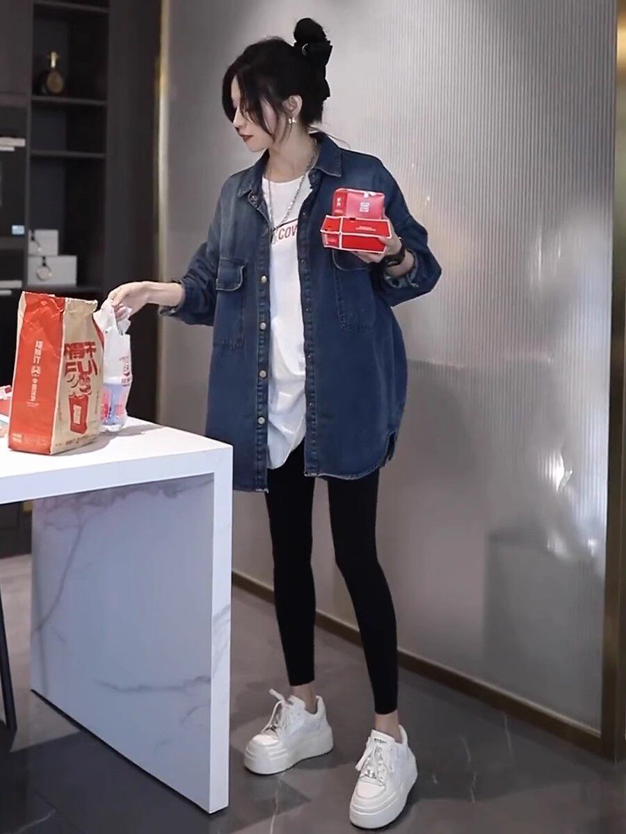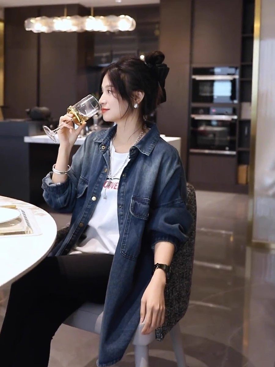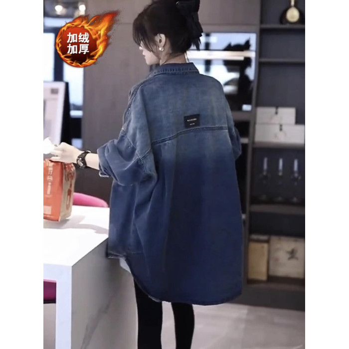 慵懶風加絨牛仔襯衫女秋冬新款韓版百搭休閒寬鬆上衣時尚襯衣外套