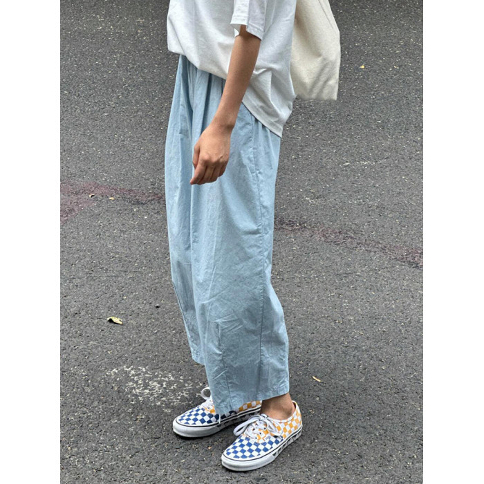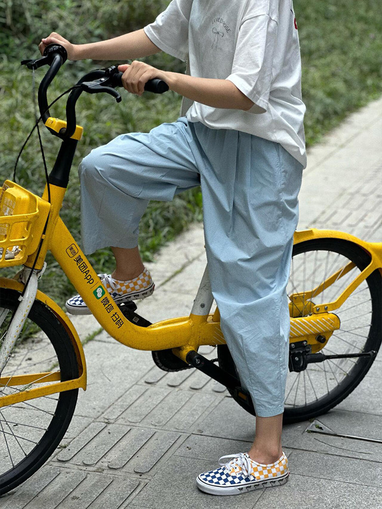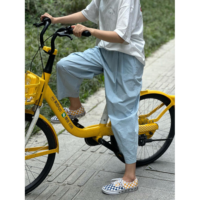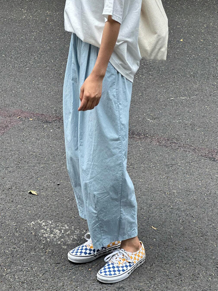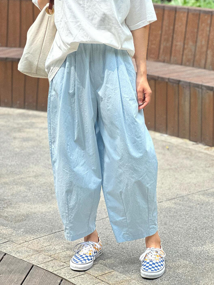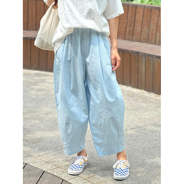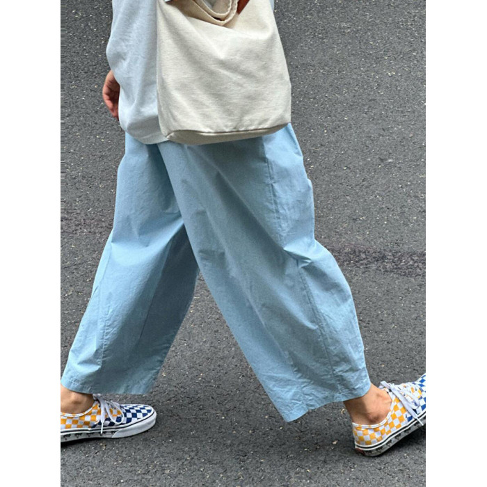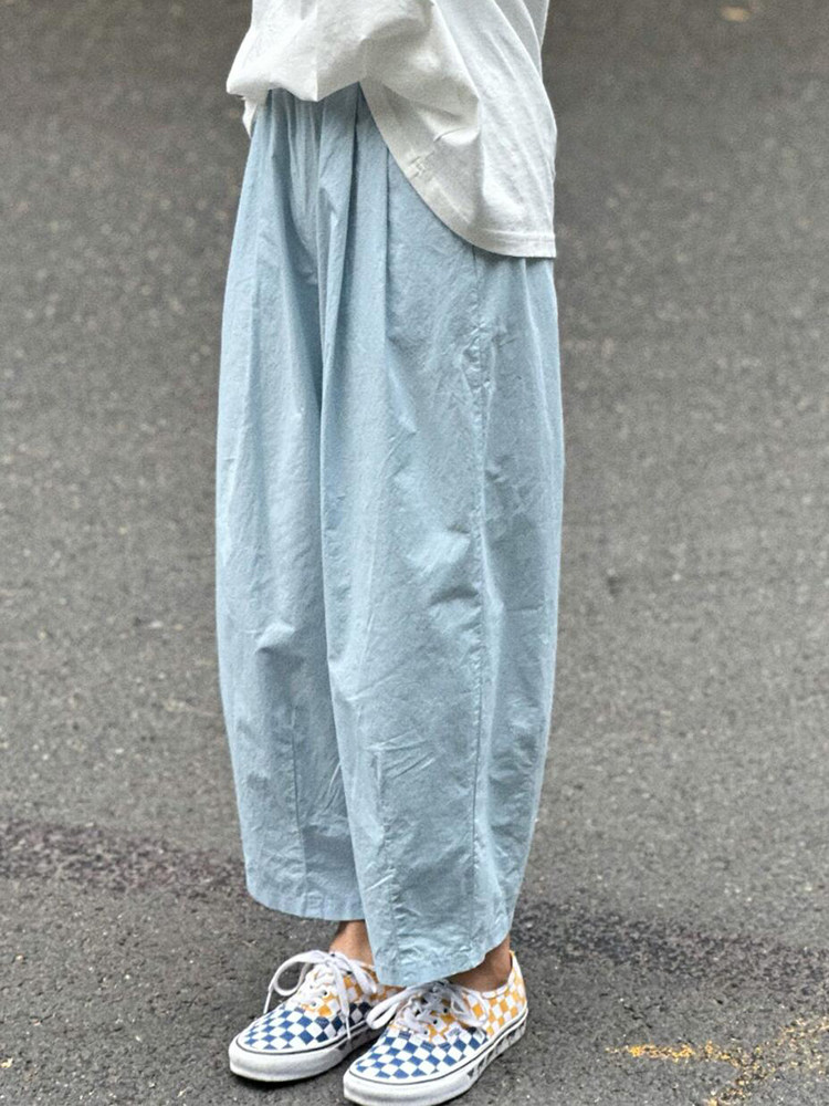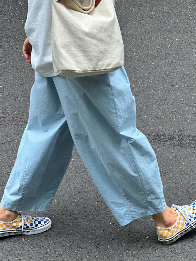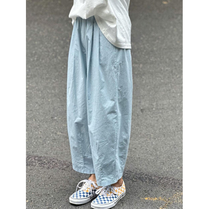 chao級推薦!夏日清爽藍薄款氣球褲親膚梨型褶皺速乾九分燈籠褲女