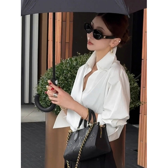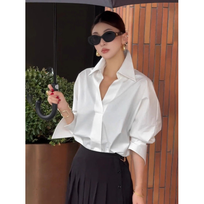 法式V領通勤正裝襯衫女春秋新款高級感職業休閒寬鬆顯瘦百搭上衣