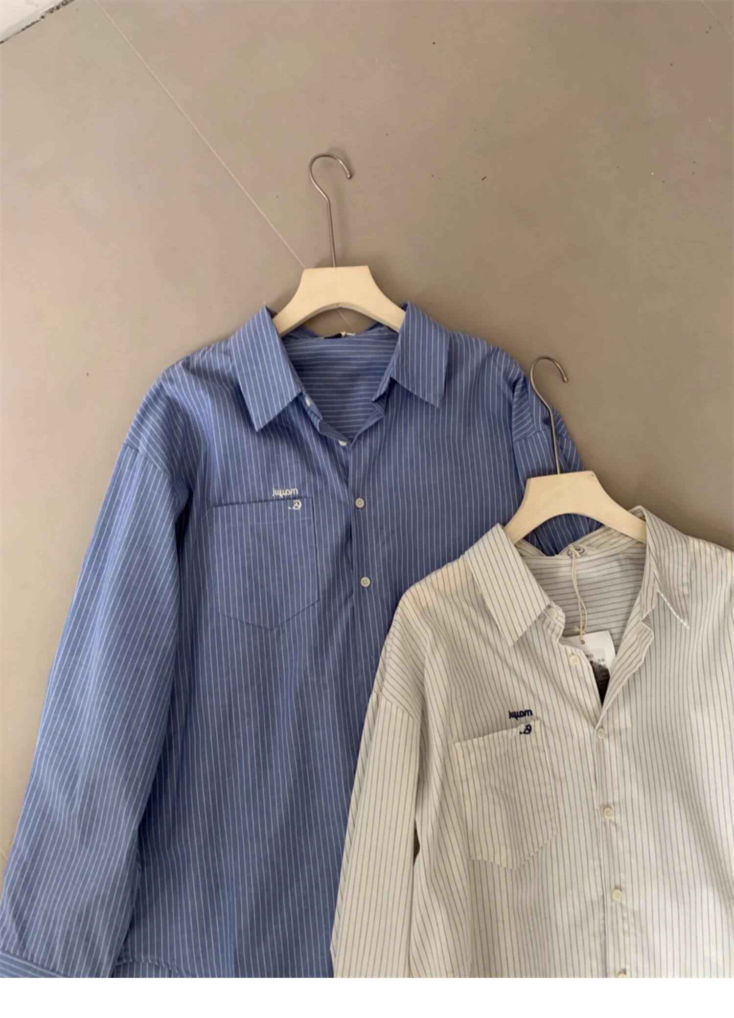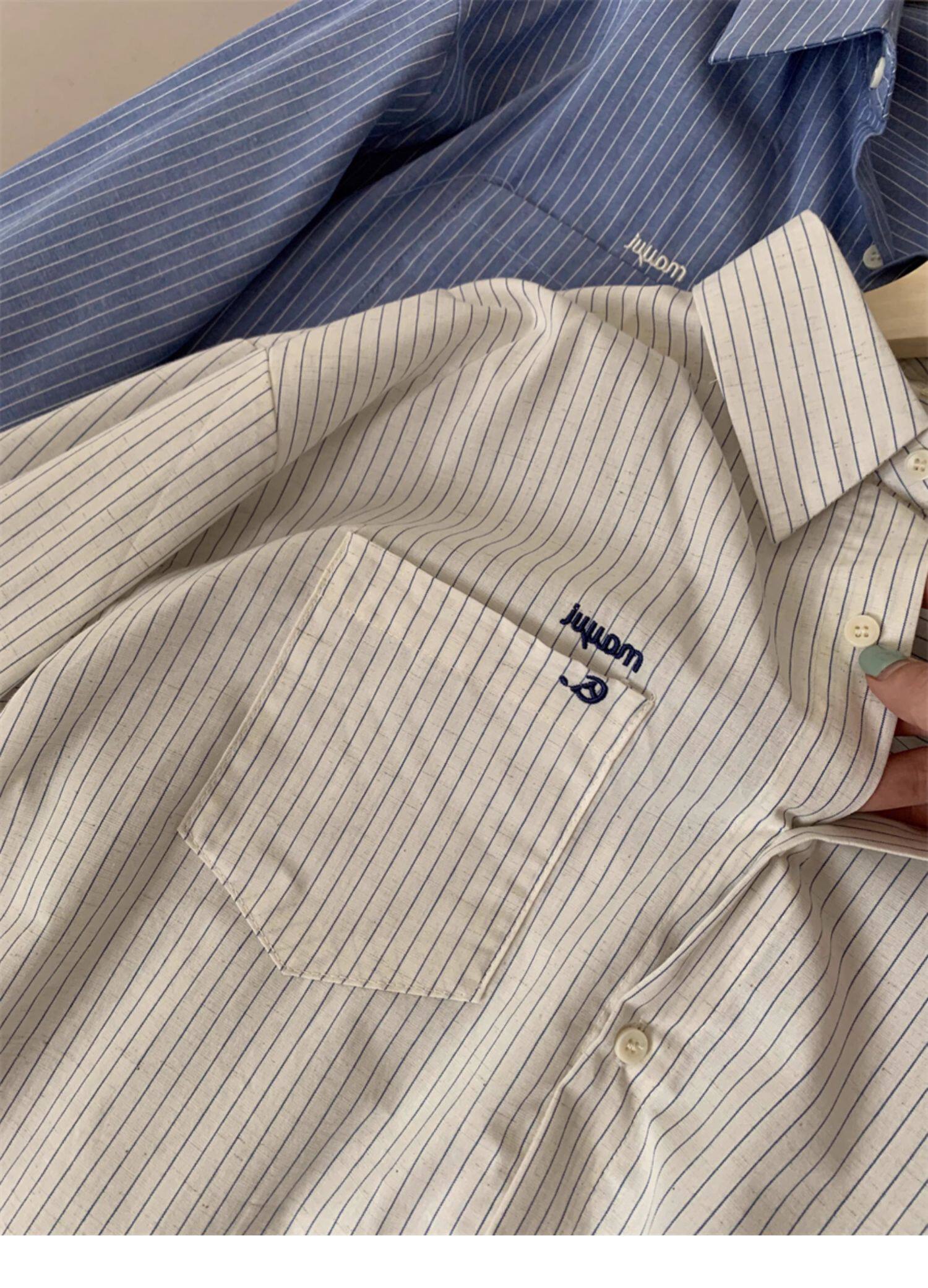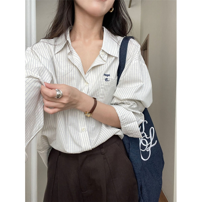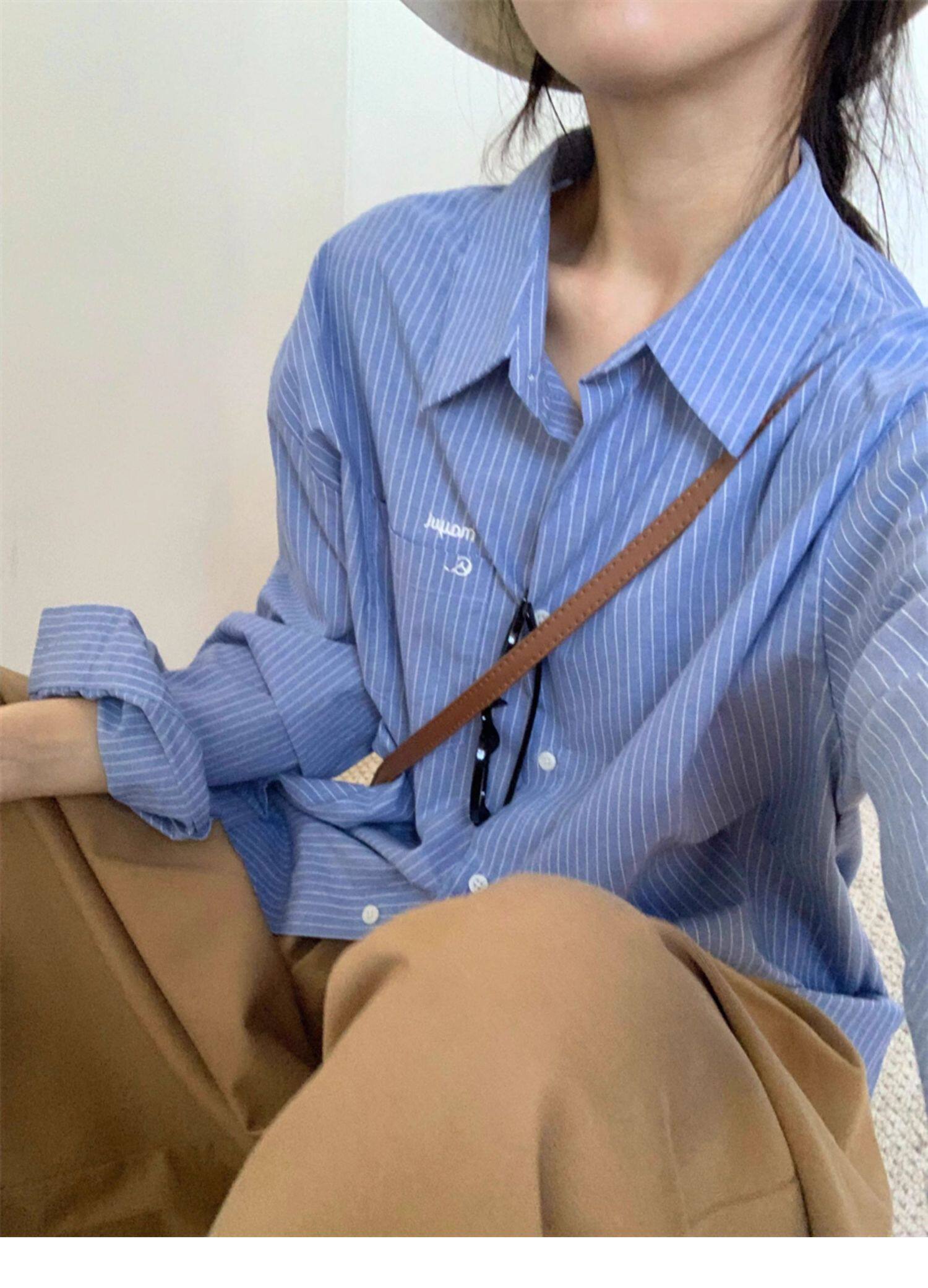 韓系休閒氣質簡約條紋襯衫女2025秋季新款寬鬆設計感小衆通勤襯衣