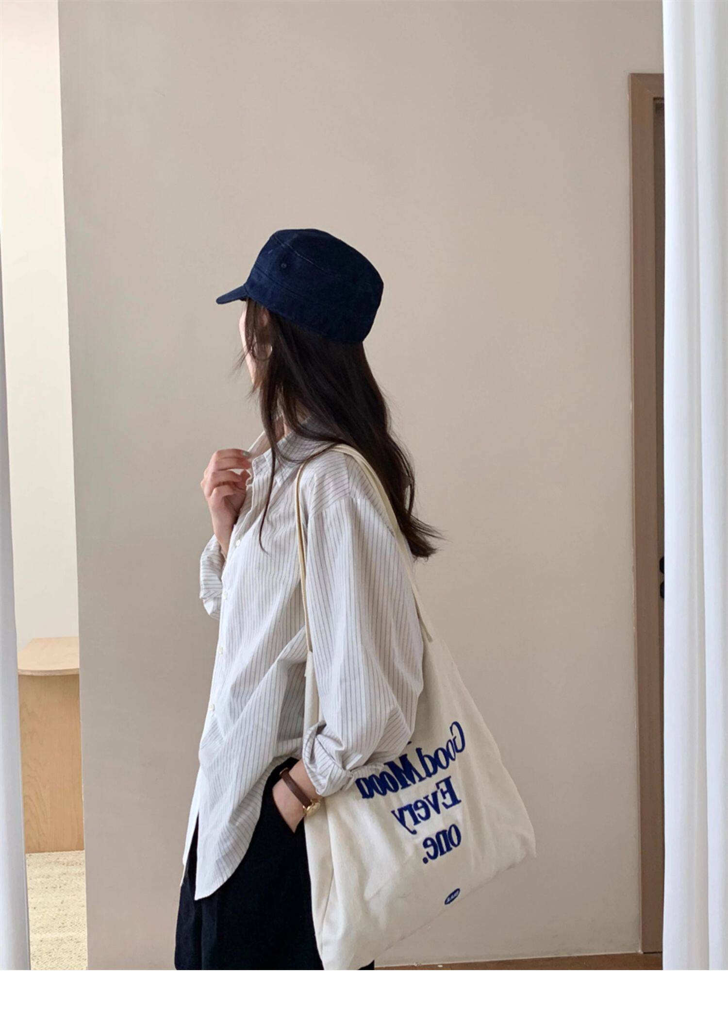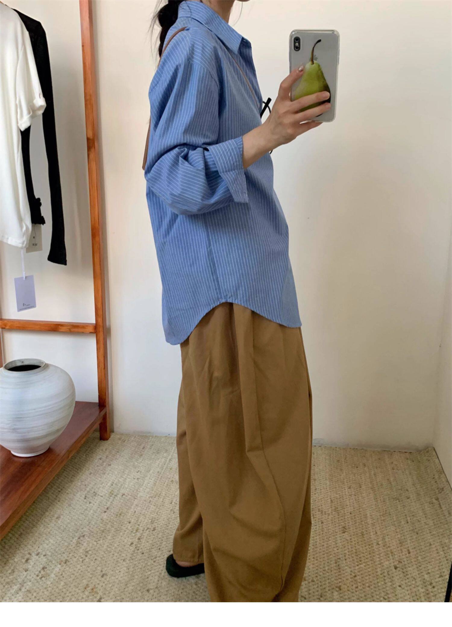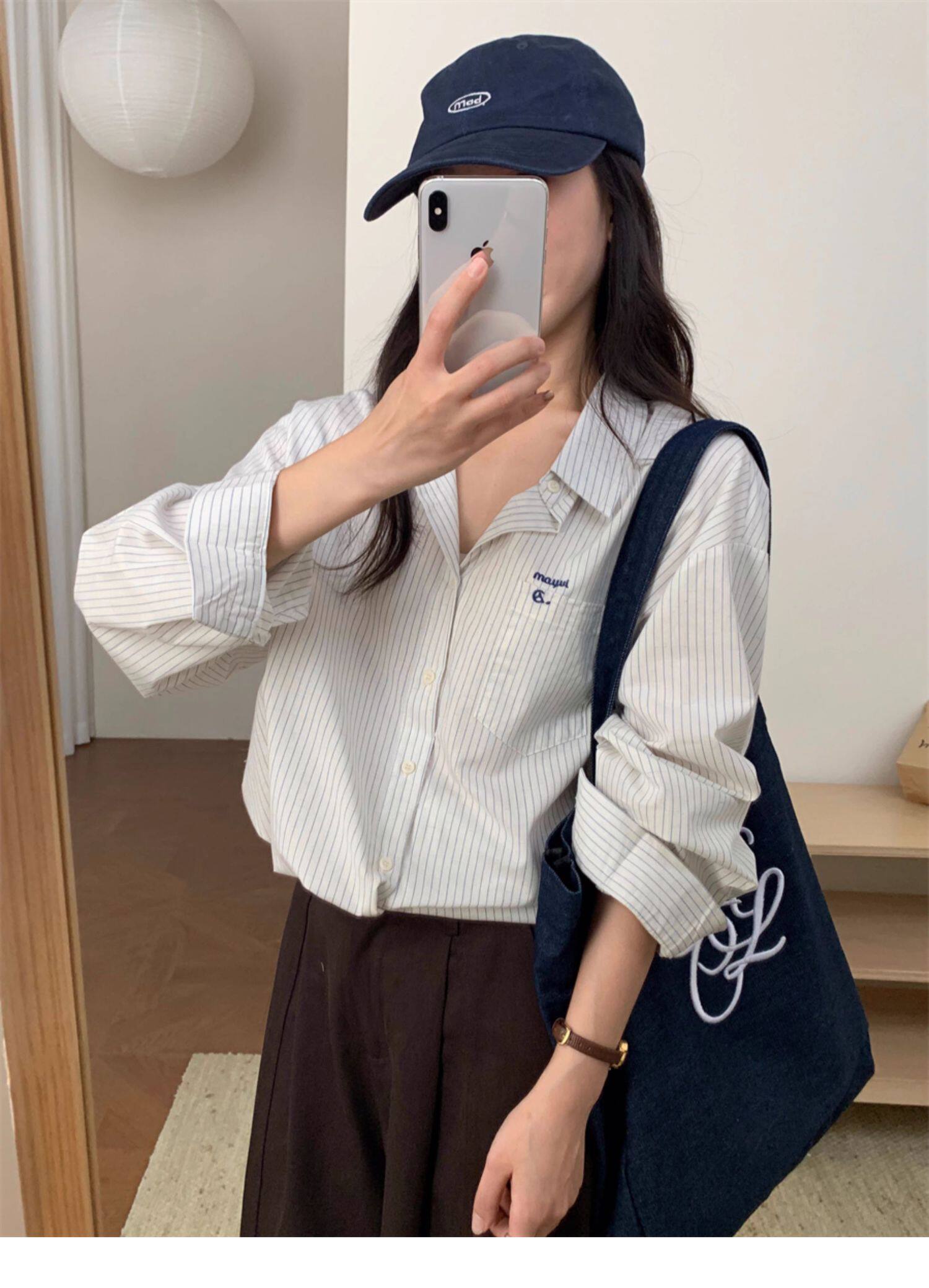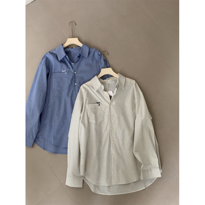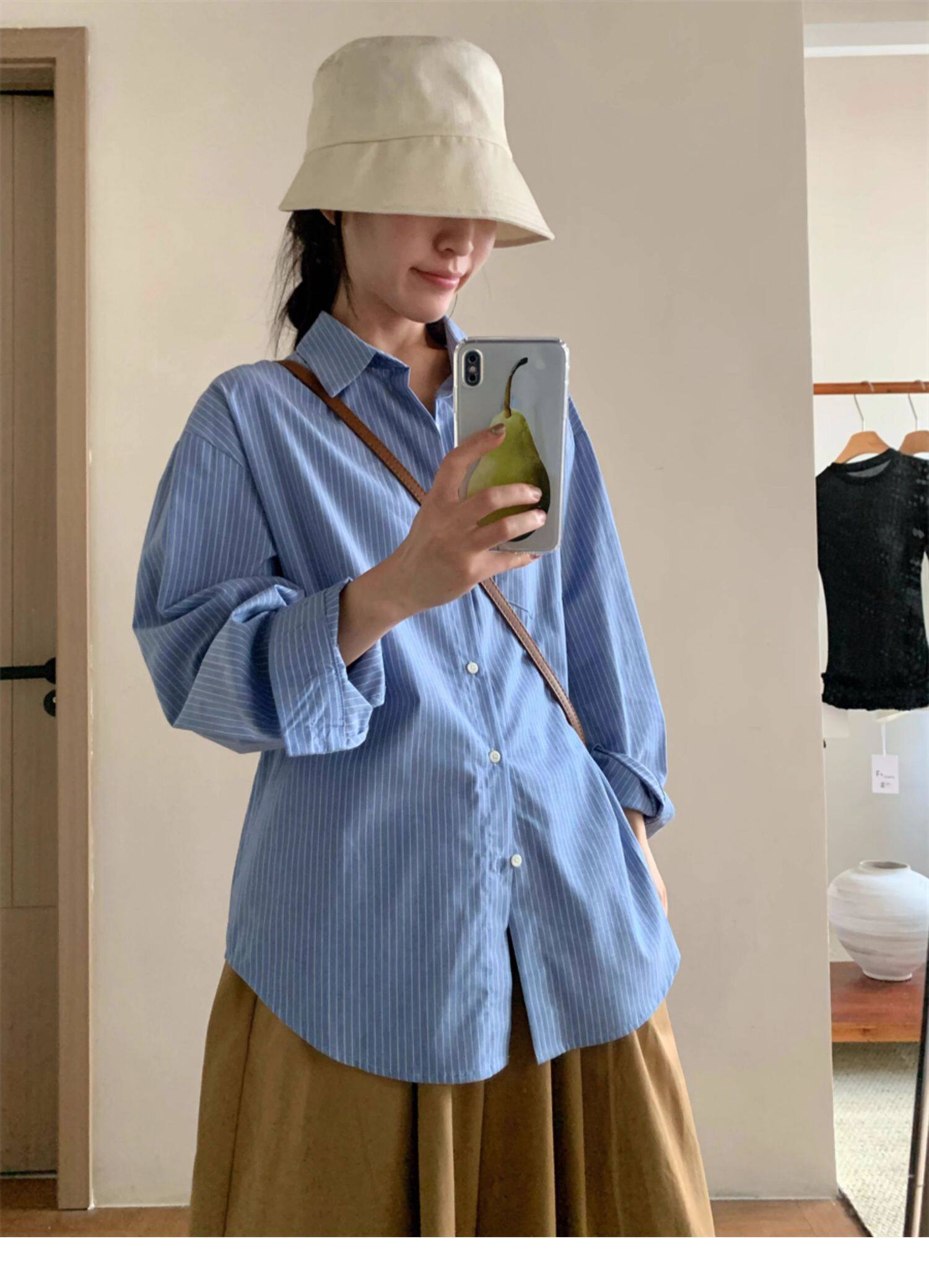 韓系休閒氣質簡約條紋襯衫女2025秋季新款寬鬆設計感小衆通勤襯衣