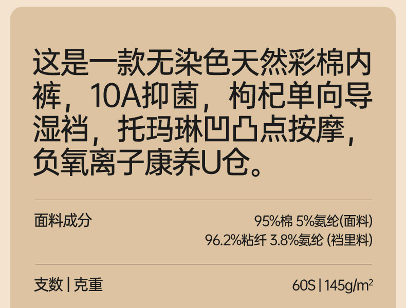 | 襠部材質成分 | 粘膠纖維(粘纖)96.2% 聚氨酯彈性纖維(氨綸)3.8% |