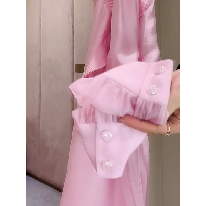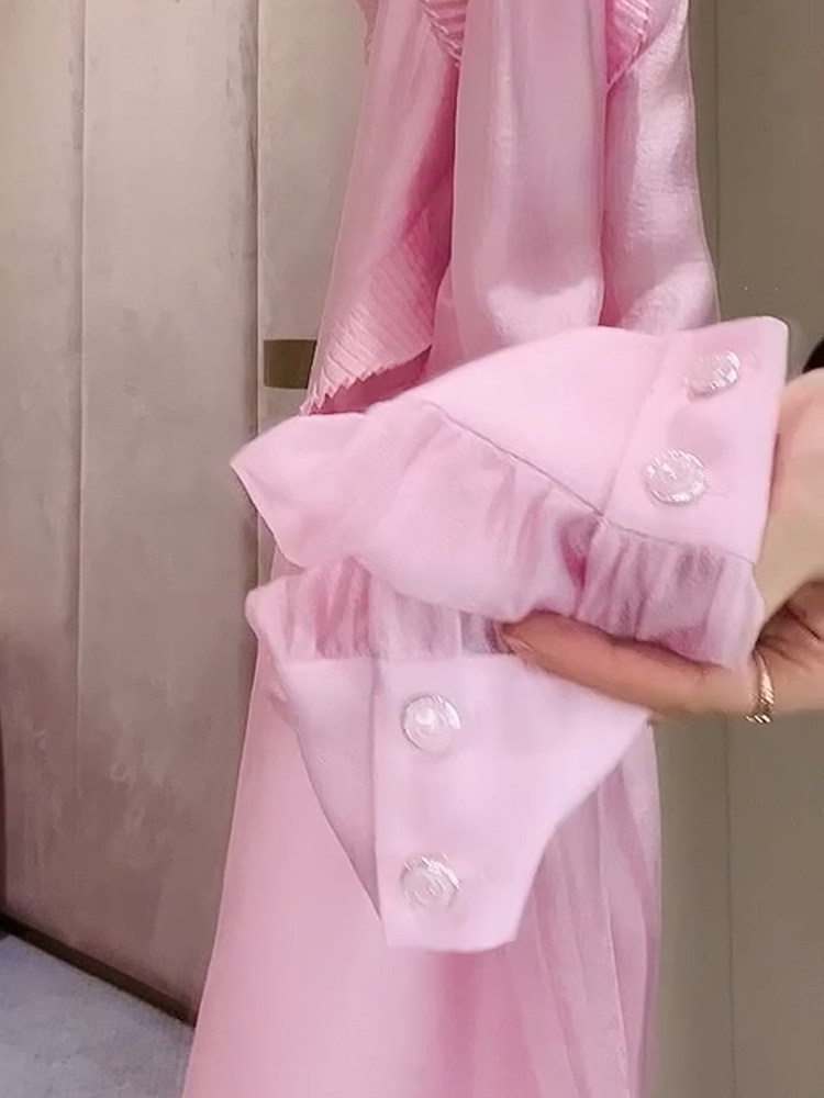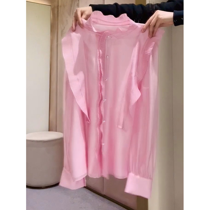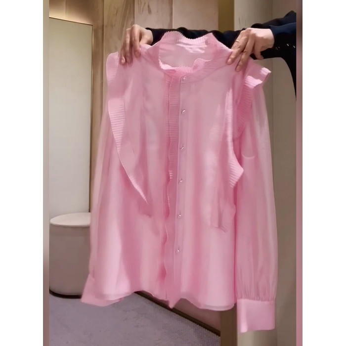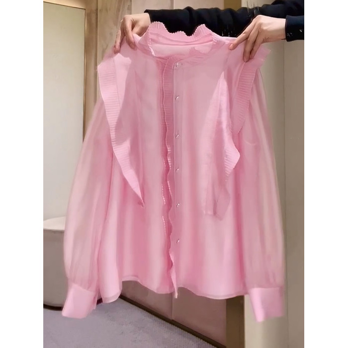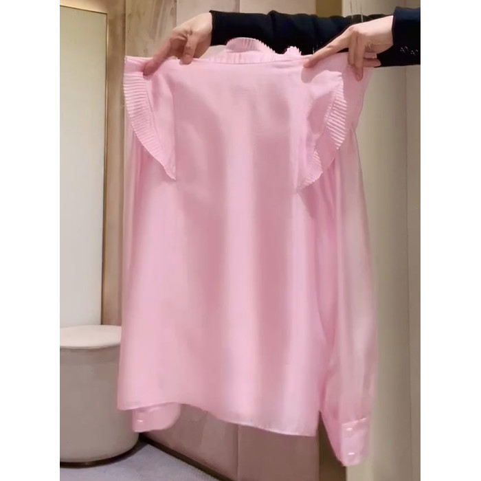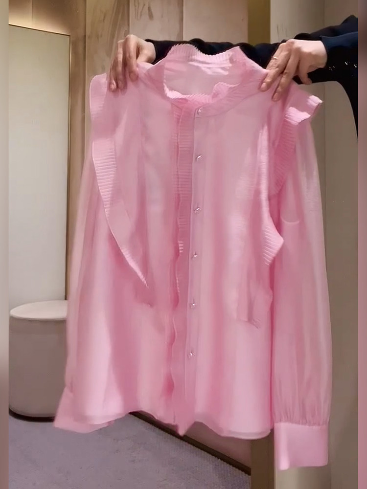 2026年春法式簡約優雅粉色百褶襯衫新款高級減齡花邊小衆設計上衣