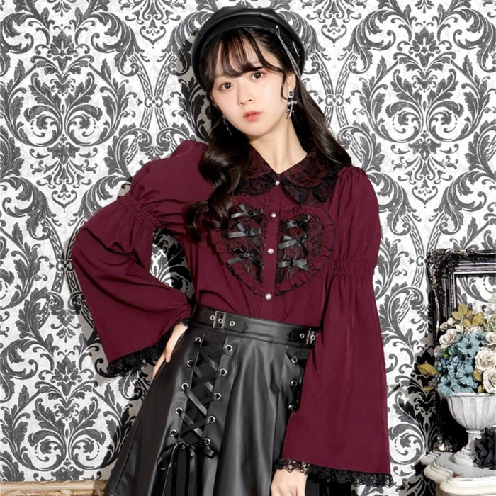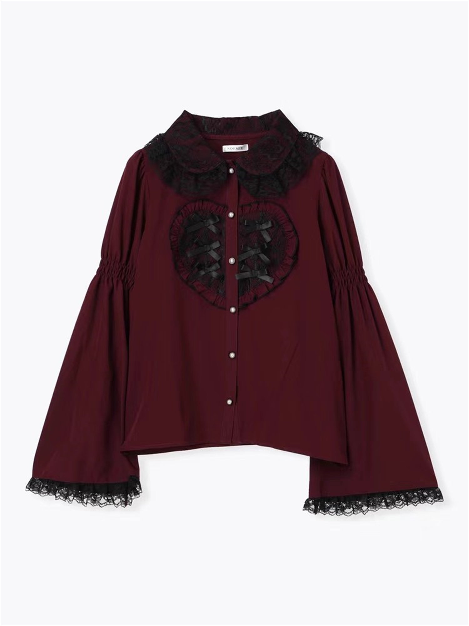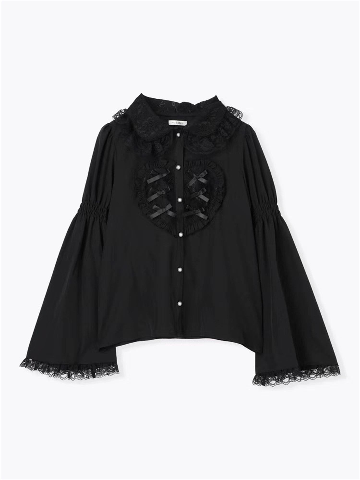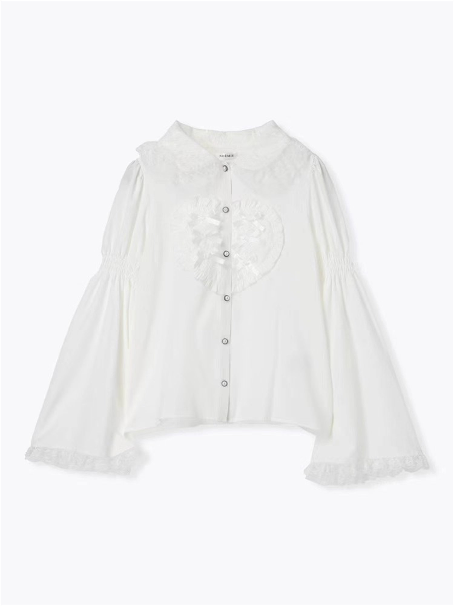 L3-2日本原單新品noemi*蕾服大愛心蕾絲花邊蝴蝶結袖姬襯衫