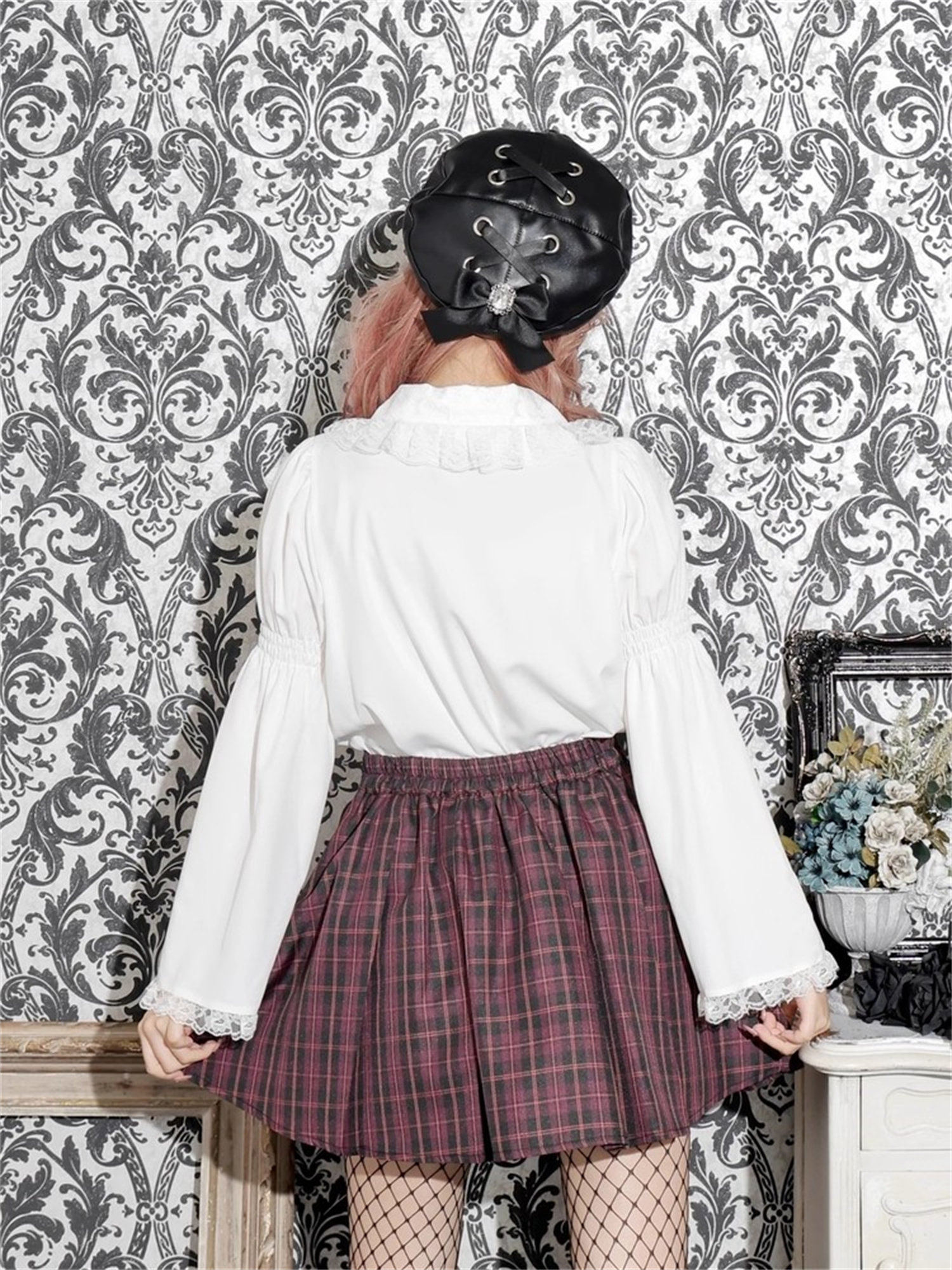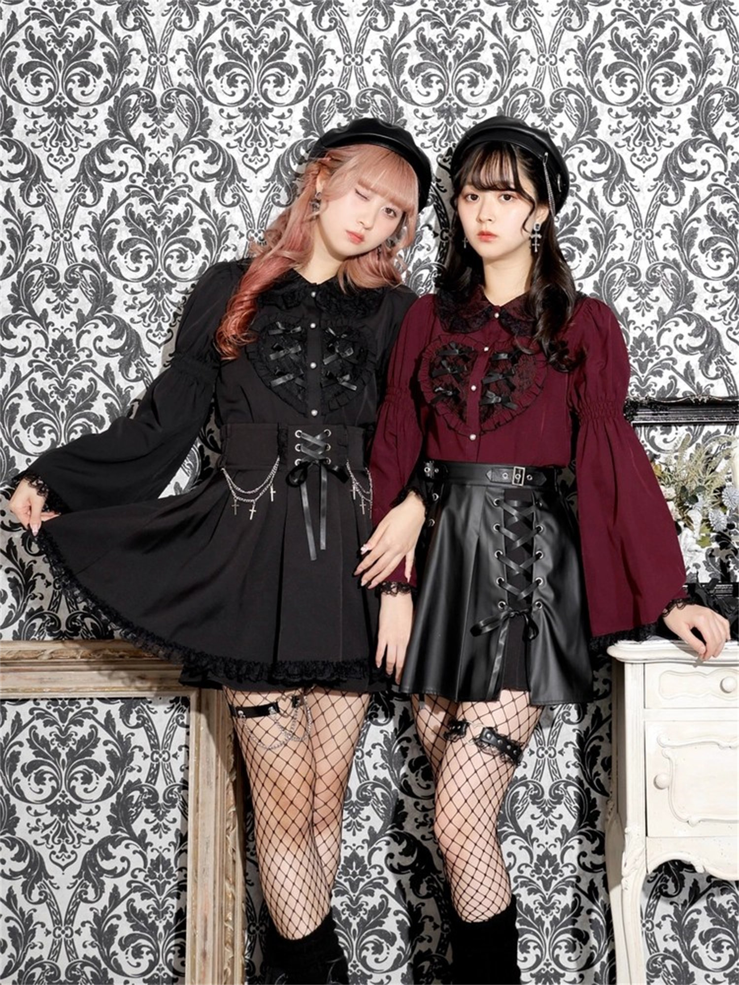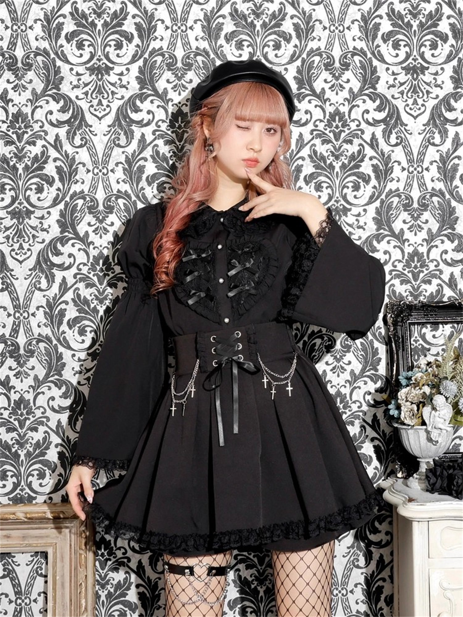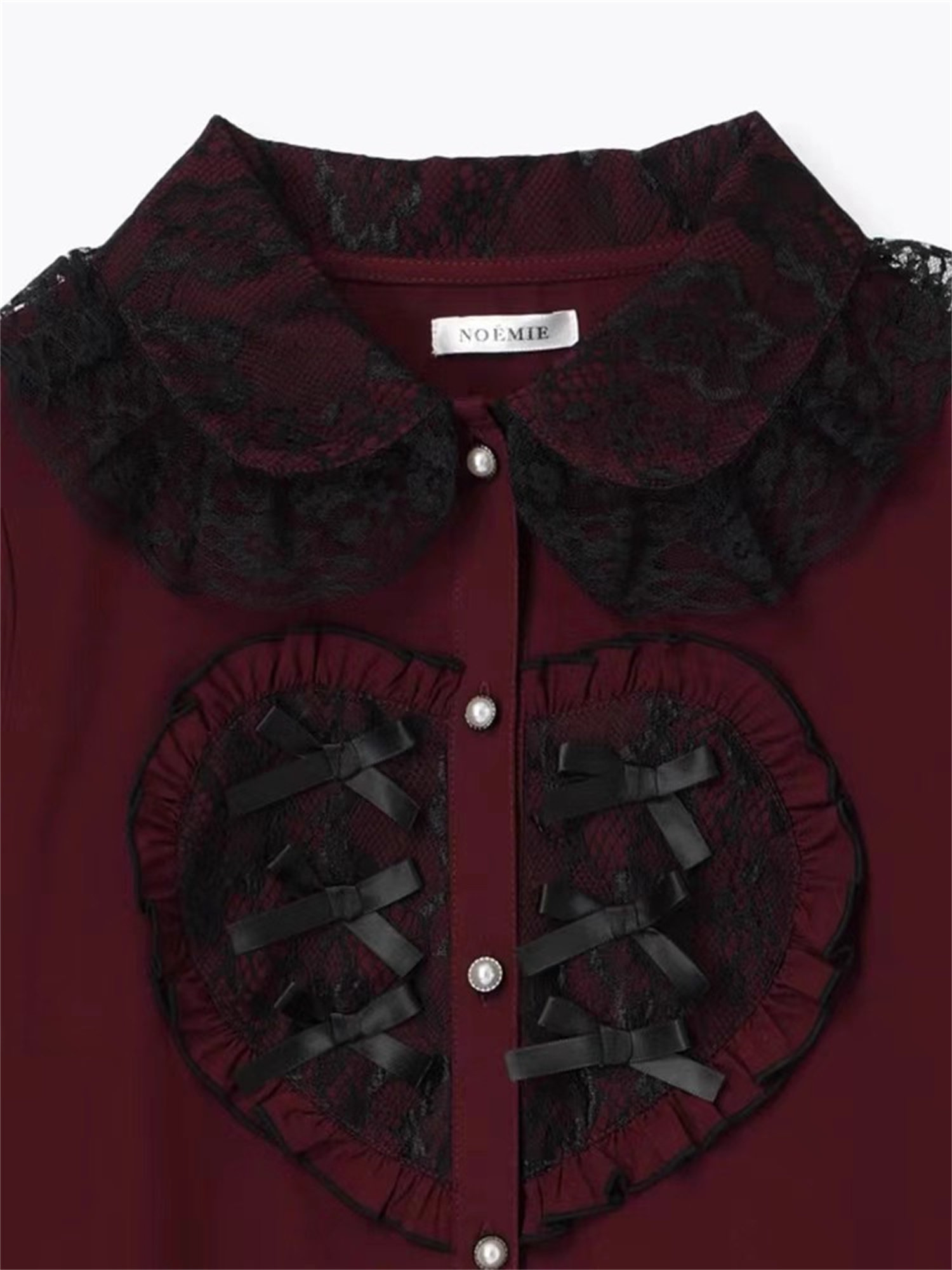 L3-2日本原單新品noemi*蕾服大愛心蕾絲花邊蝴蝶結袖姬襯衫