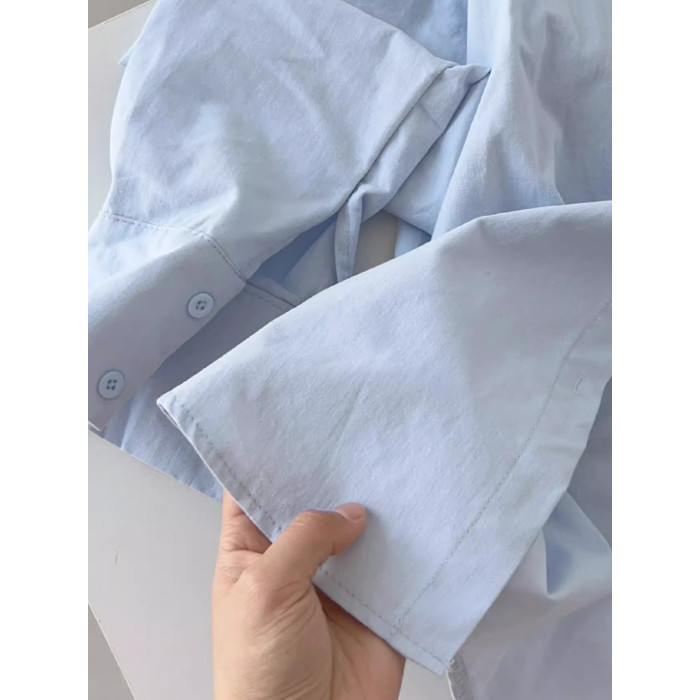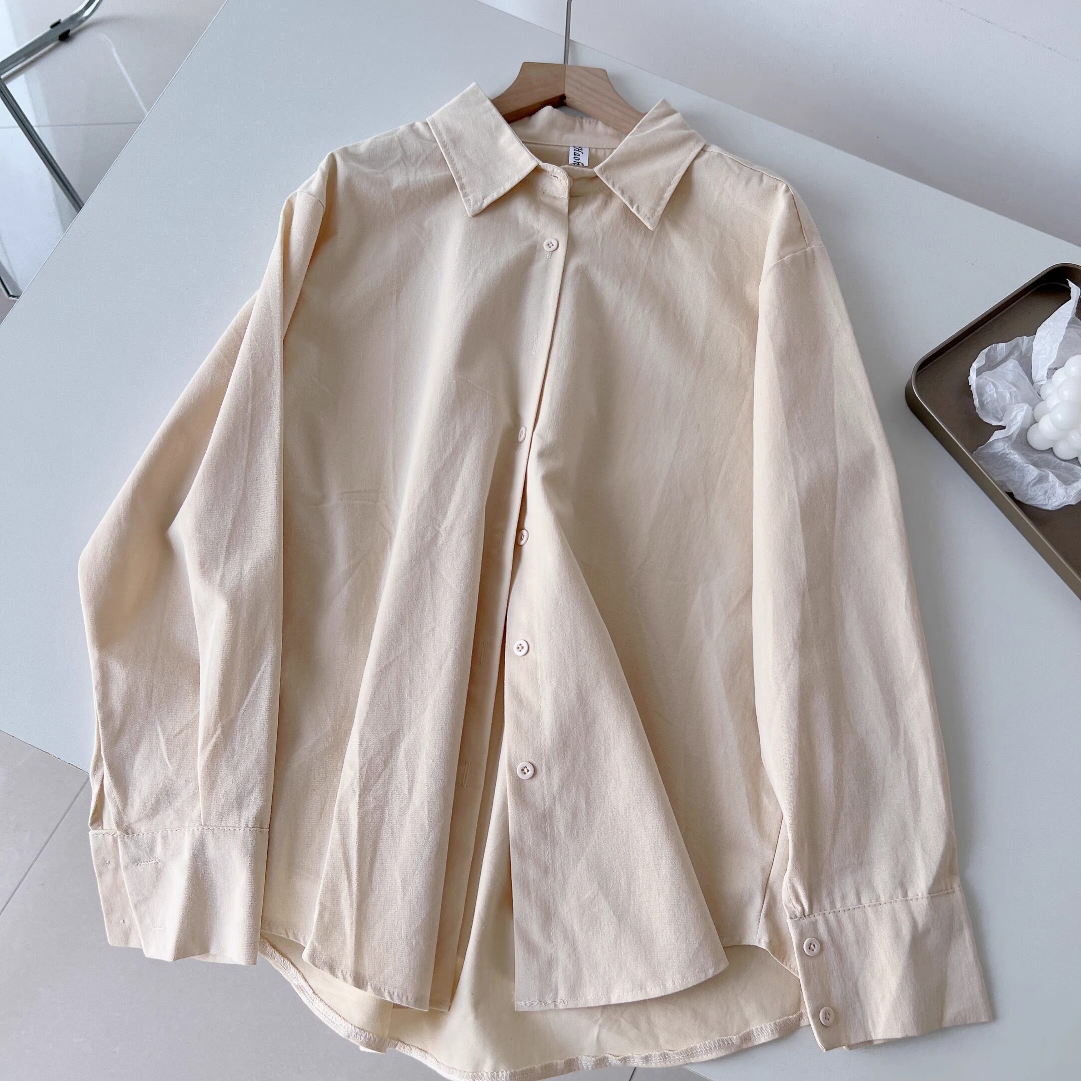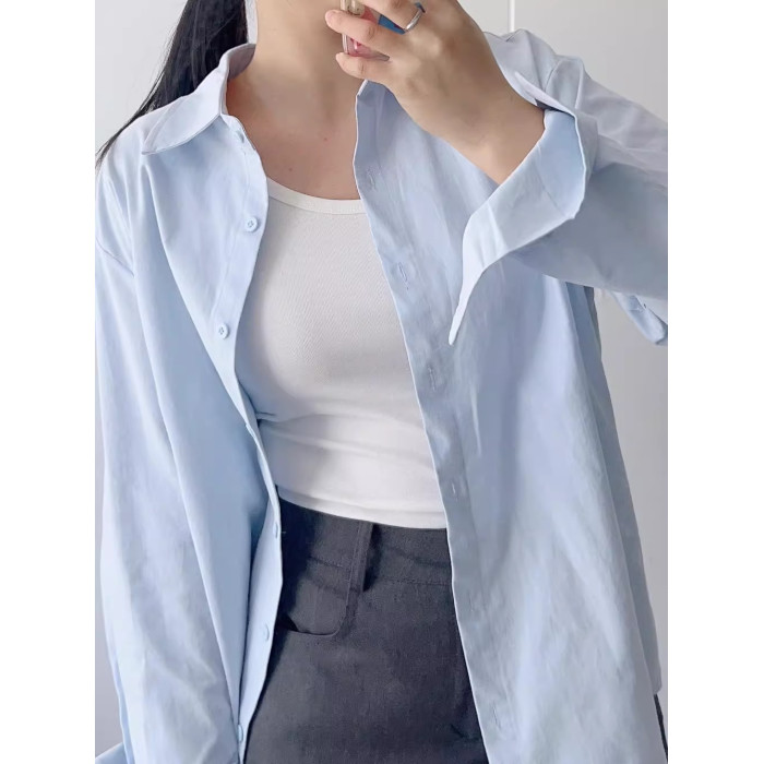 韓系早春曡穿內搭純棉襯衫女春秋新款小個子純色襯衣打底上衣女