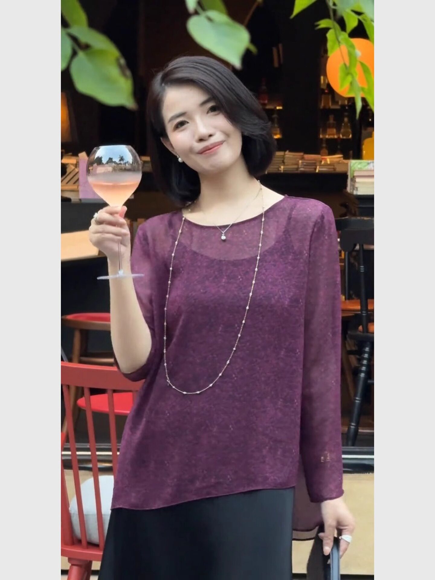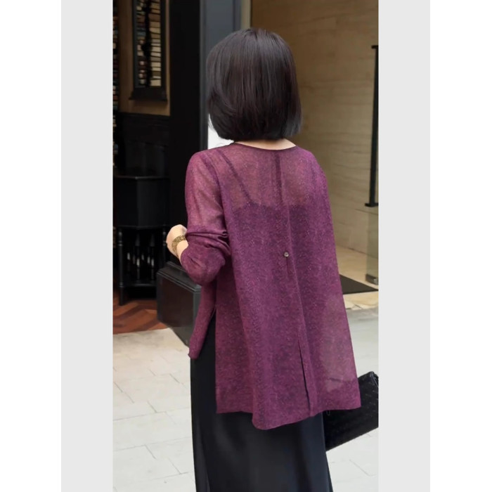 時尚洋氣高級感紫色長袖防曬衣女2025早秋新款寬鬆顯瘦罩衫上衣潮
