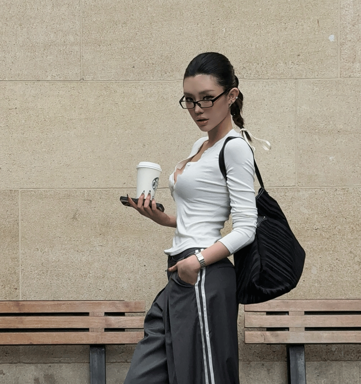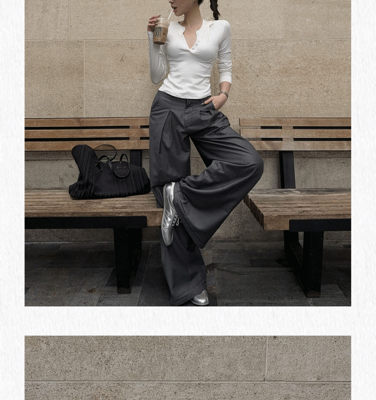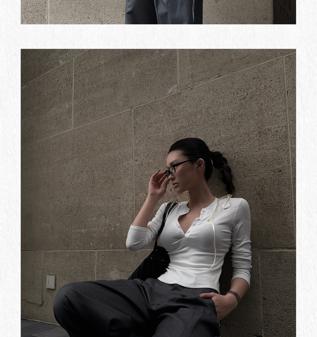 HunterGirl 格雷系排釦亨利衫高級美式簡約顯瘦彈力打底上衣長袖