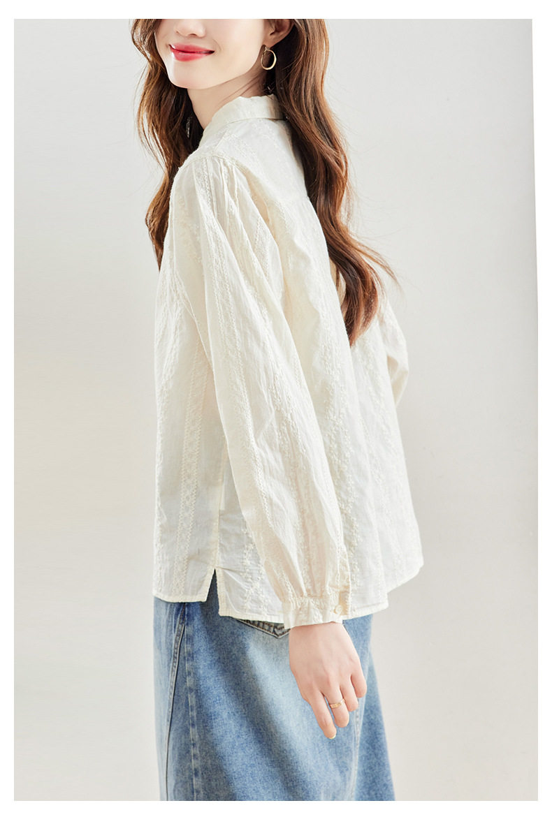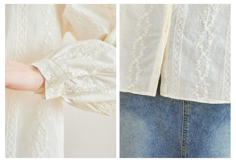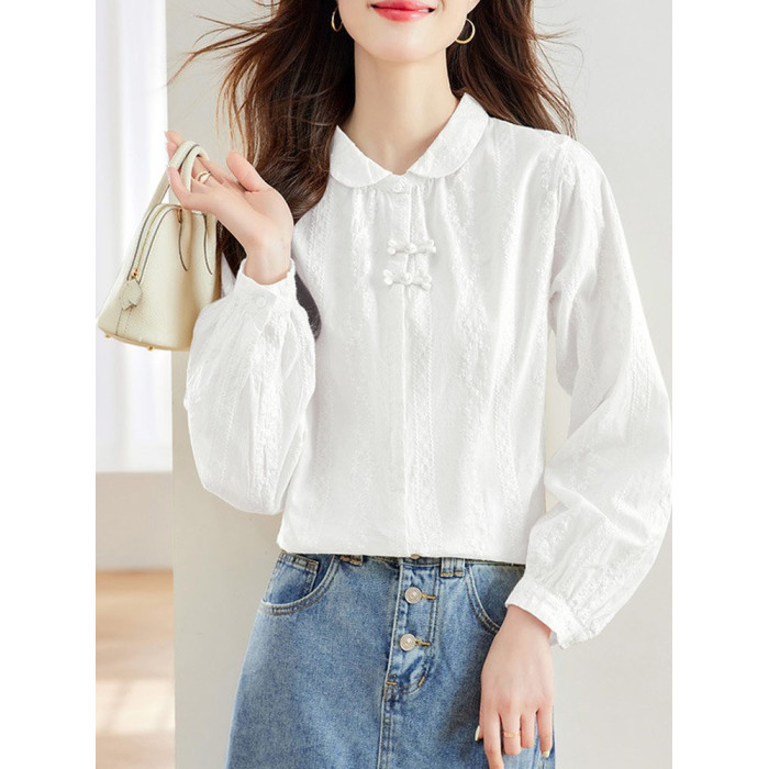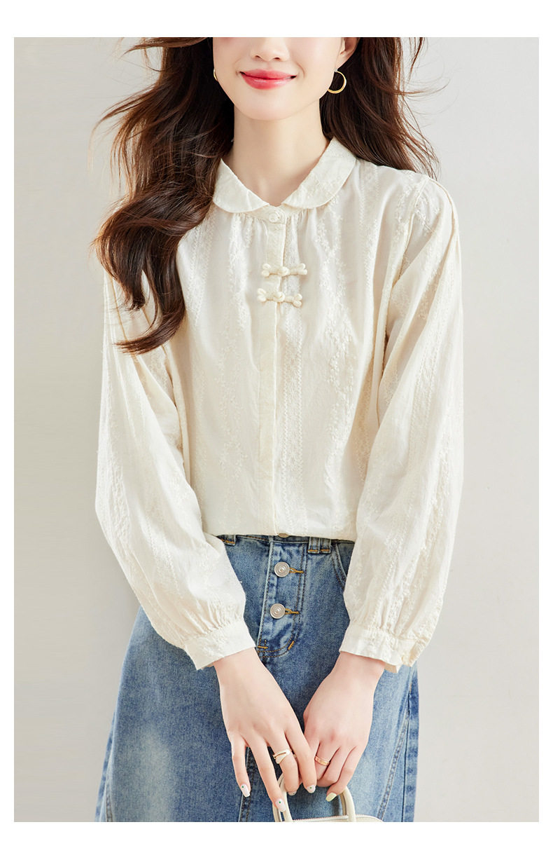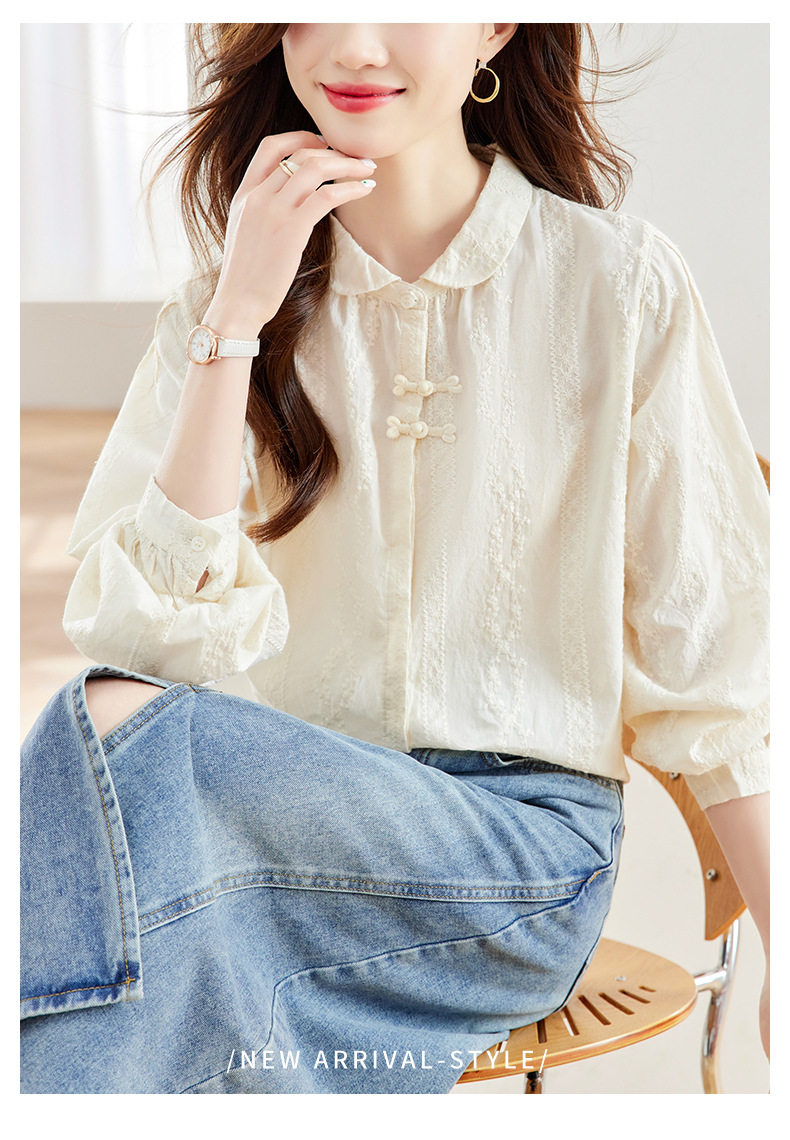寬鬆國風新中式綉花杏色襯衫遮肉顯瘦盤釦漂亮小衫2025年秋季新款