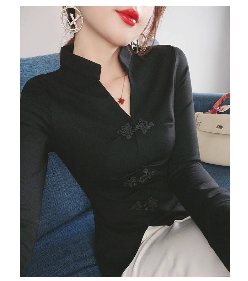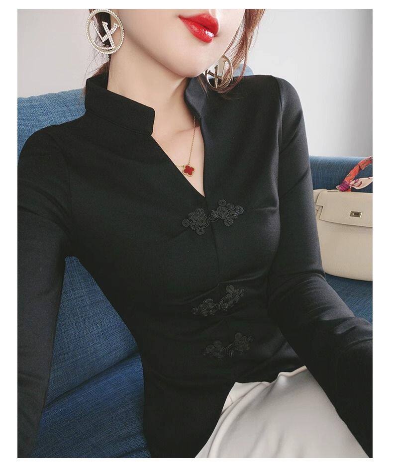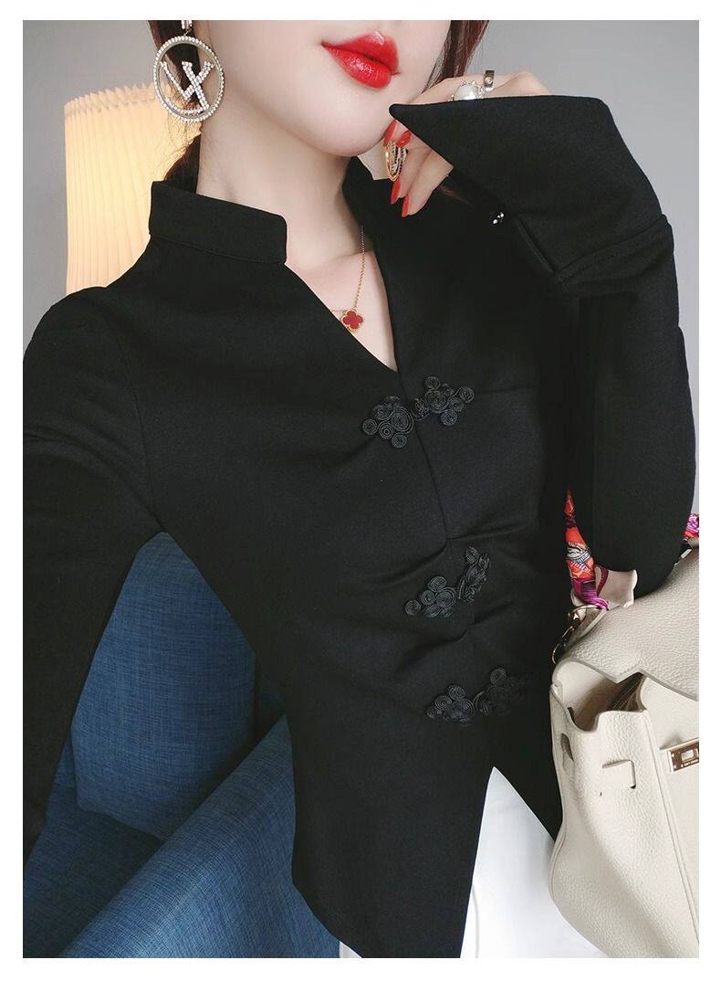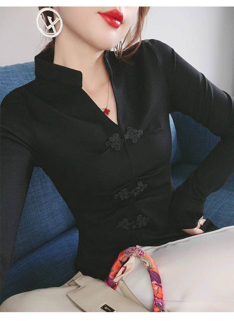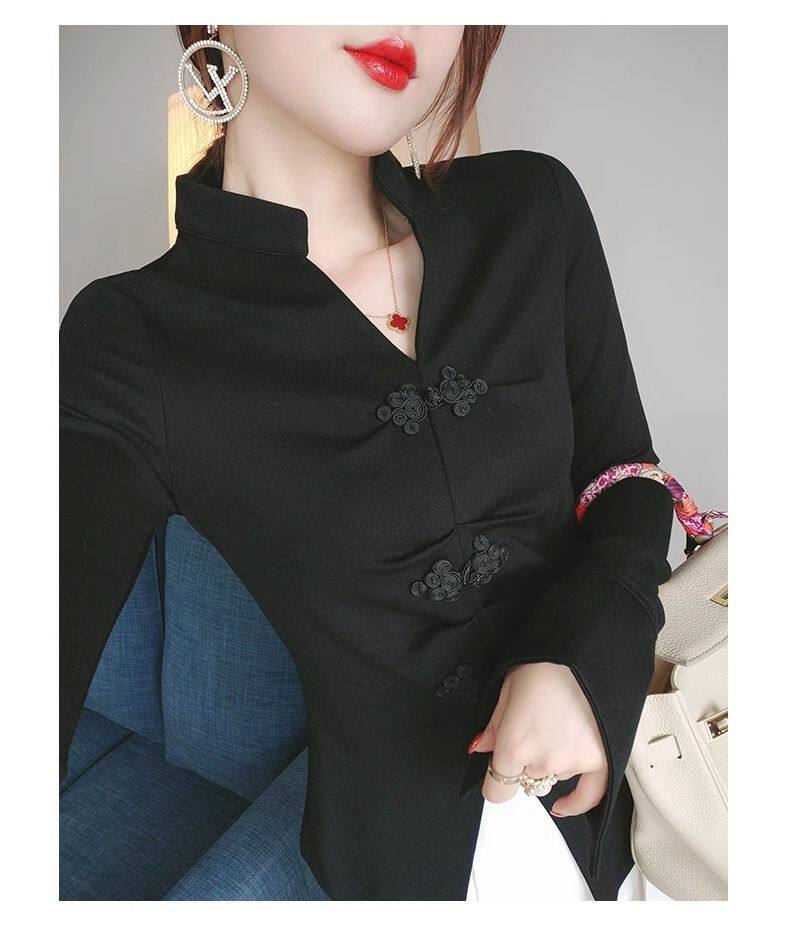 風收腰春秋復古民族風盤釦襯衫女時尚內搭氣質小衆別致上衣女