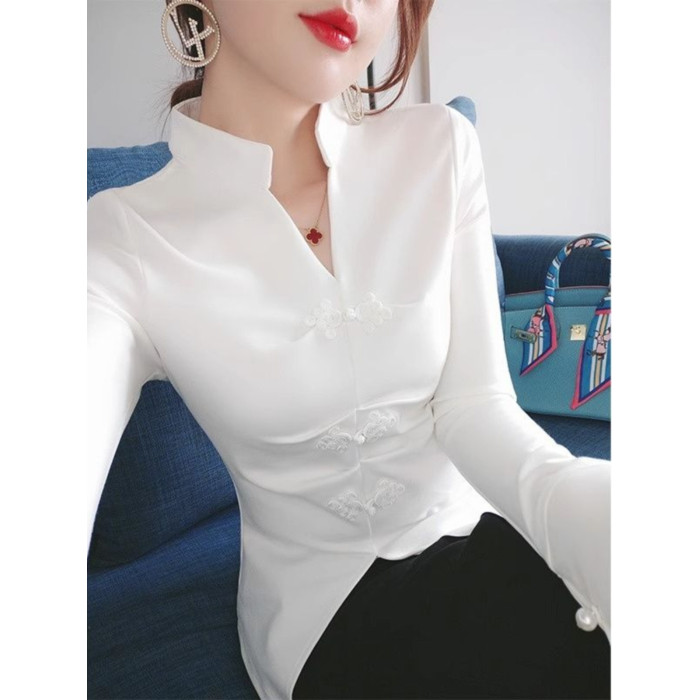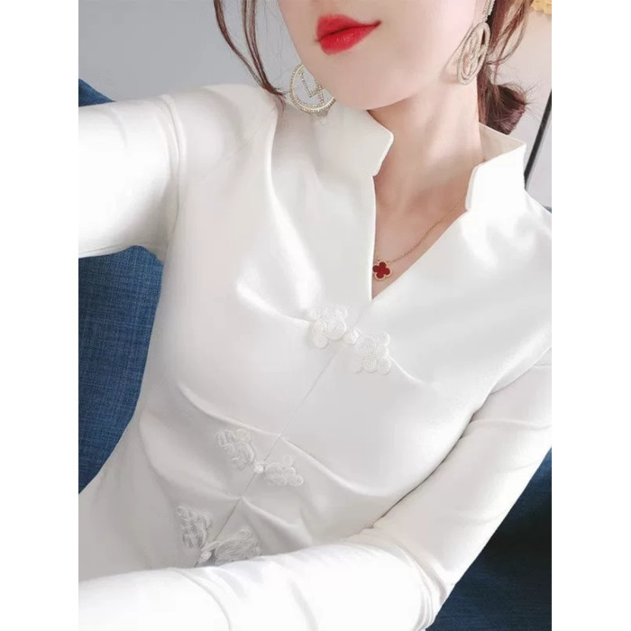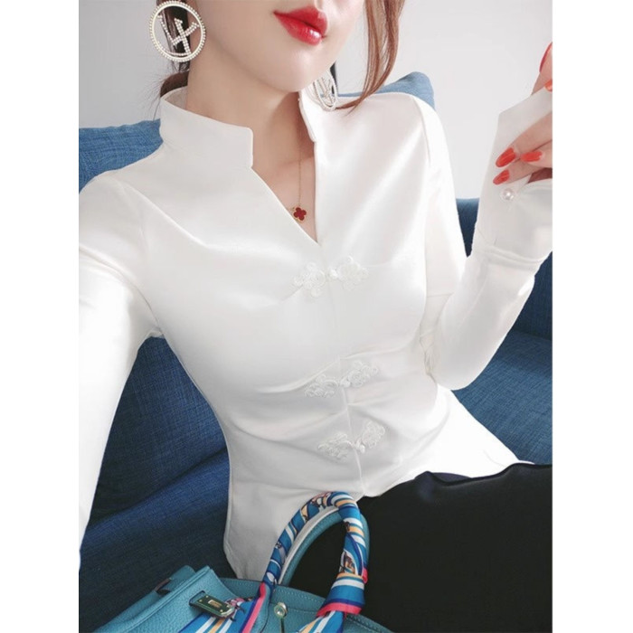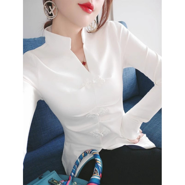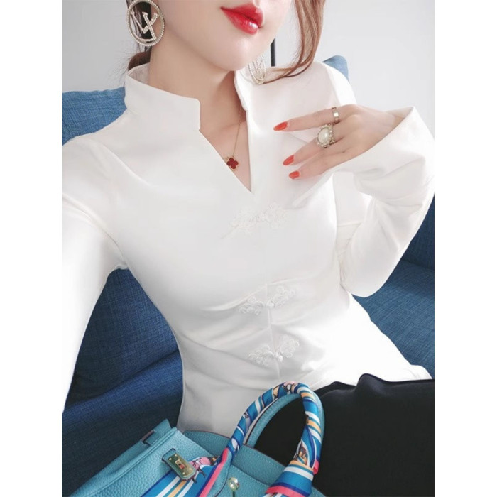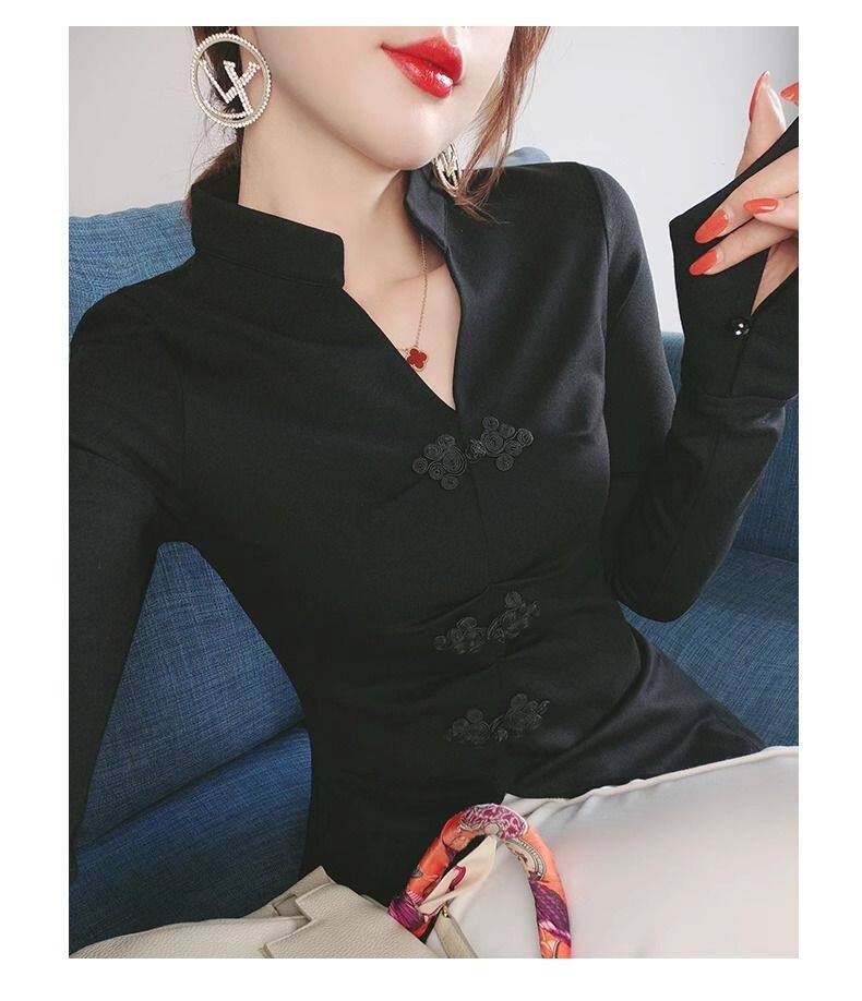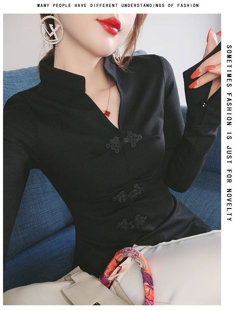 風收腰春秋復古民族風盤釦襯衫女時尚內搭氣質小衆別致上衣女