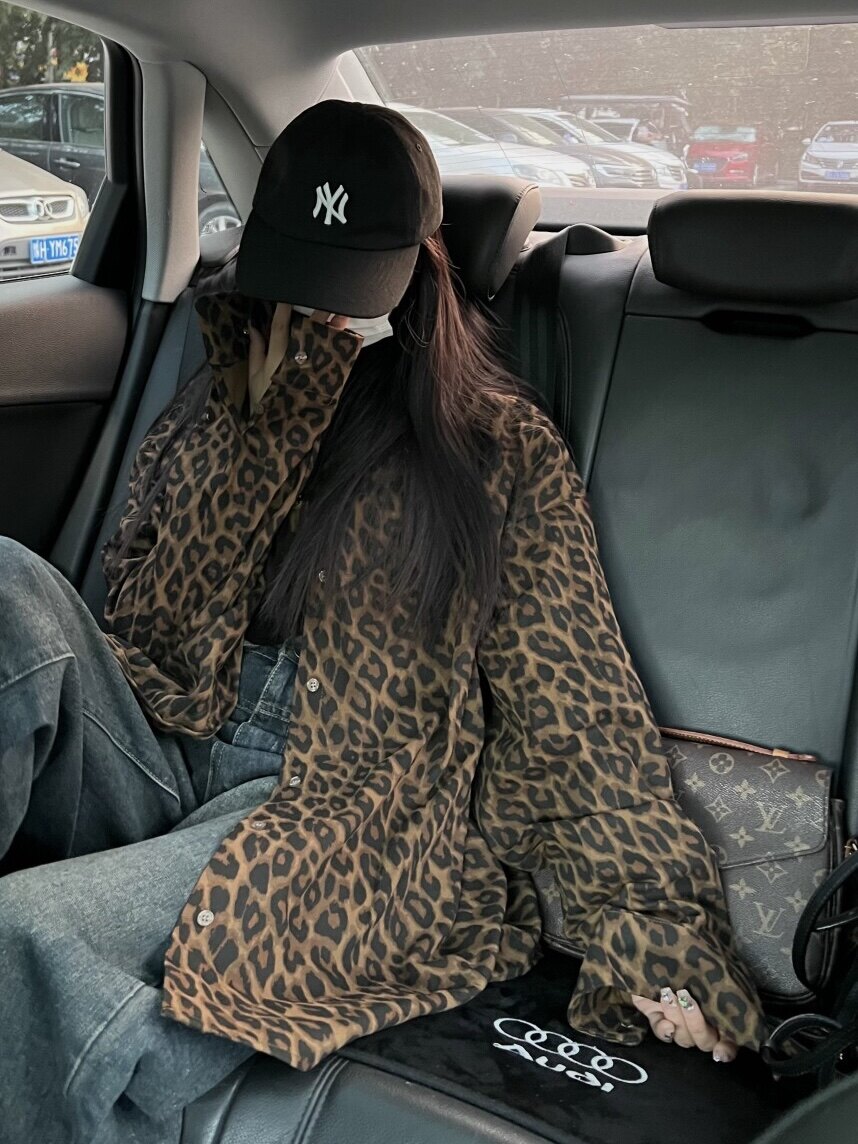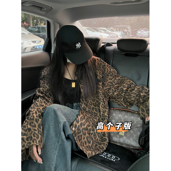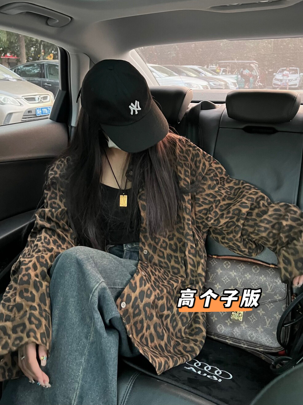 THE MOON高個子加長美式復古豹紋襯衫外套2025秋中長款慵懶風襯衣
