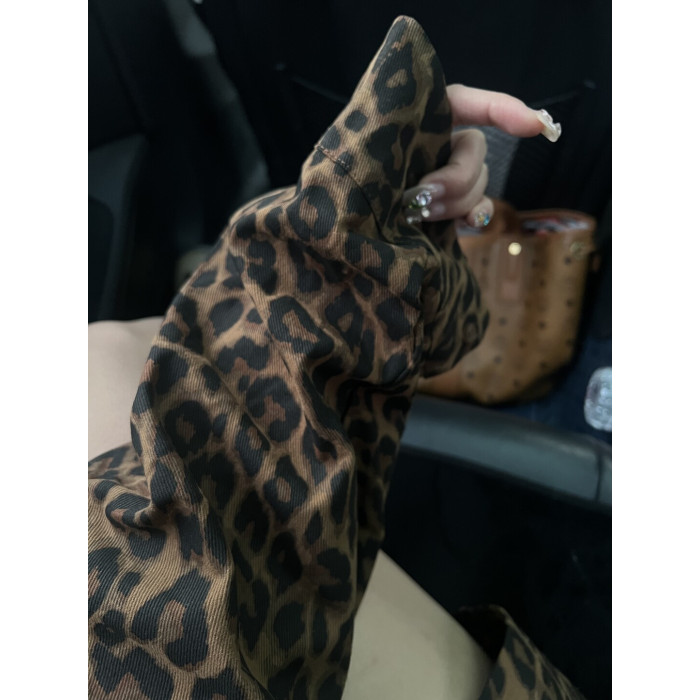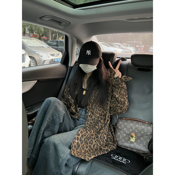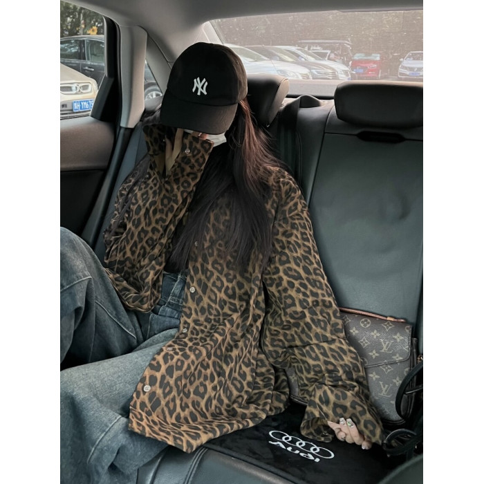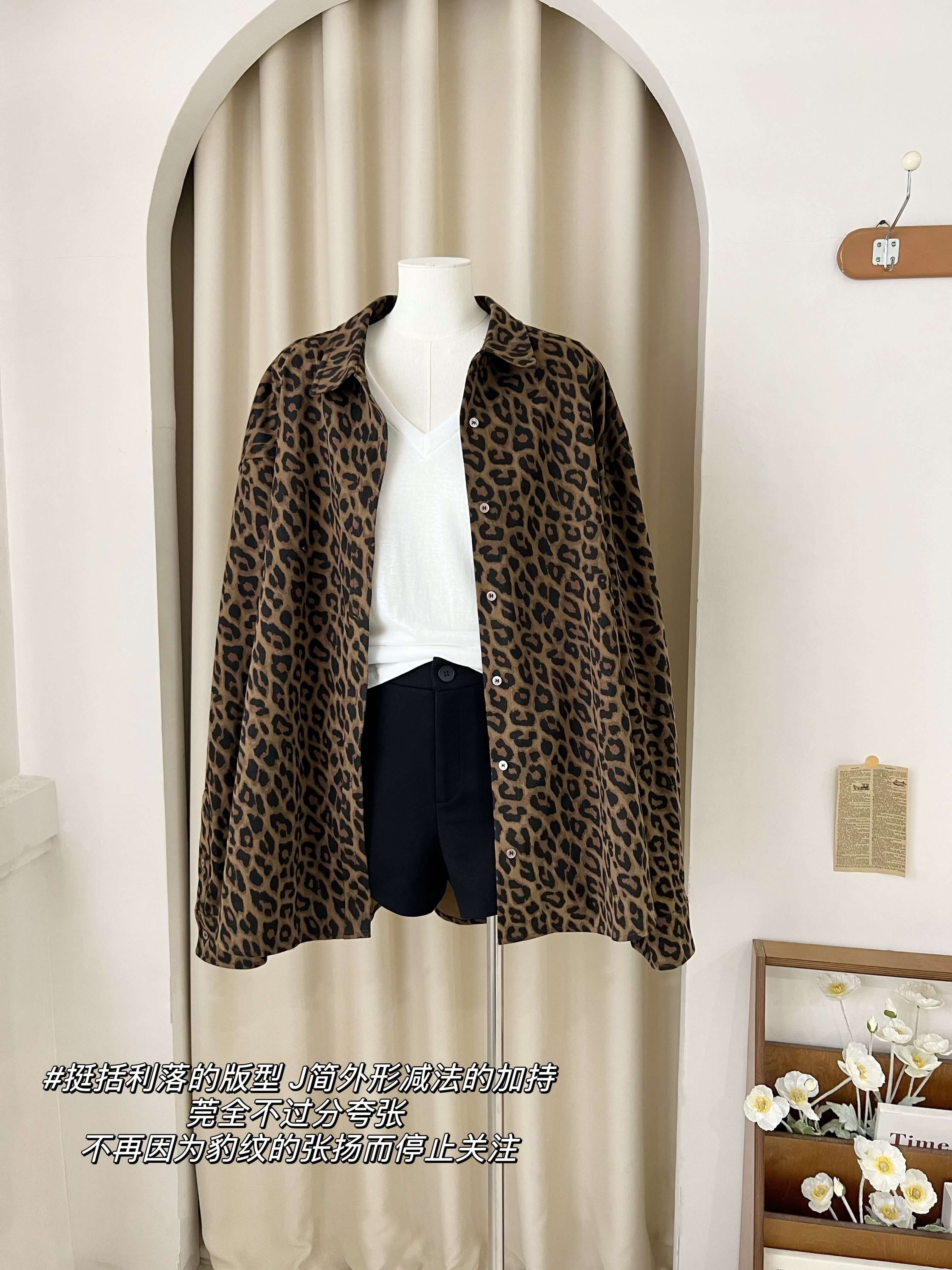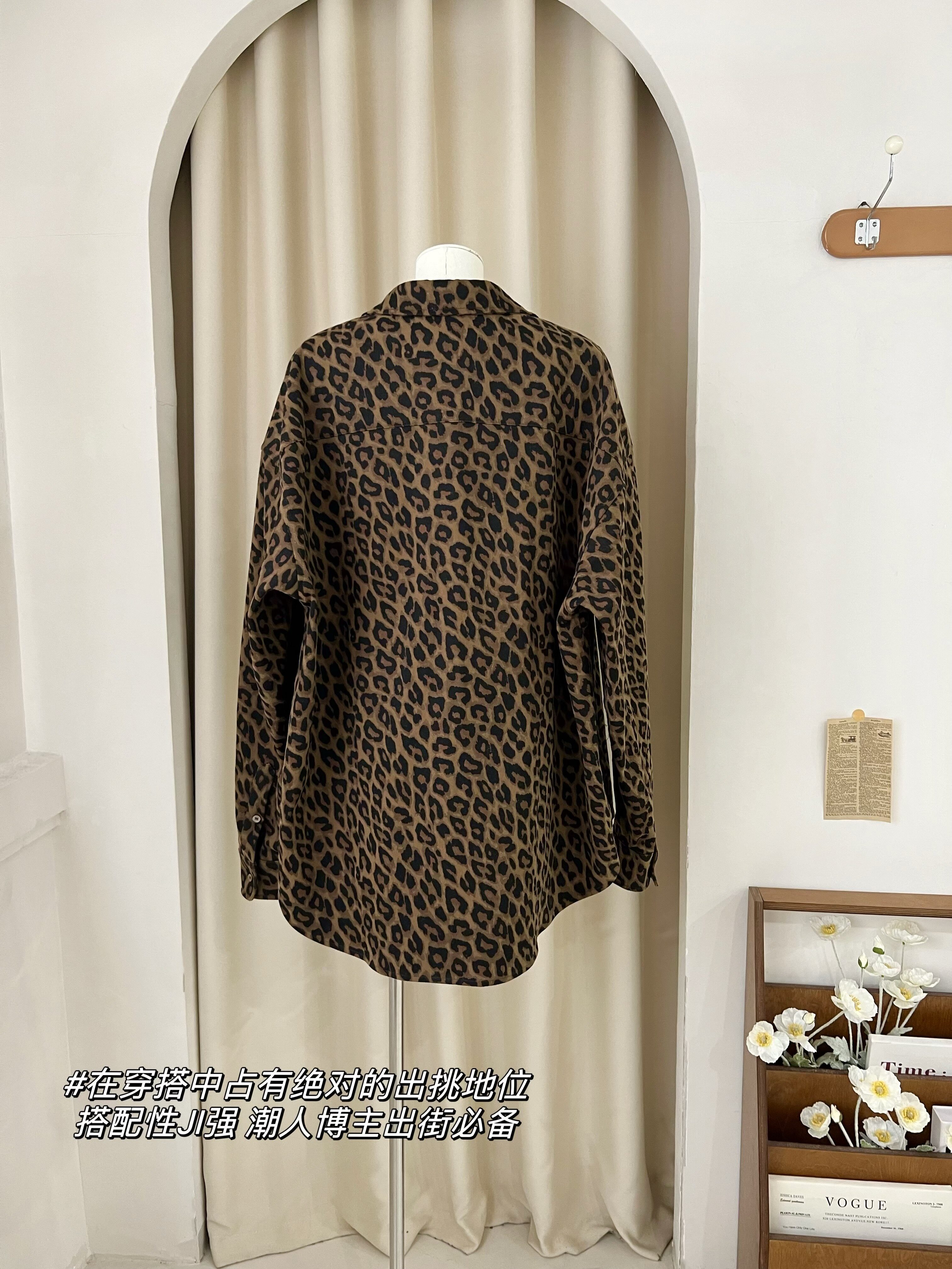 THE MOON高個子加長美式復古豹紋襯衫外套2025秋中長款慵懶風襯衣