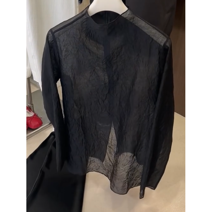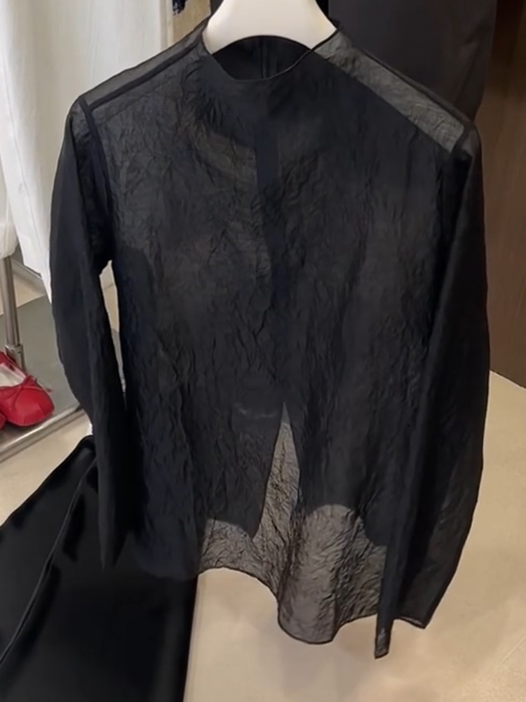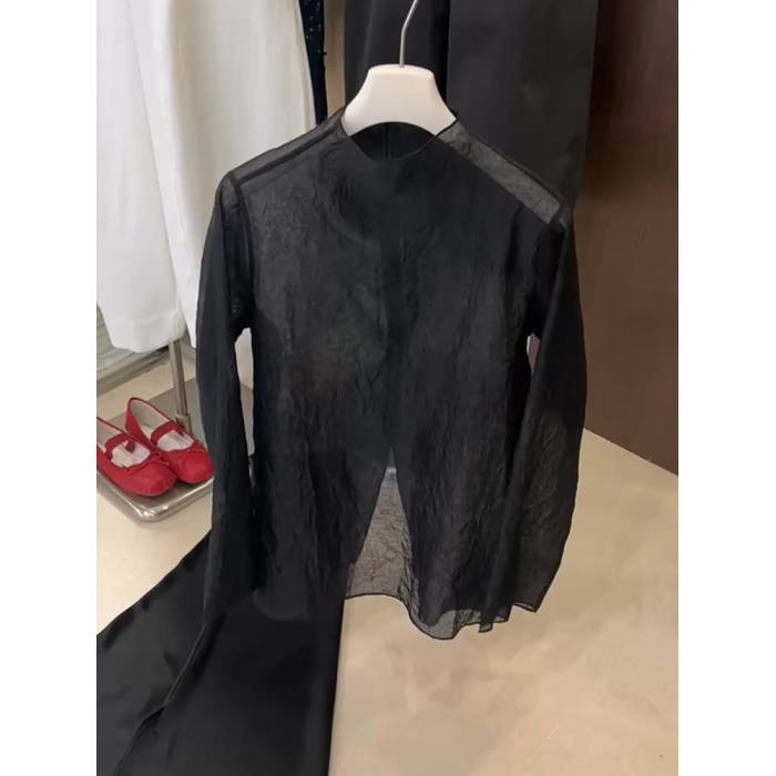 圓領簡約設計感黑色時尚氣質防曬衣2025年秋季新款洋氣長袖襯衫女