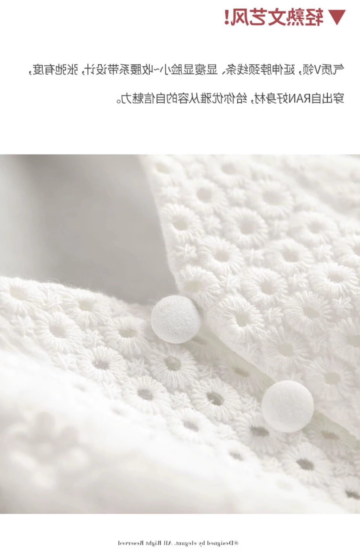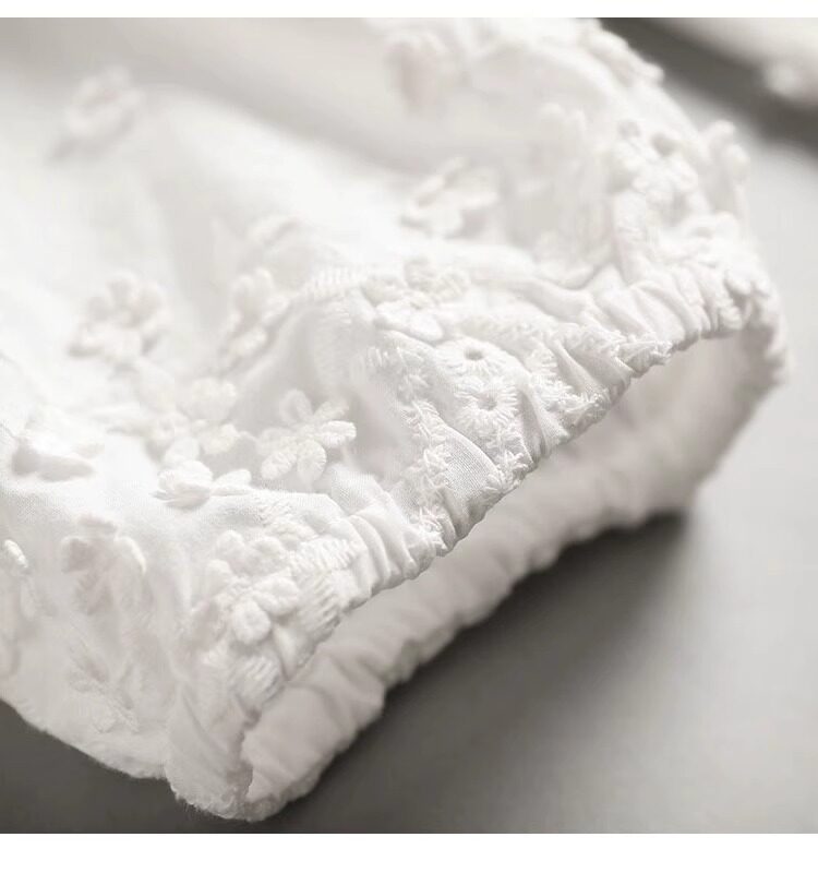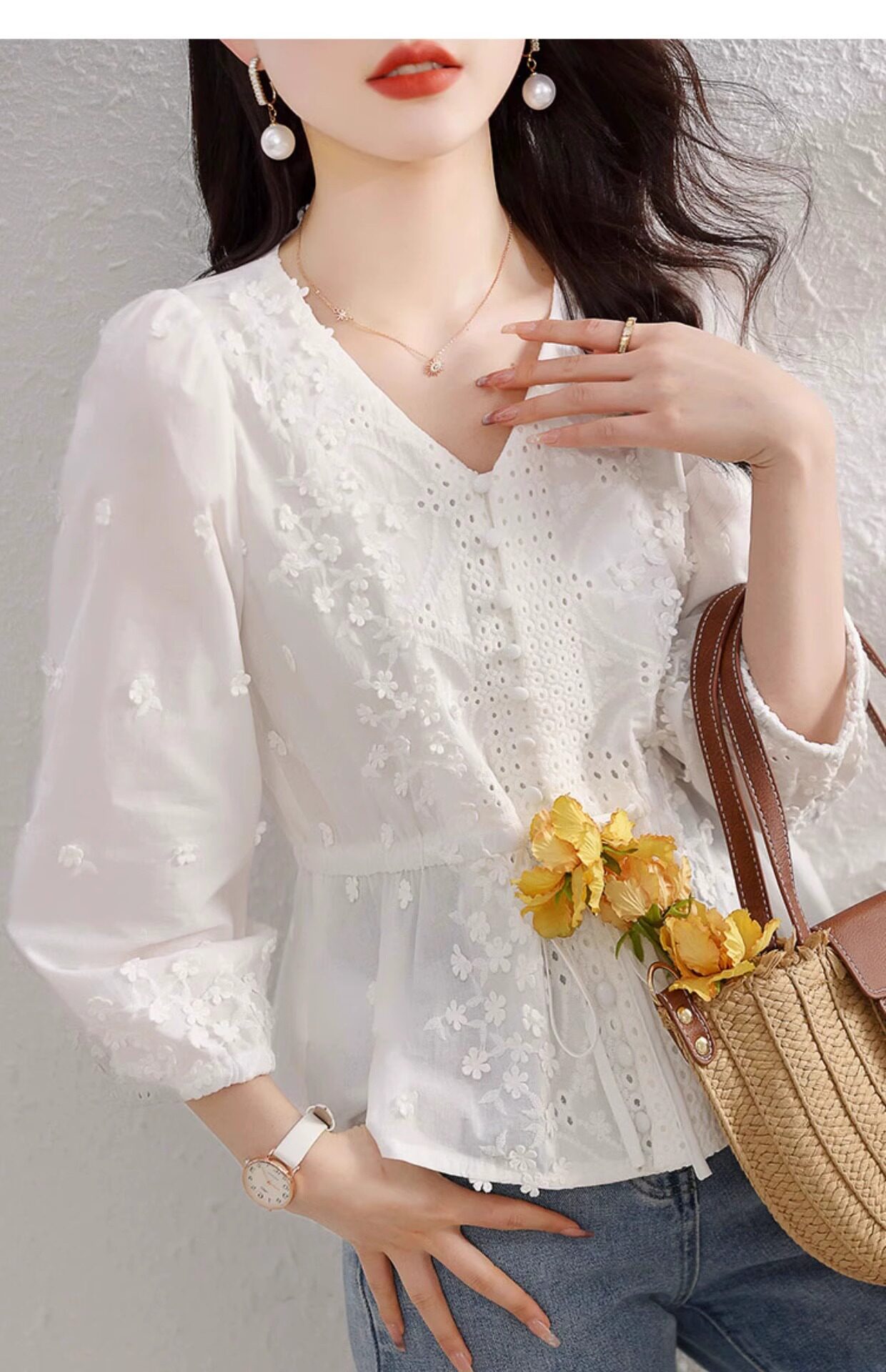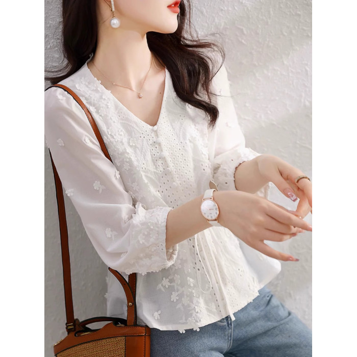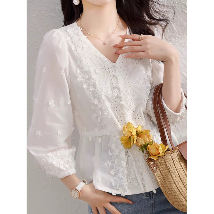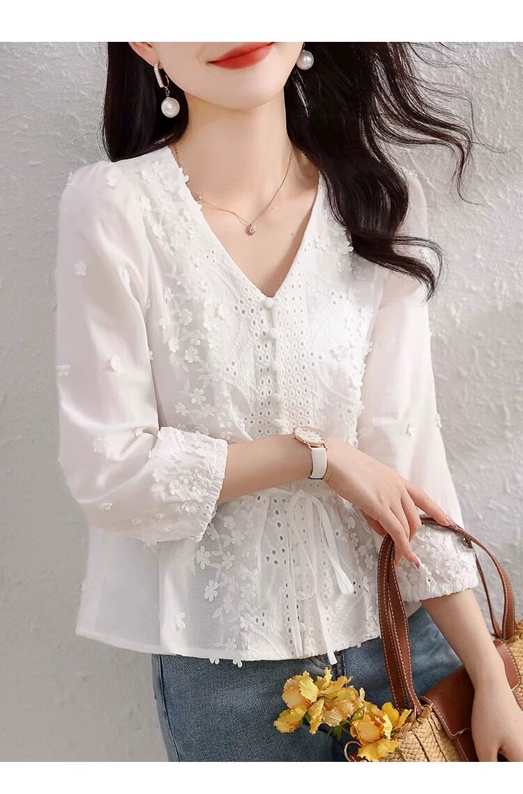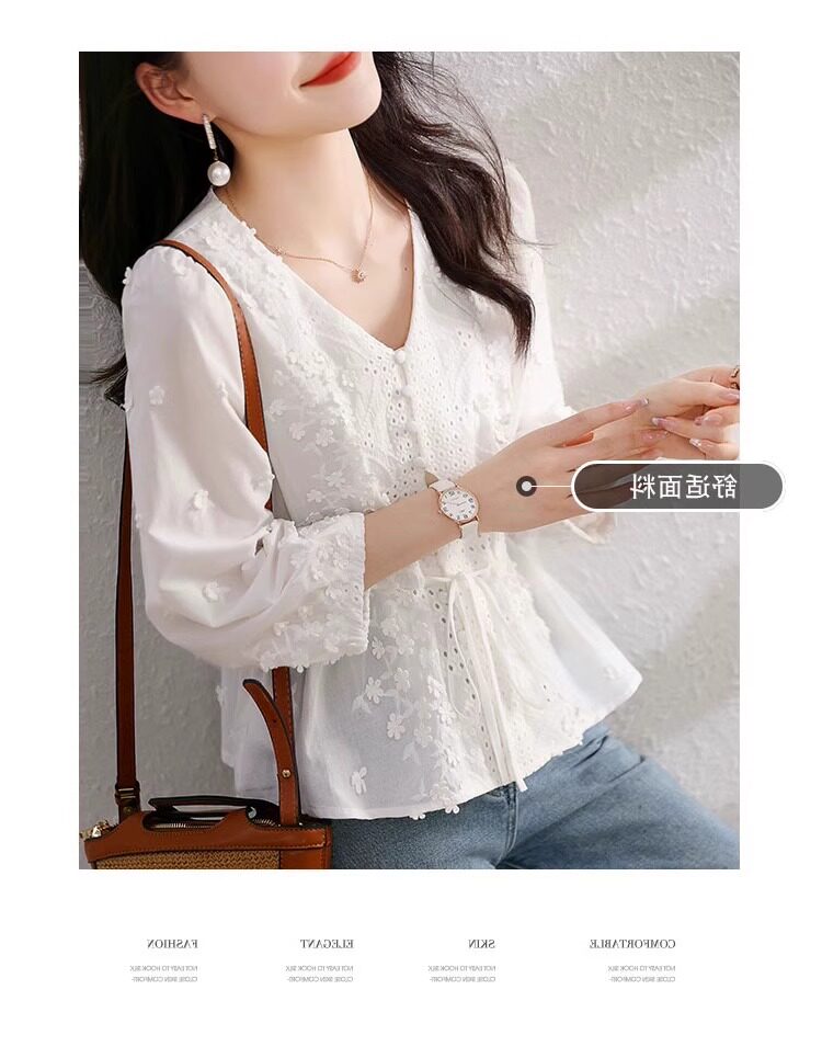 設計感絕美立體花朵襯衫2025夏季系帶收腰優雅減齡洋氣v領上衣女