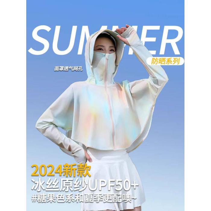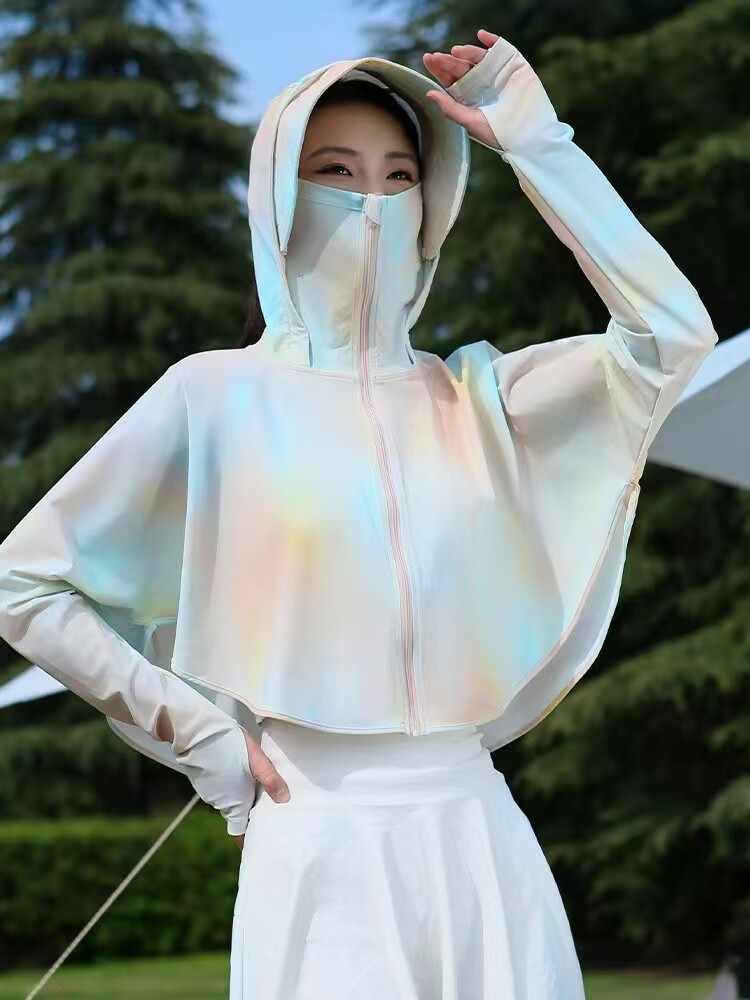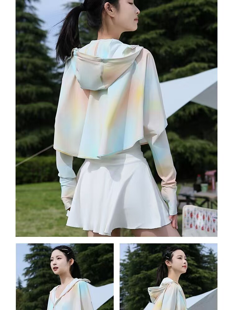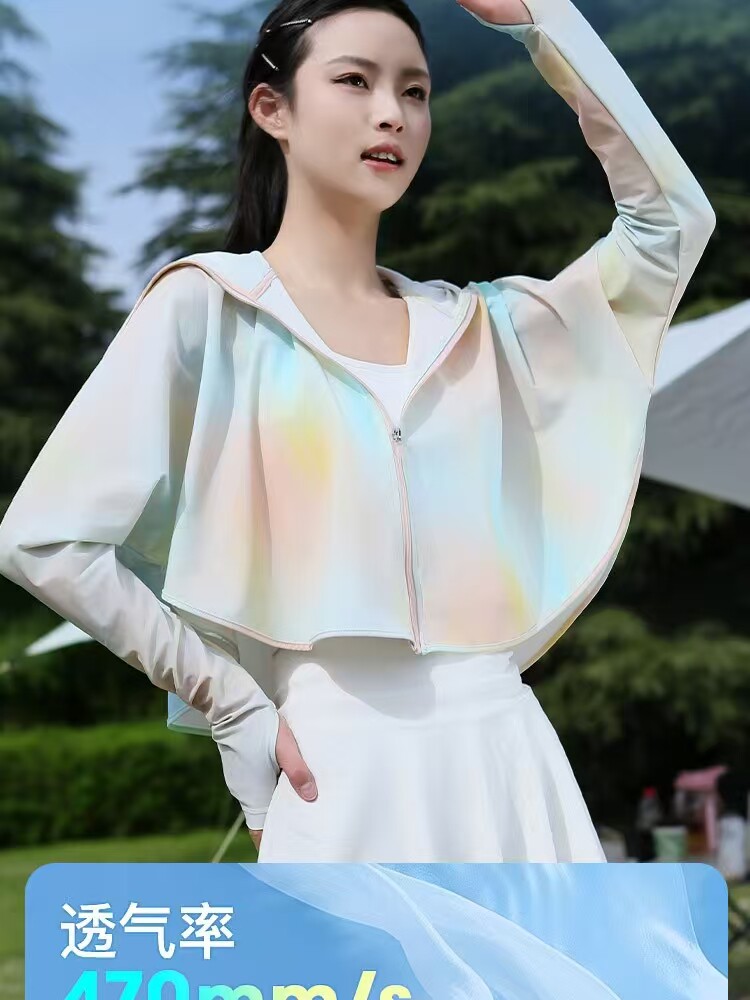 杜克嚴選臻選防曬衣女短款2025夏季新款防紫外線原紗冰絲彩色印花