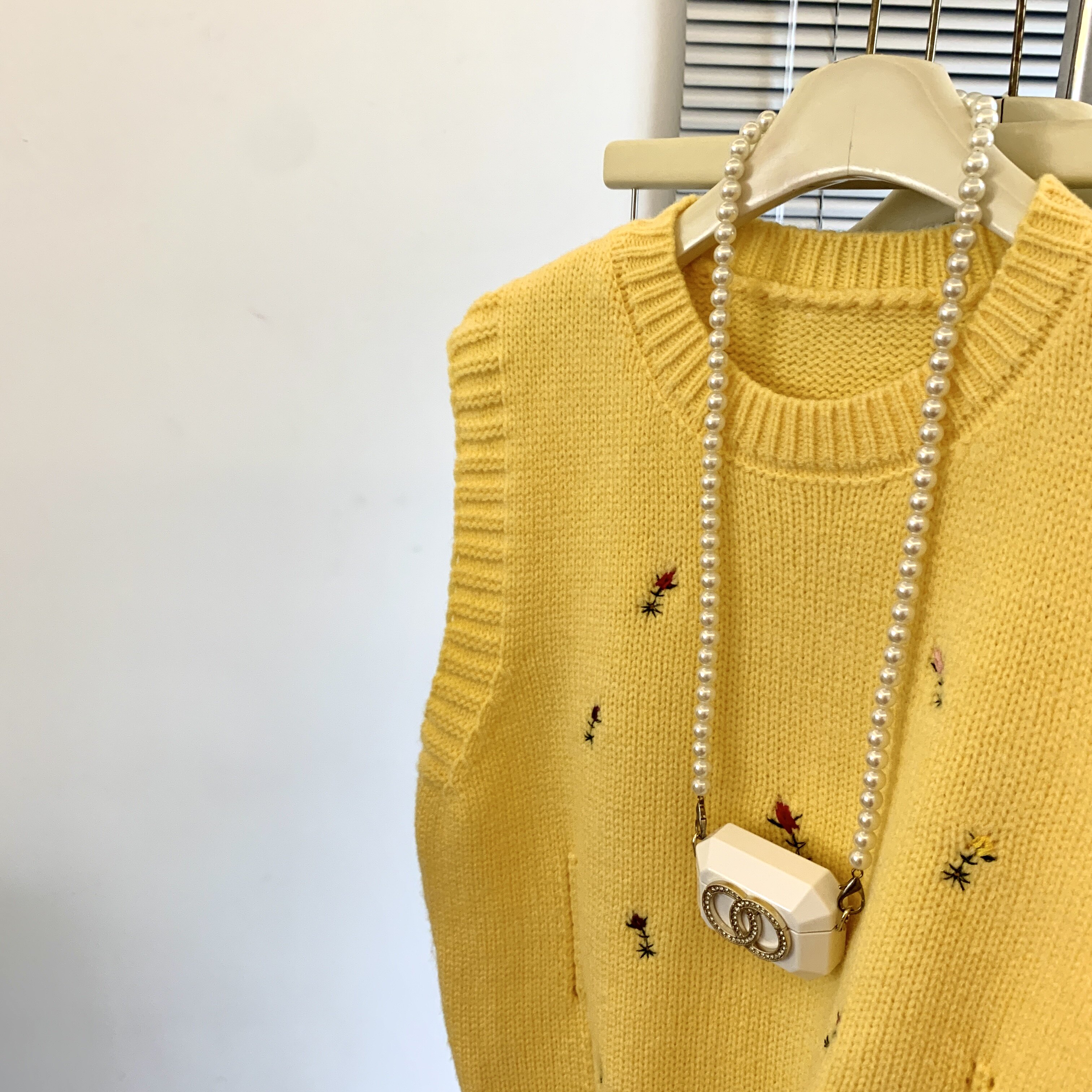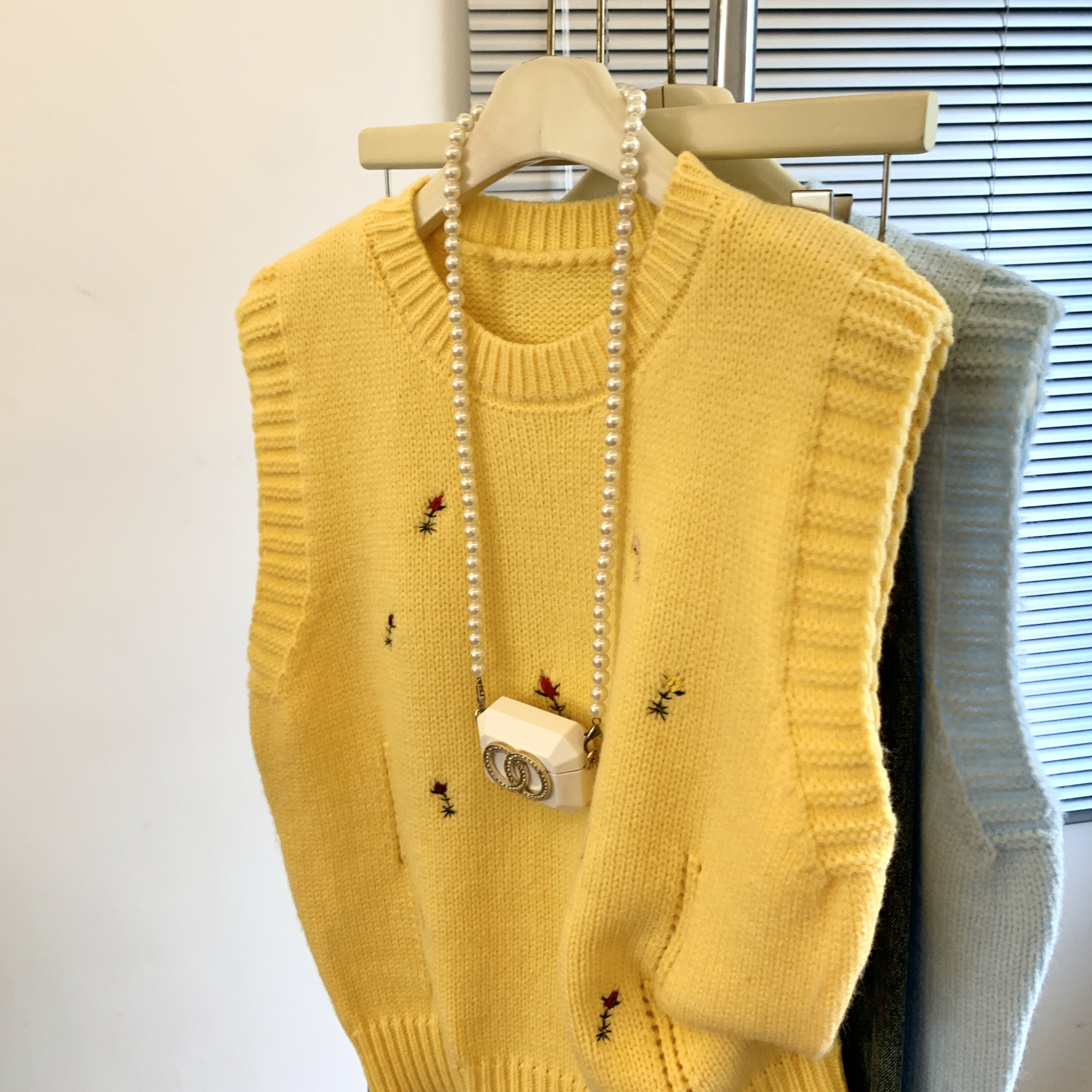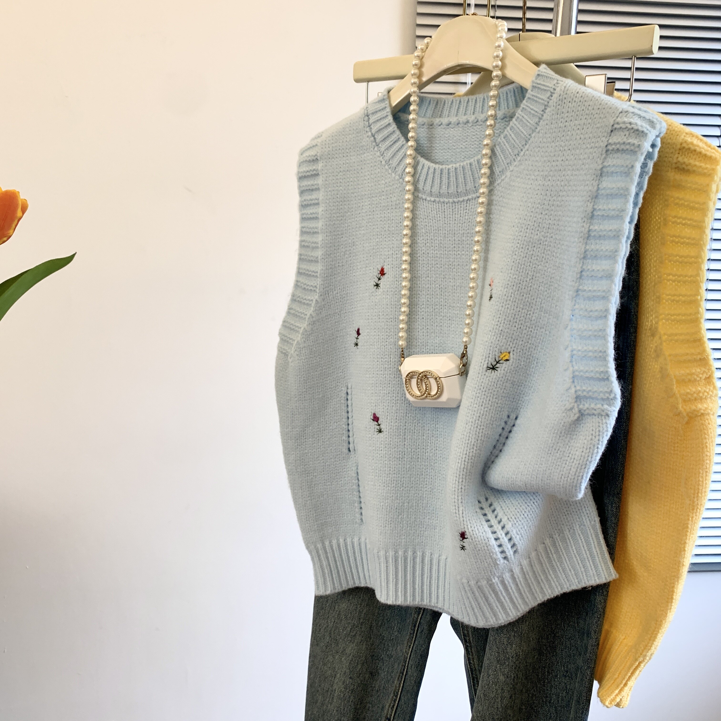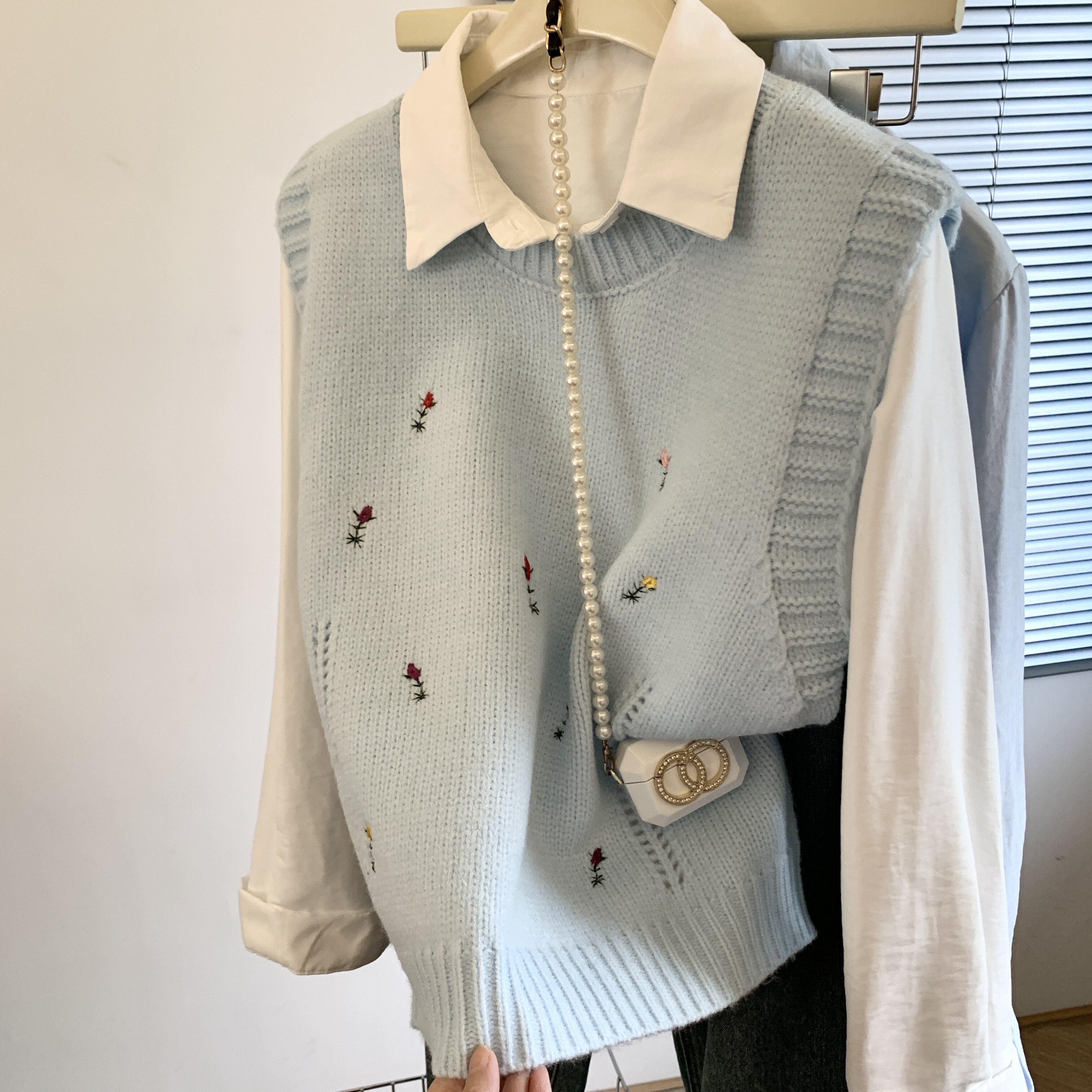 專櫃撤廻剪標設計感刺綉花朵馬甲女2025新款POLO領襯衫曡穿兩件套
