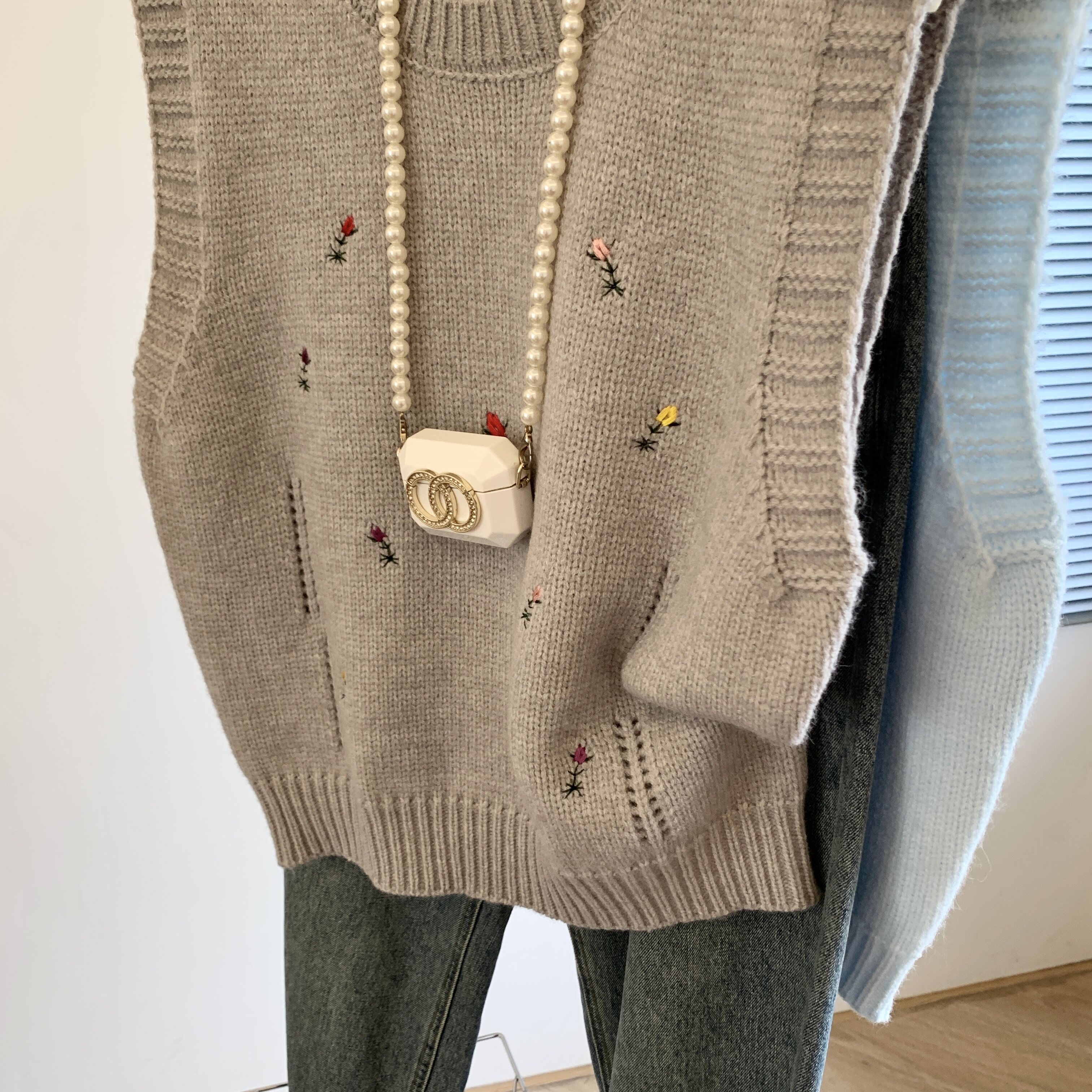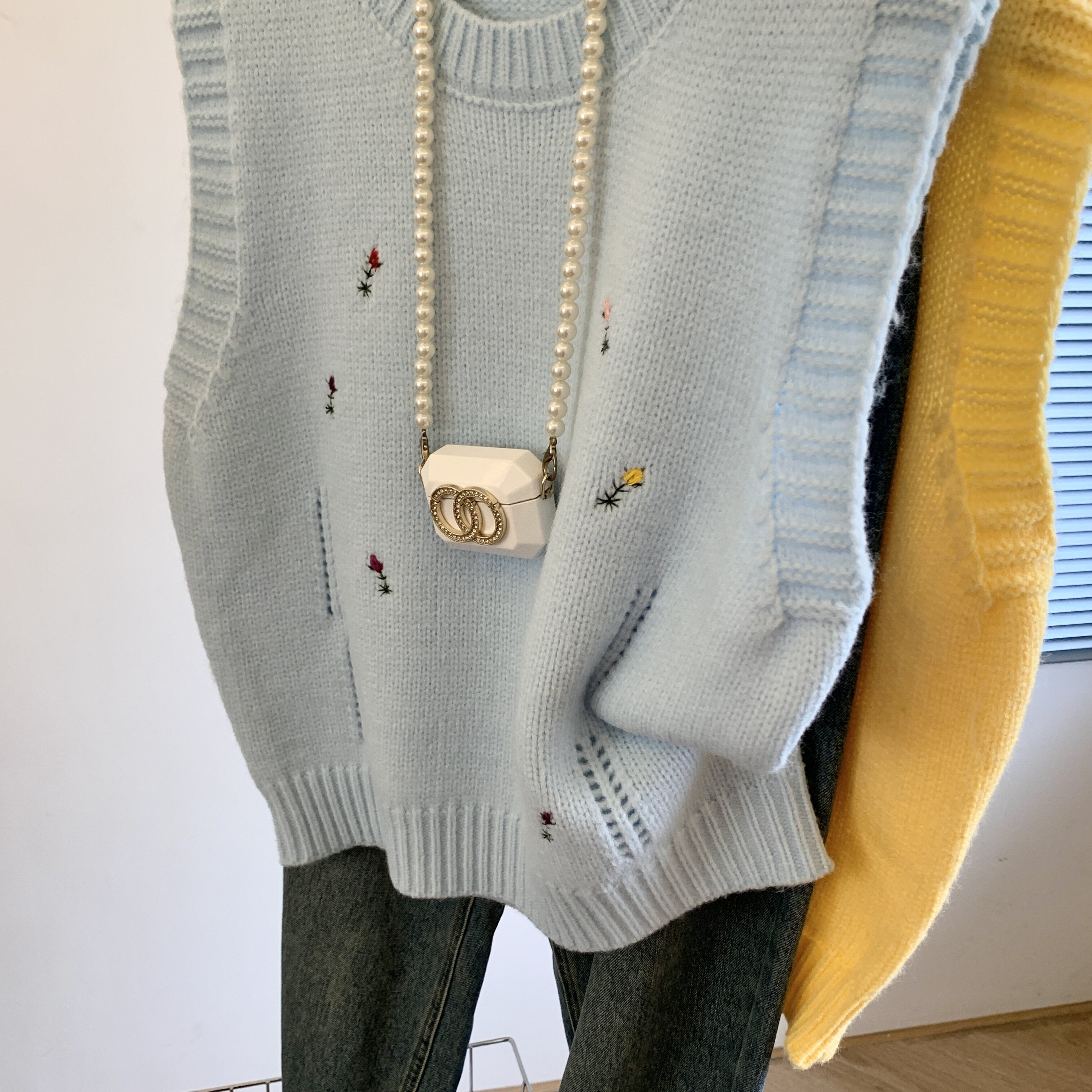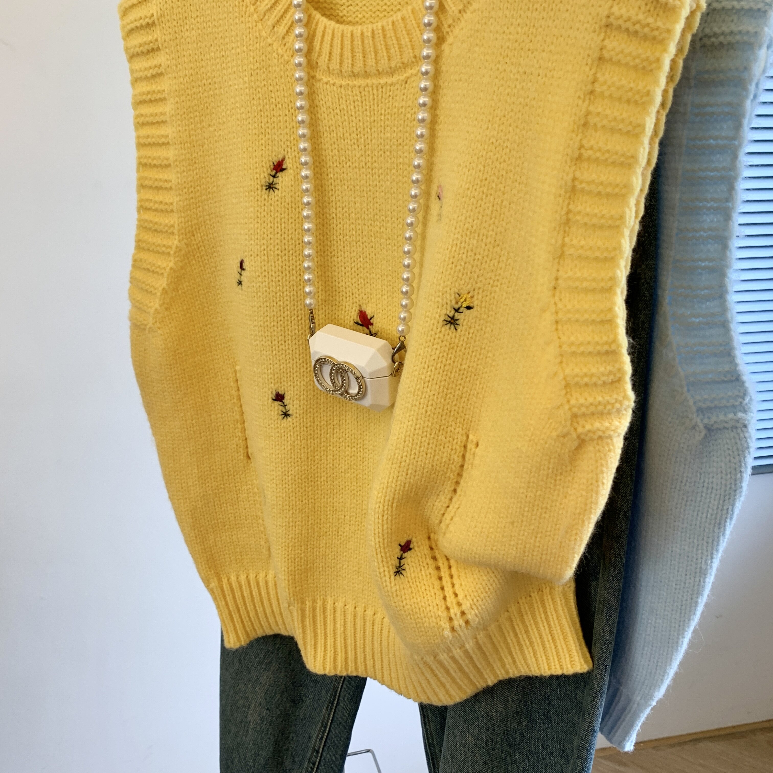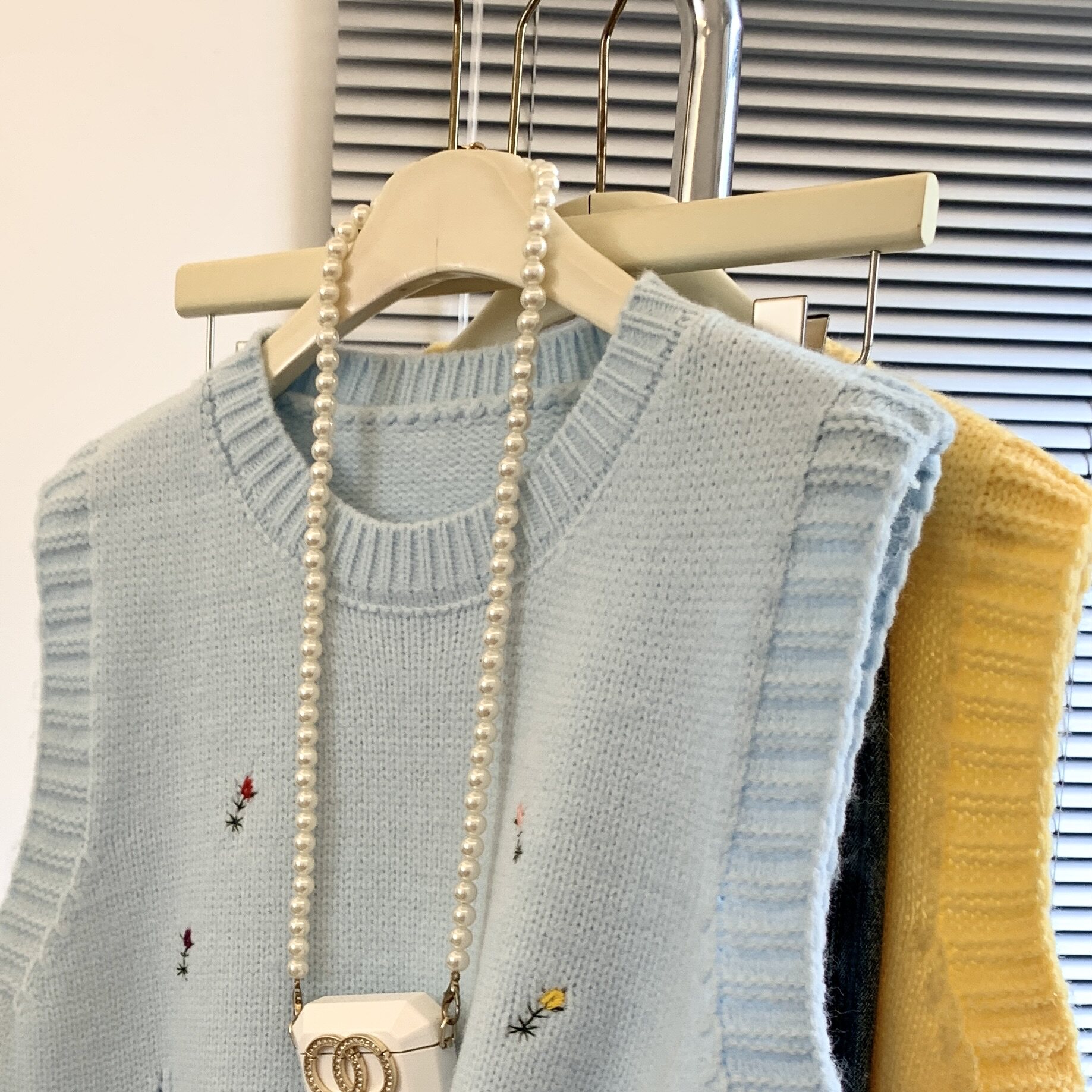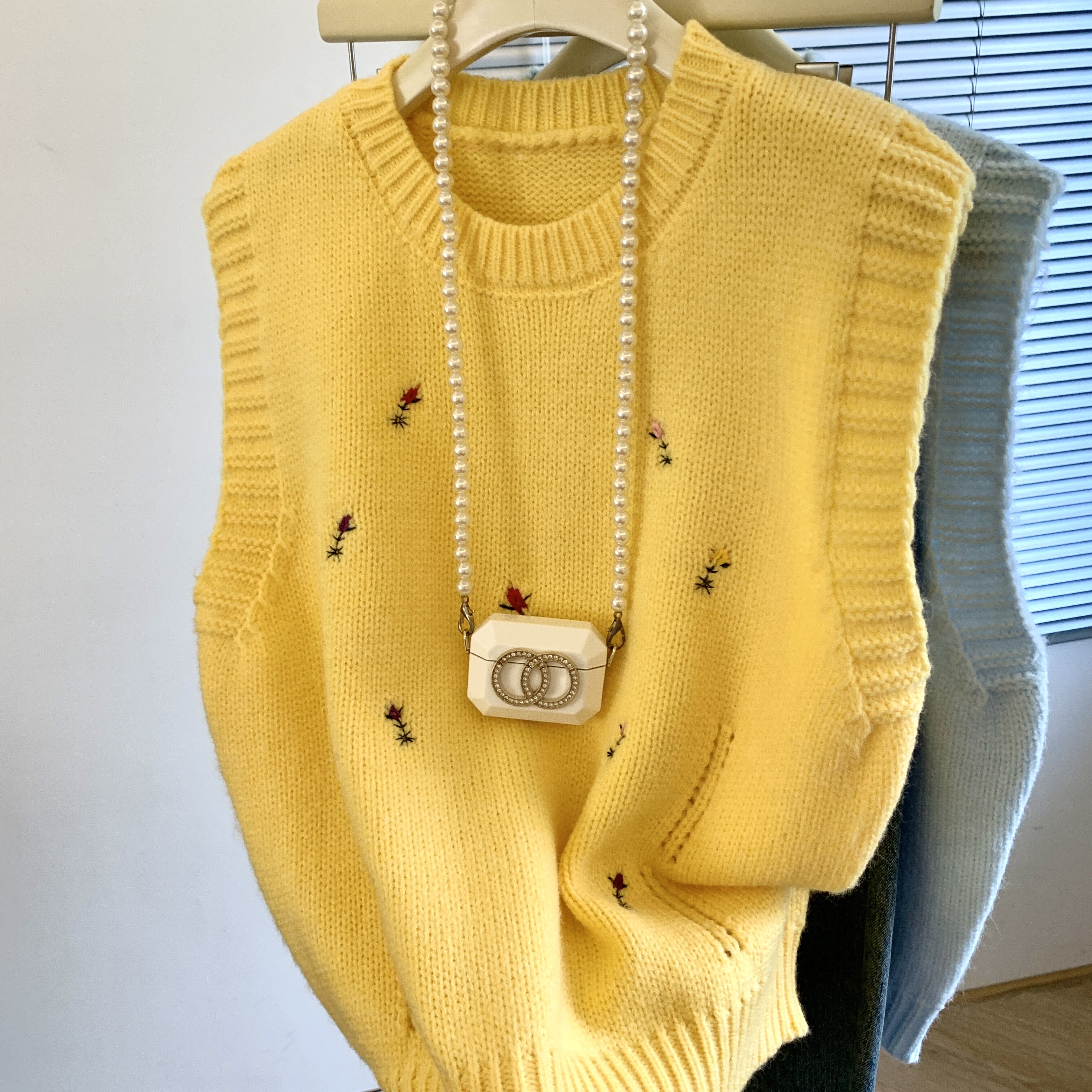 專櫃撤廻剪標設計感刺綉花朵馬甲女2025新款POLO領襯衫曡穿兩件套