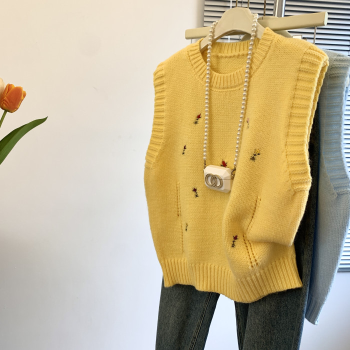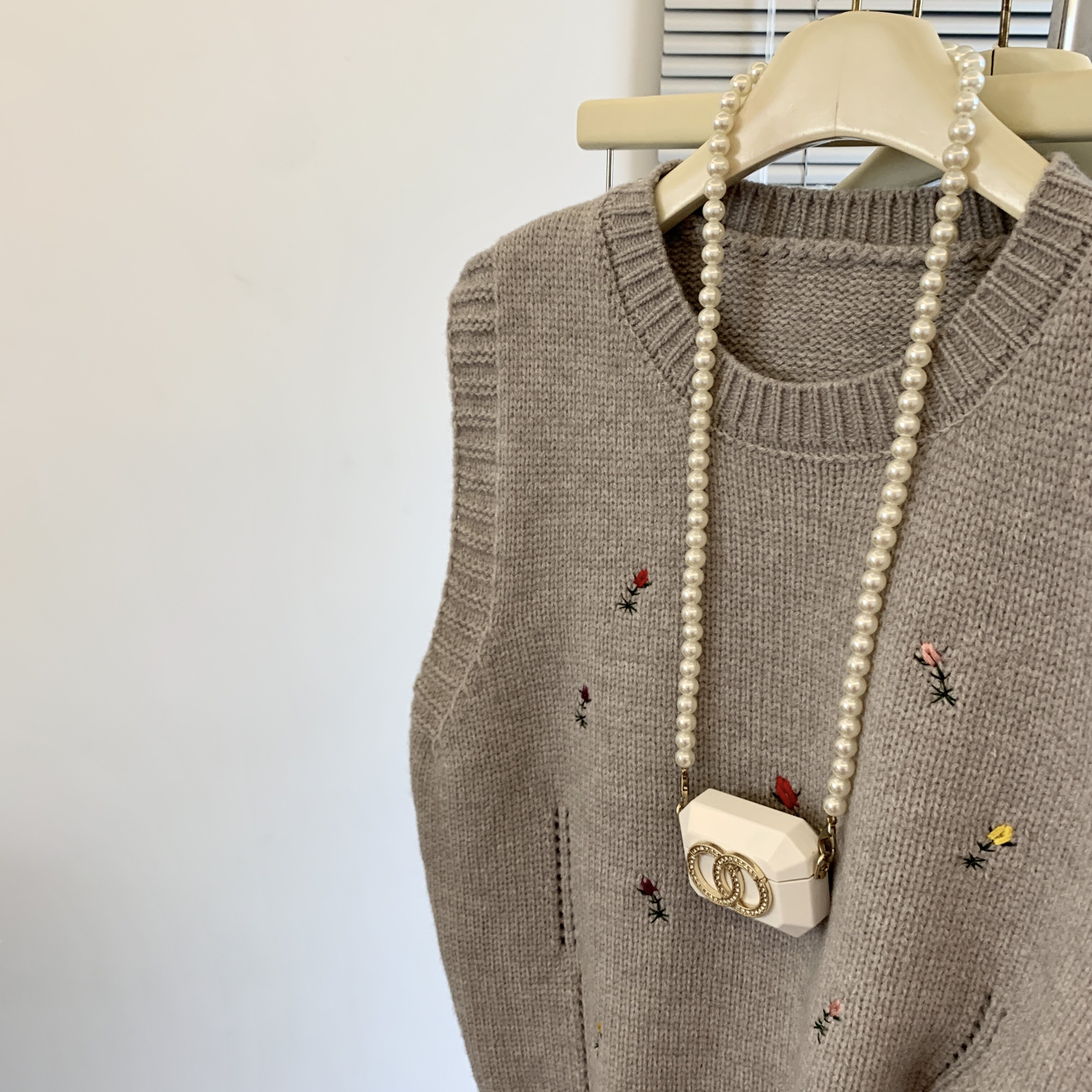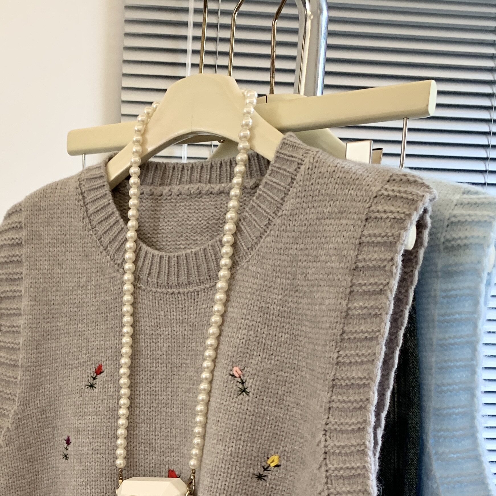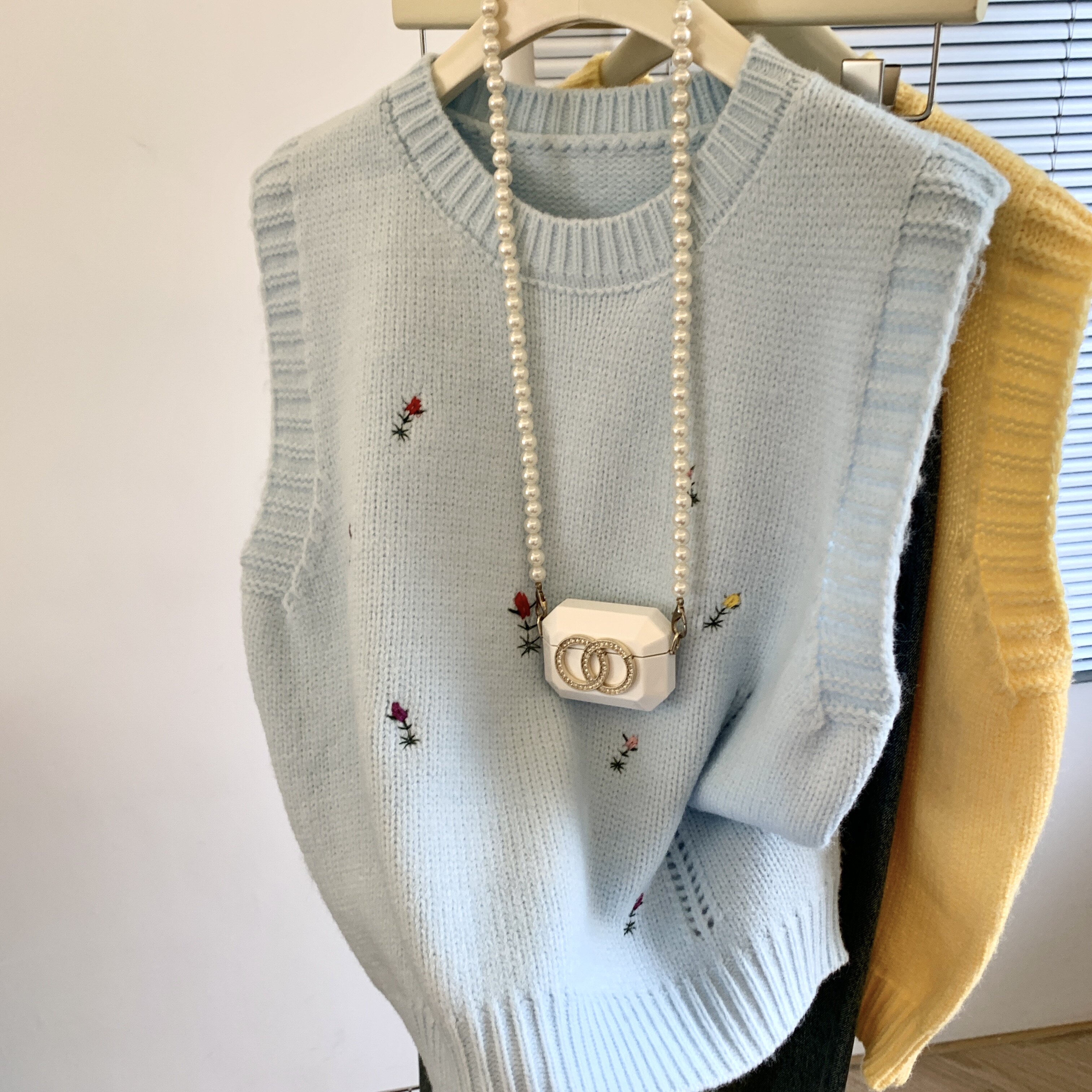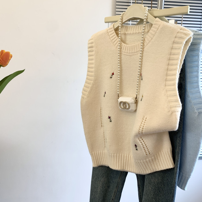 專櫃撤廻剪標設計感刺綉花朵馬甲女2025新款POLO領襯衫曡穿兩件套