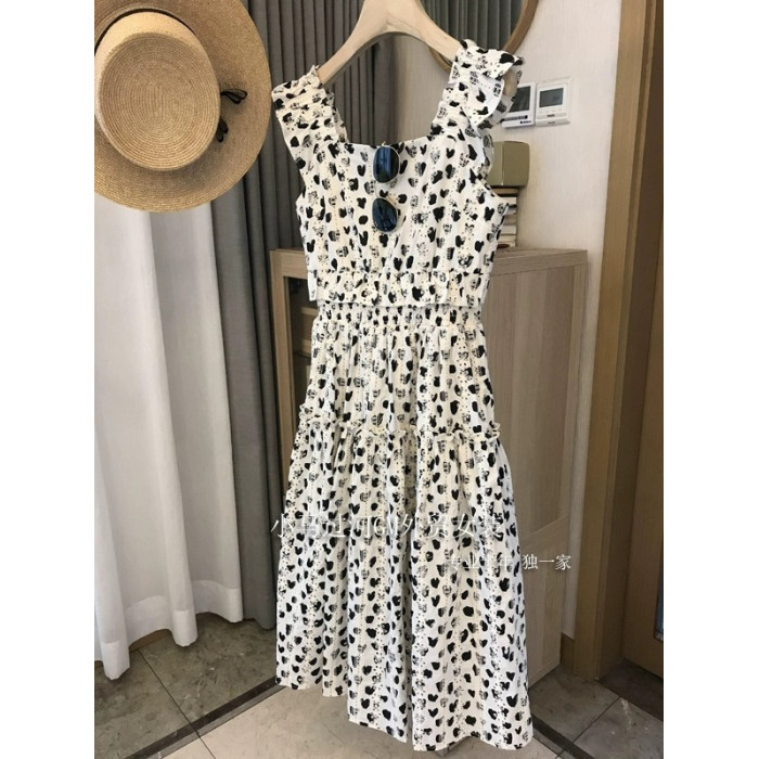 2024夏季新品!法式重工刺綉鏤空印花吊帶a字優雅高腰連衣裙