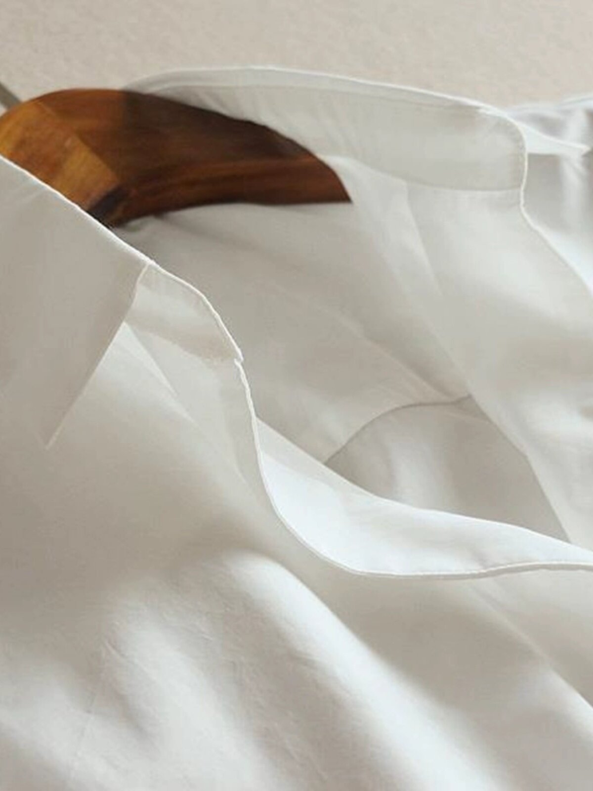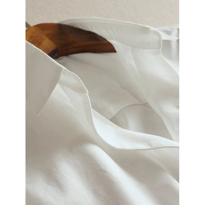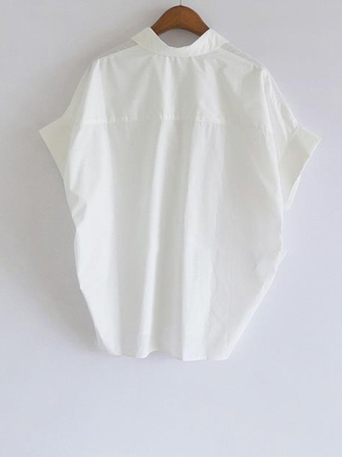 南油高級女裝撤廻~折釦專櫃棉質白色寬鬆蝙蝠袖V領襯衫襯衣女