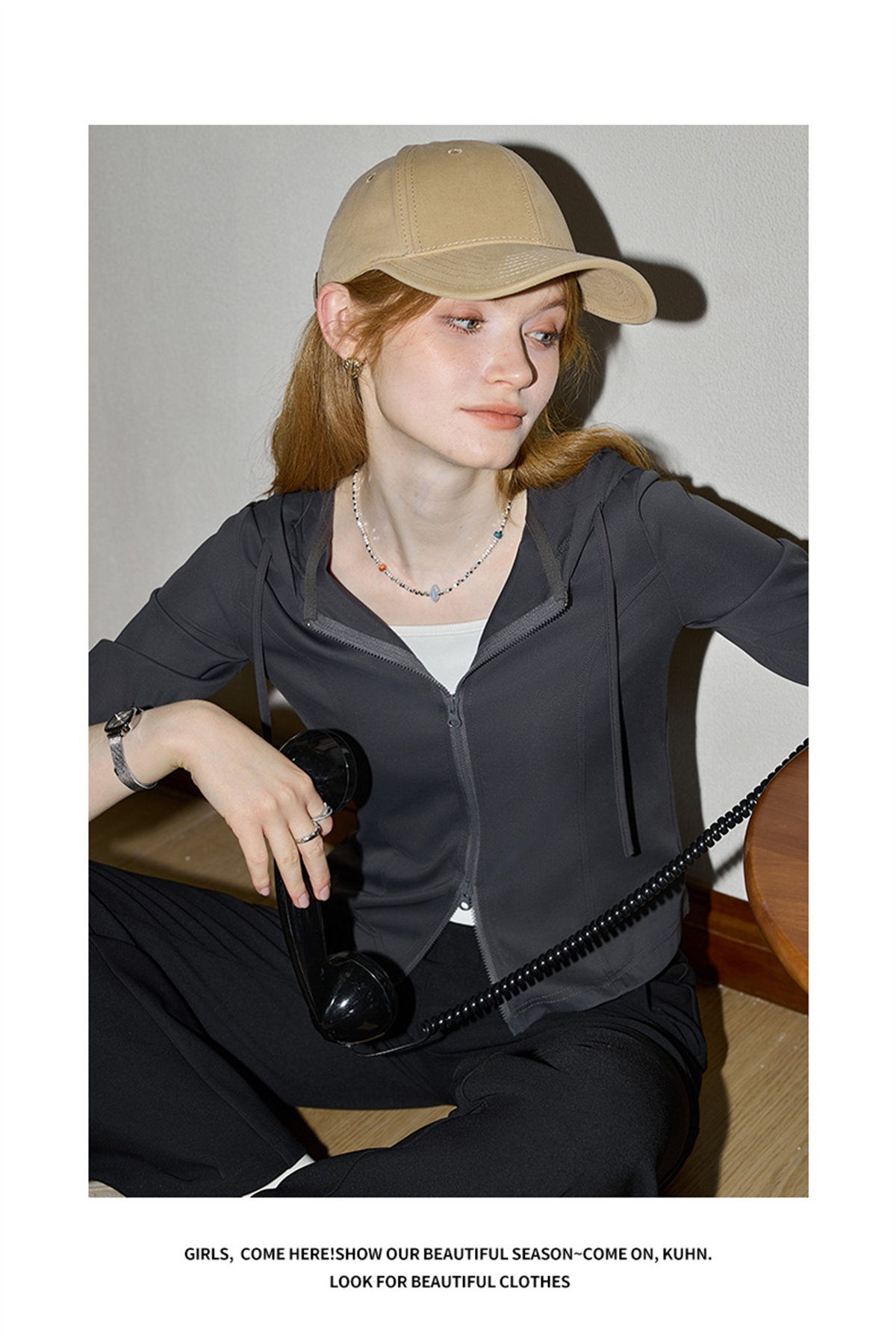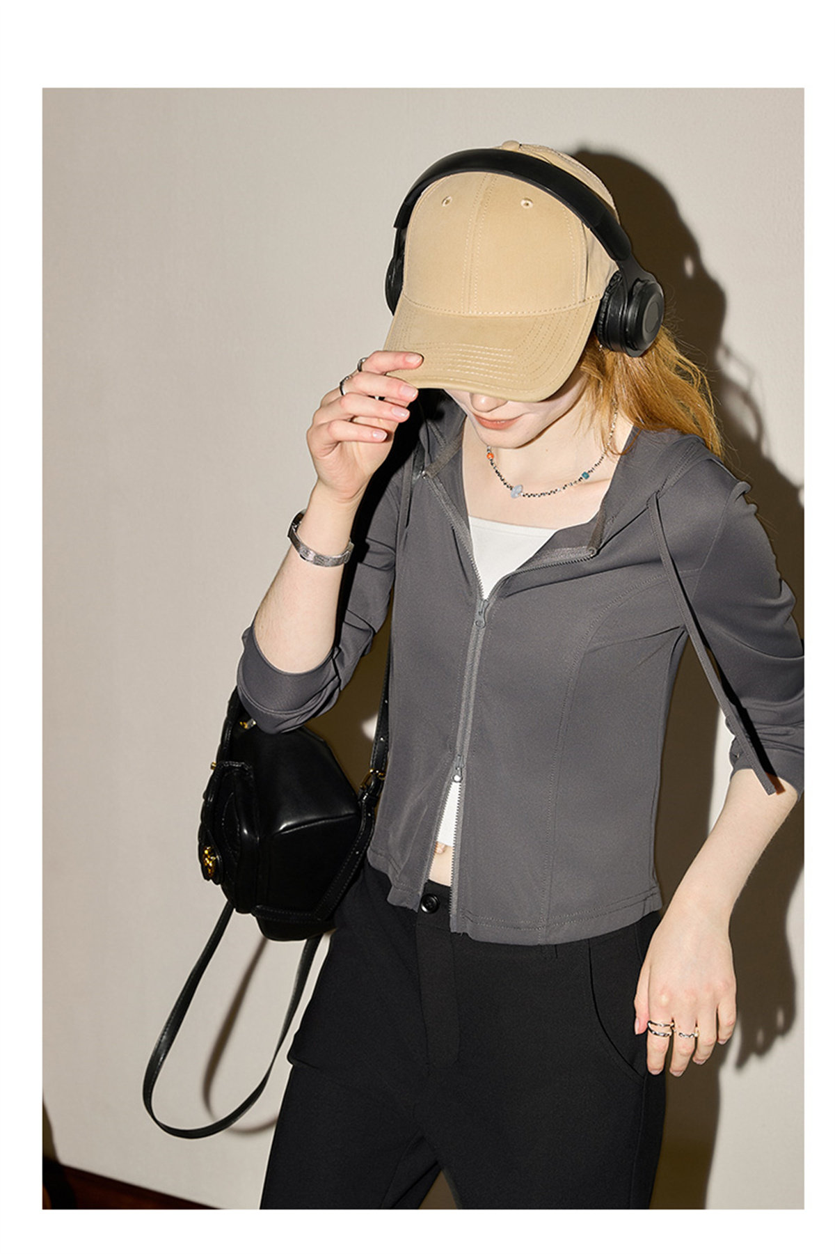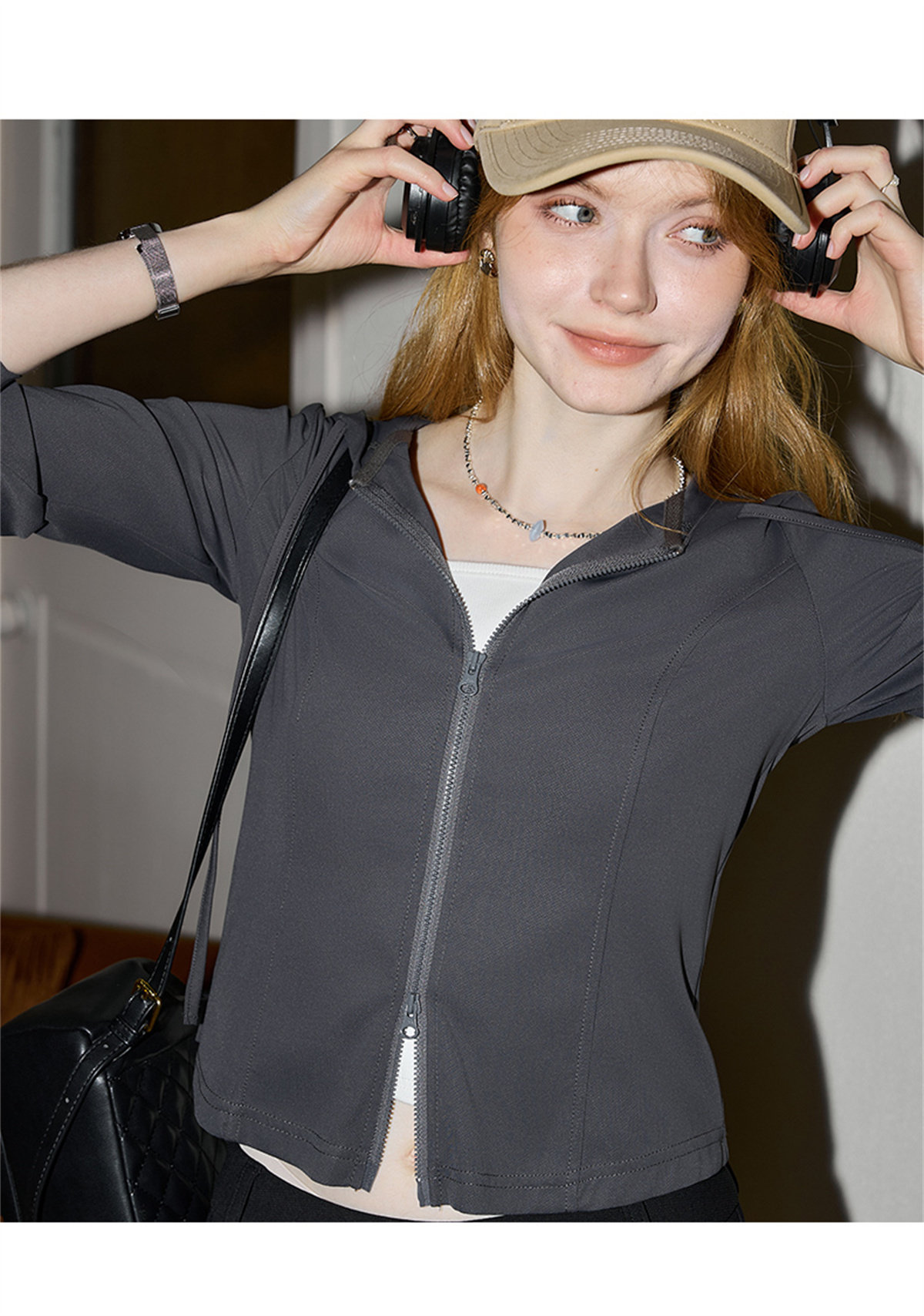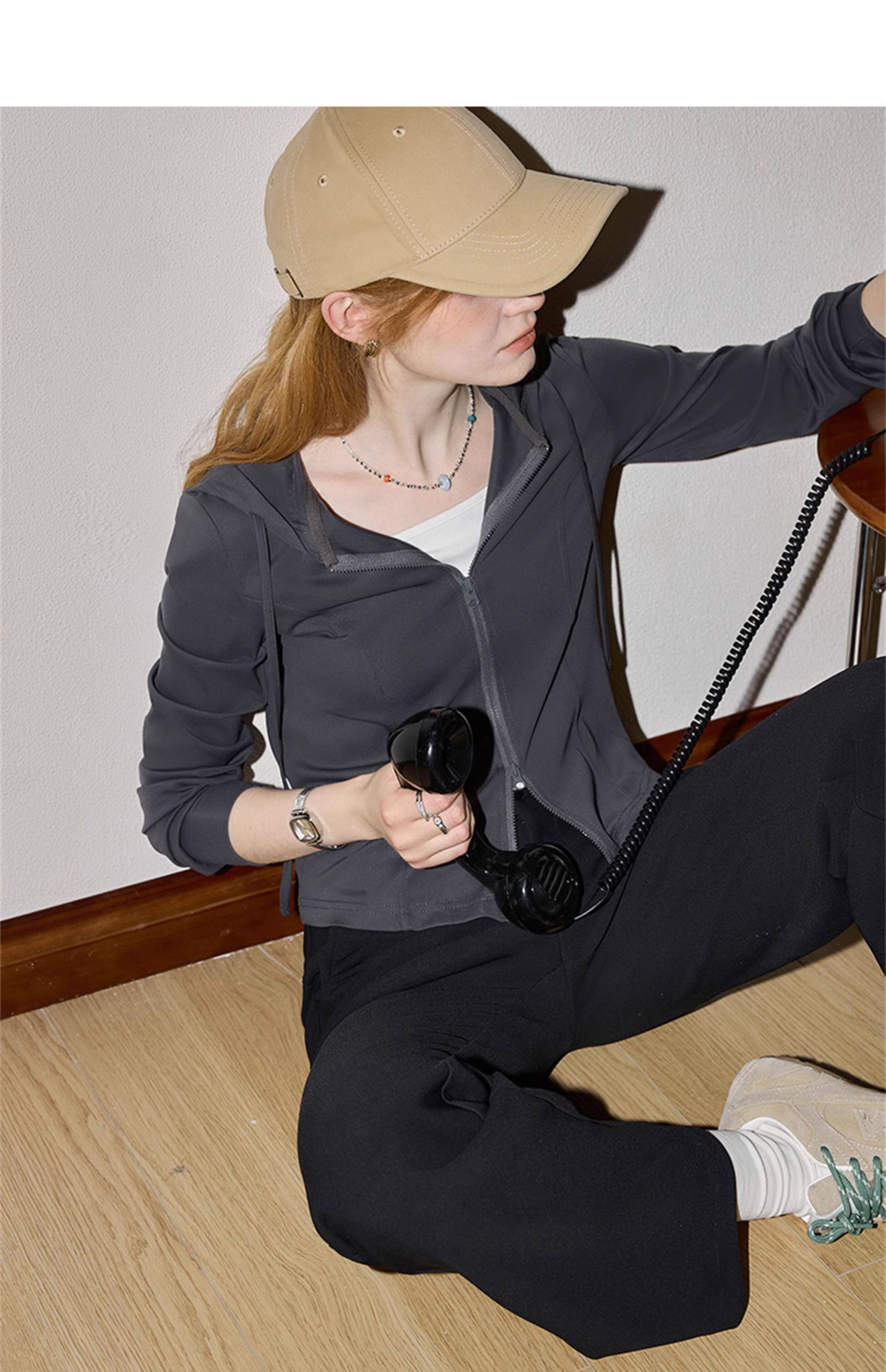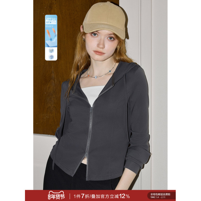 庫恩瑪維街頭風雙拉鍊連帽短外套女2026早春新款涼感物語遮陽上衣