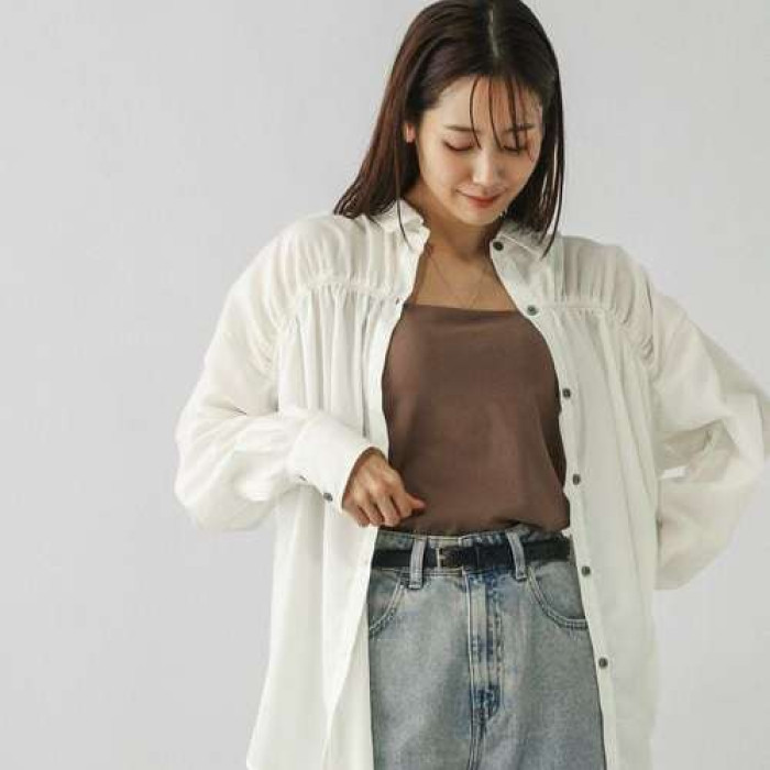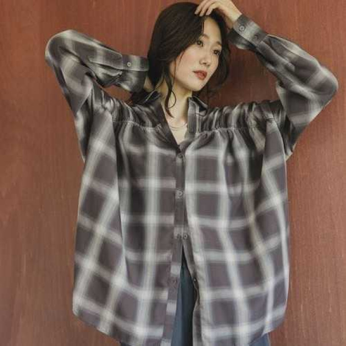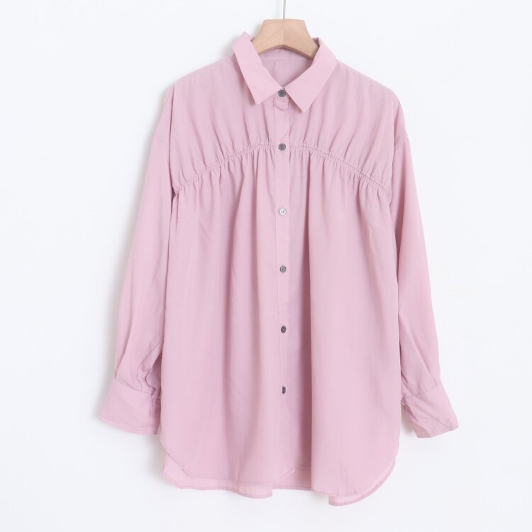 D130101日單新款客供料單排釦寬鬆顯瘦好搭配女氣質甜美長袖襯衫