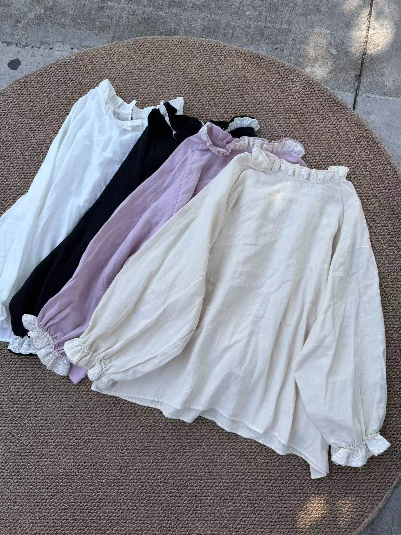 1010嬰兒棉雙層密沙拼接蕾絲打底套頭上衣 胸圍150衣長67