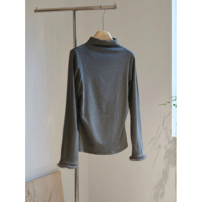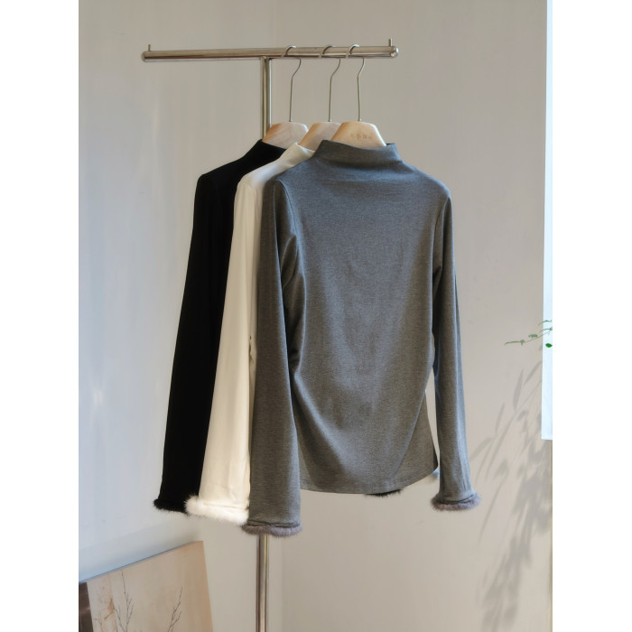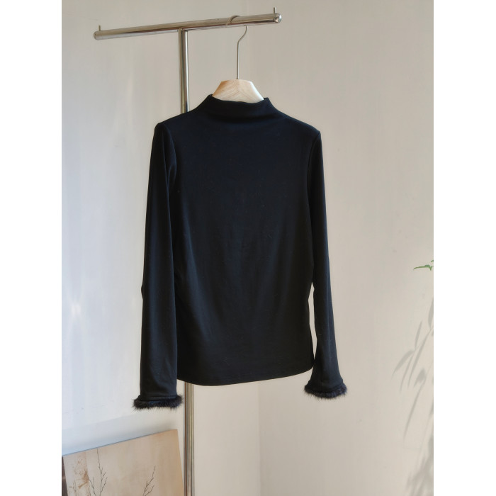 柔軟親膚加絨打底衫半高領氛圍感水貂毛袖口內搭國風新中式百搭冬