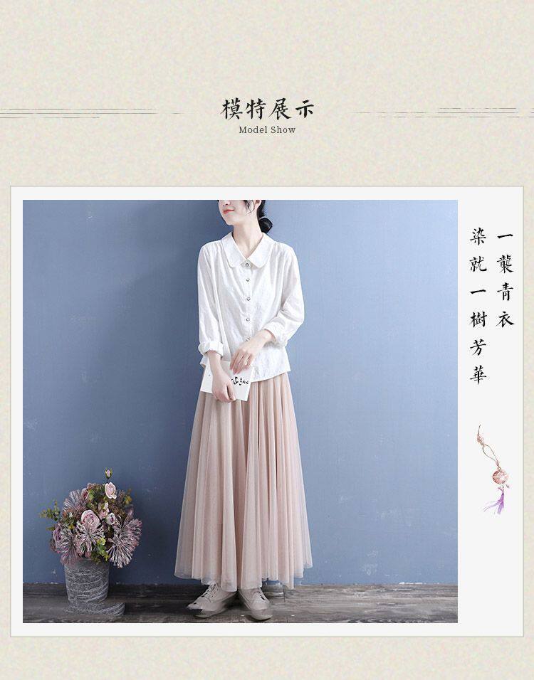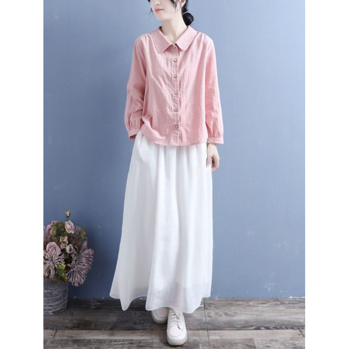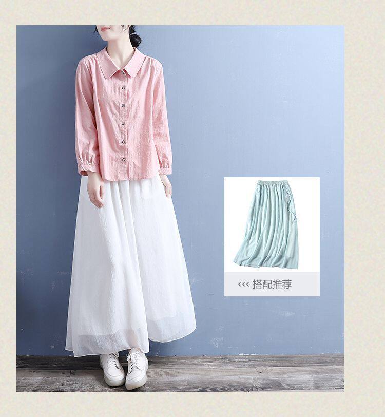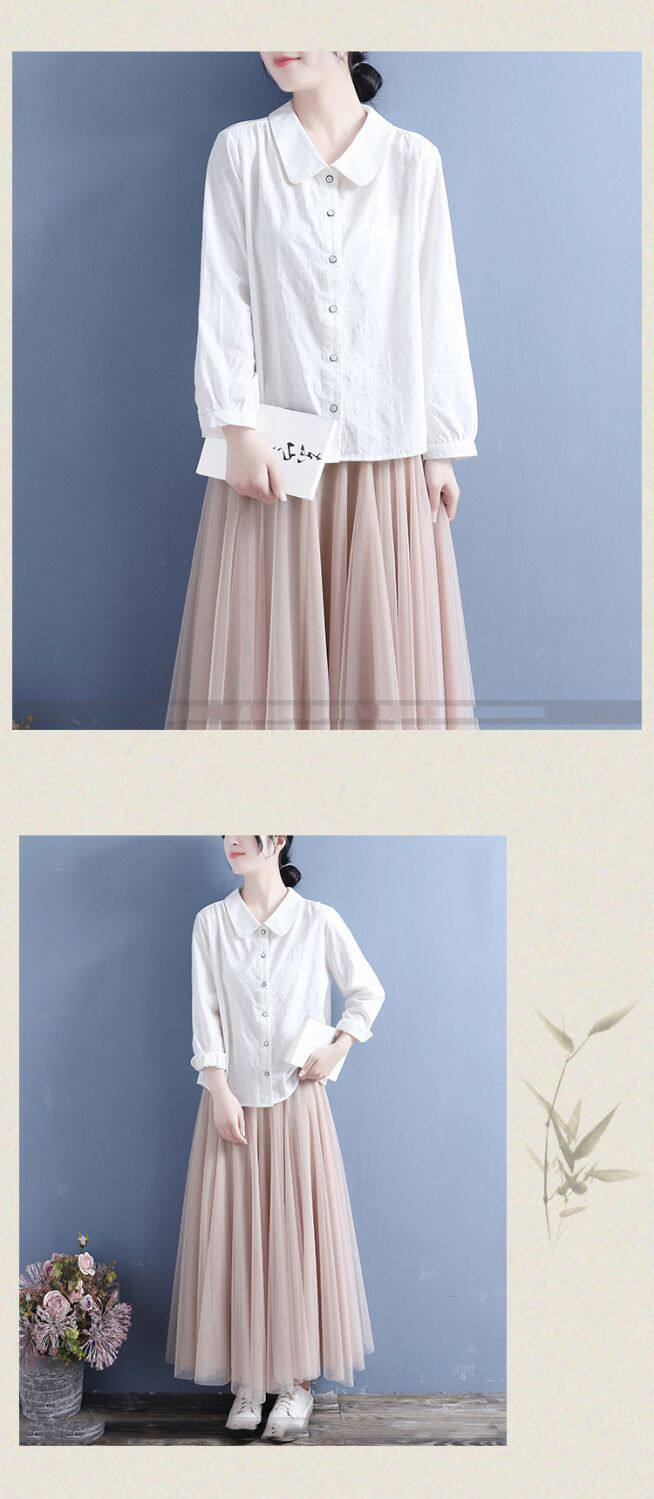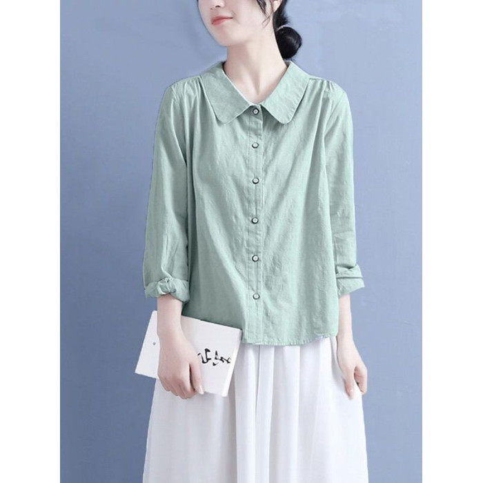 棉麻襯衫女2025春秋裝新款文藝復古風娃娃領休閒寬鬆大碼長袖上衣