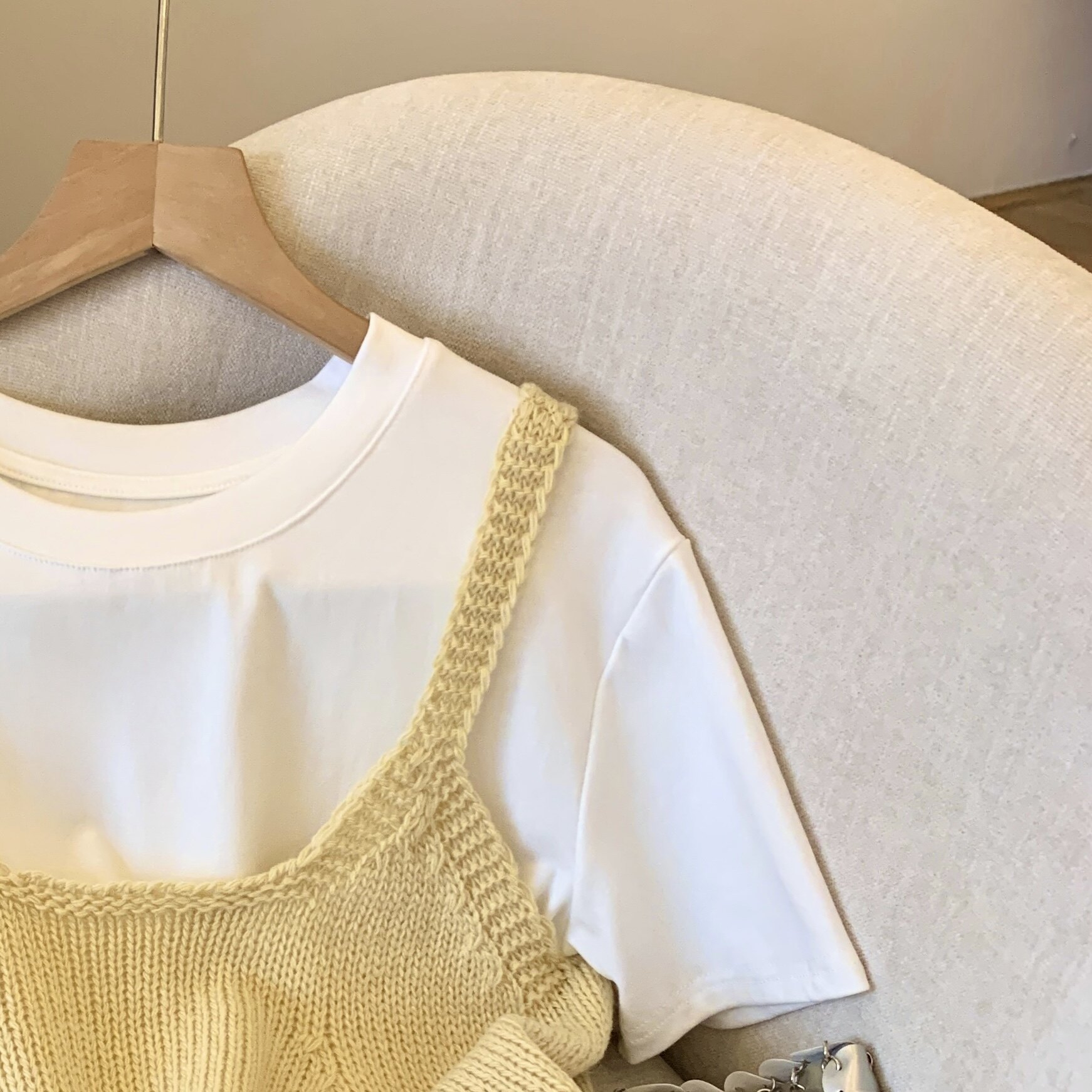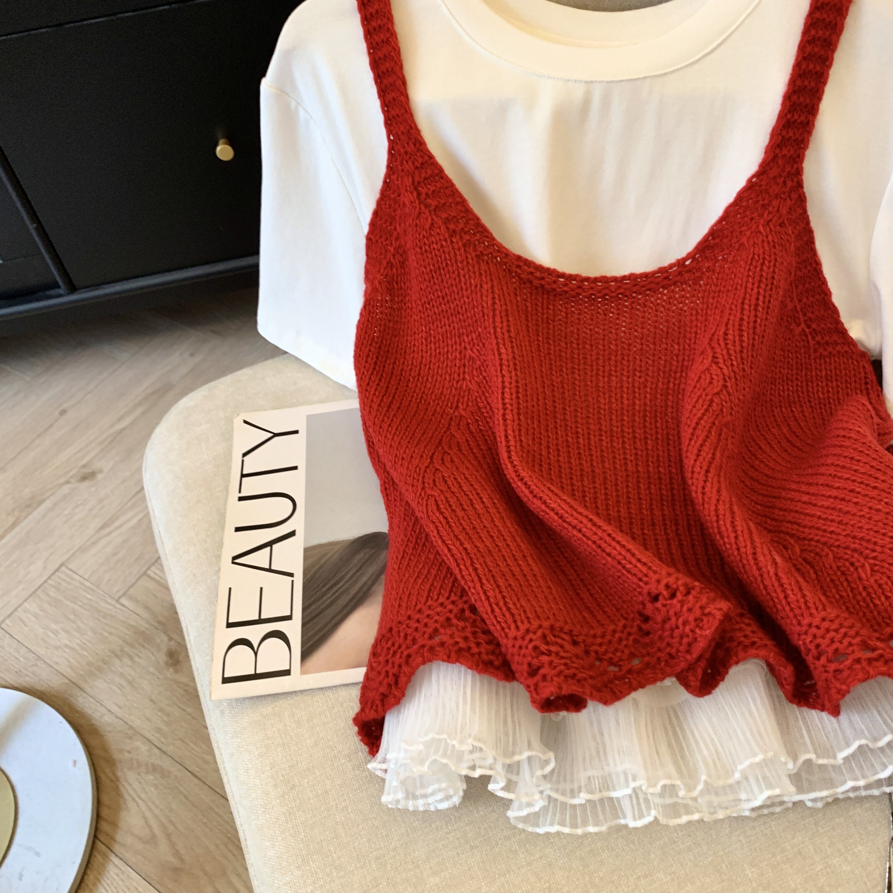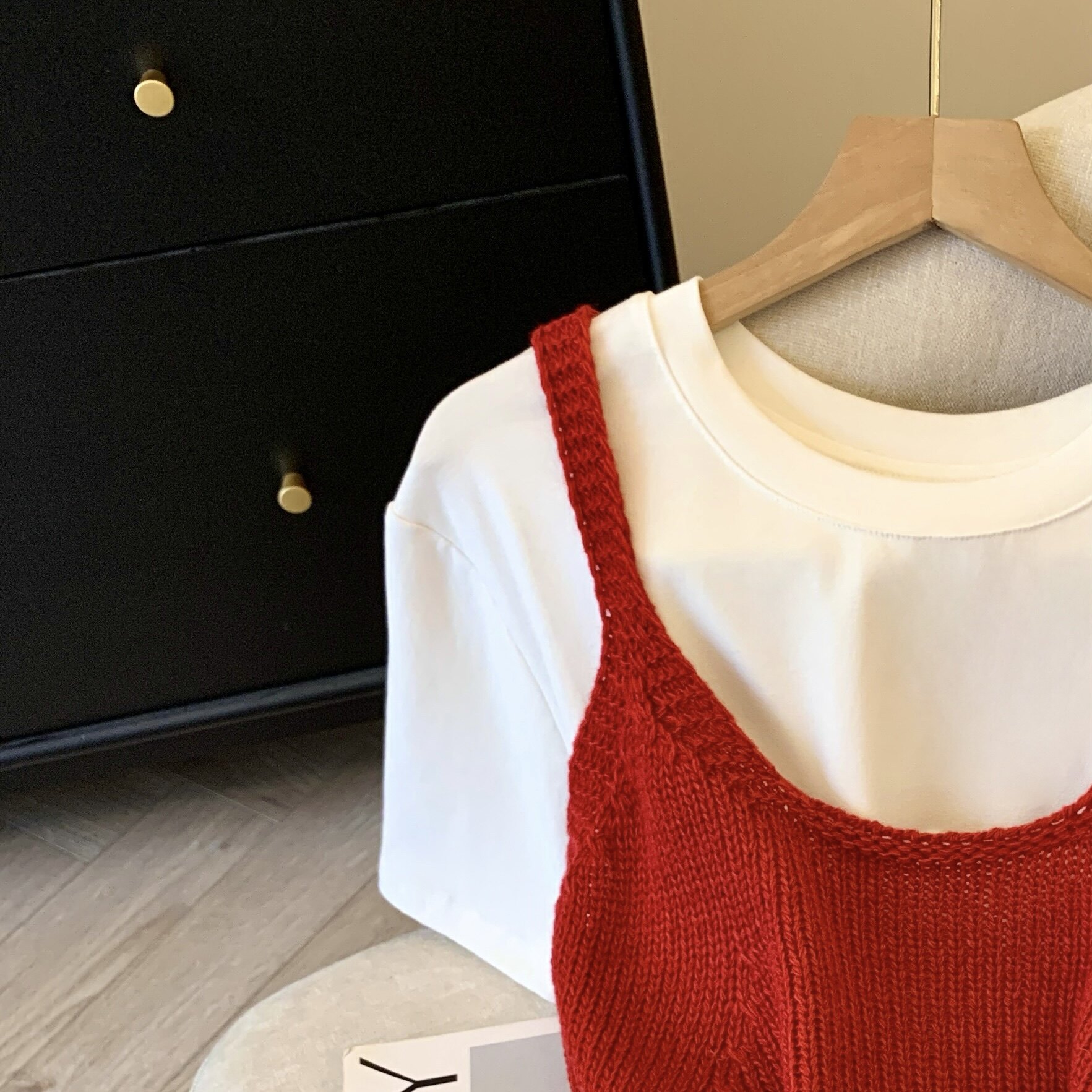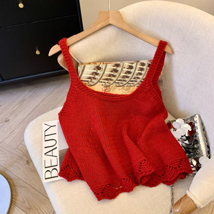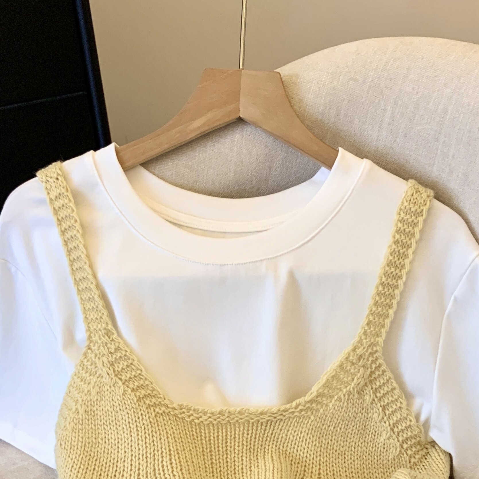 專櫃撤廻剪標韓系圓領針織曡穿吊帶背心女夏季新款甜美風顯瘦上衣