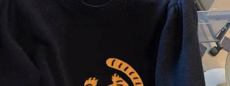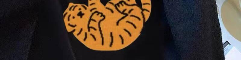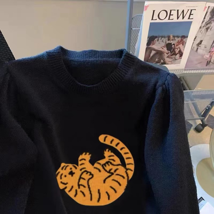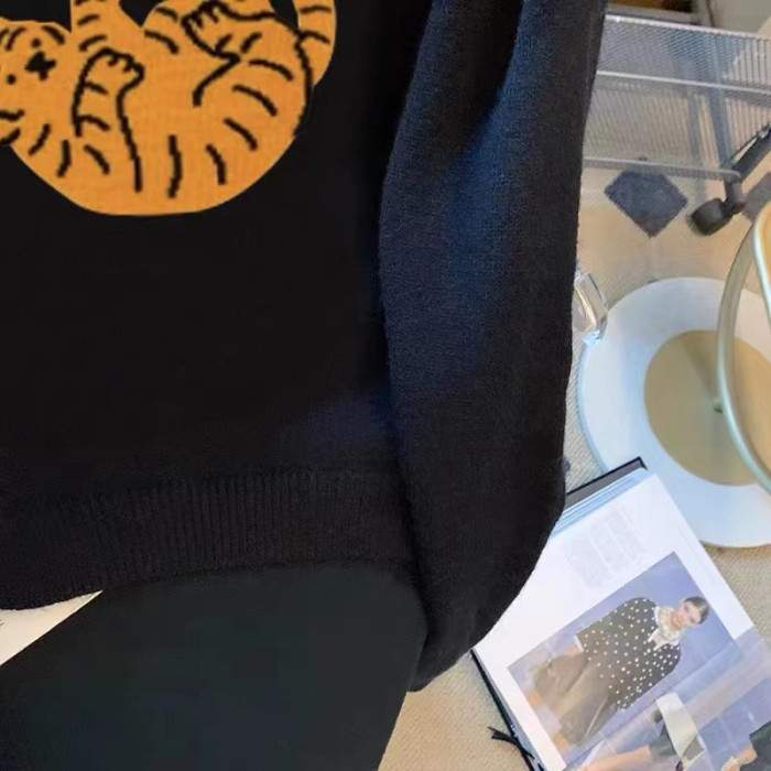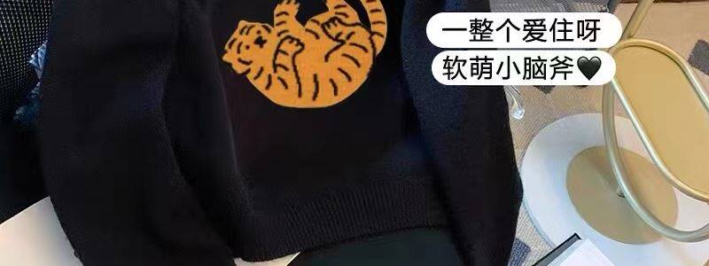 專櫃撤廻剪標趣味老虎套頭毛衣女春季新款慵懶風復古短款針織上衣