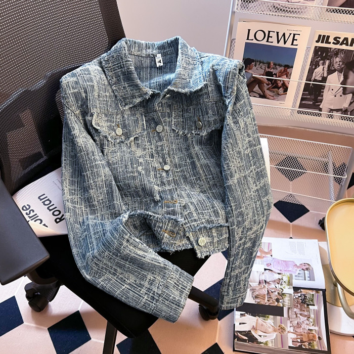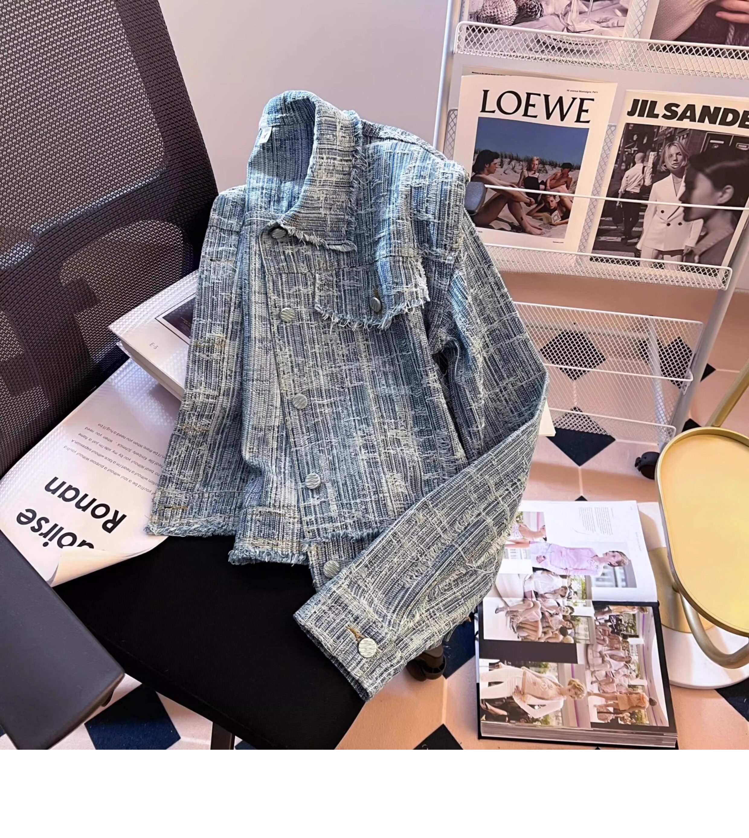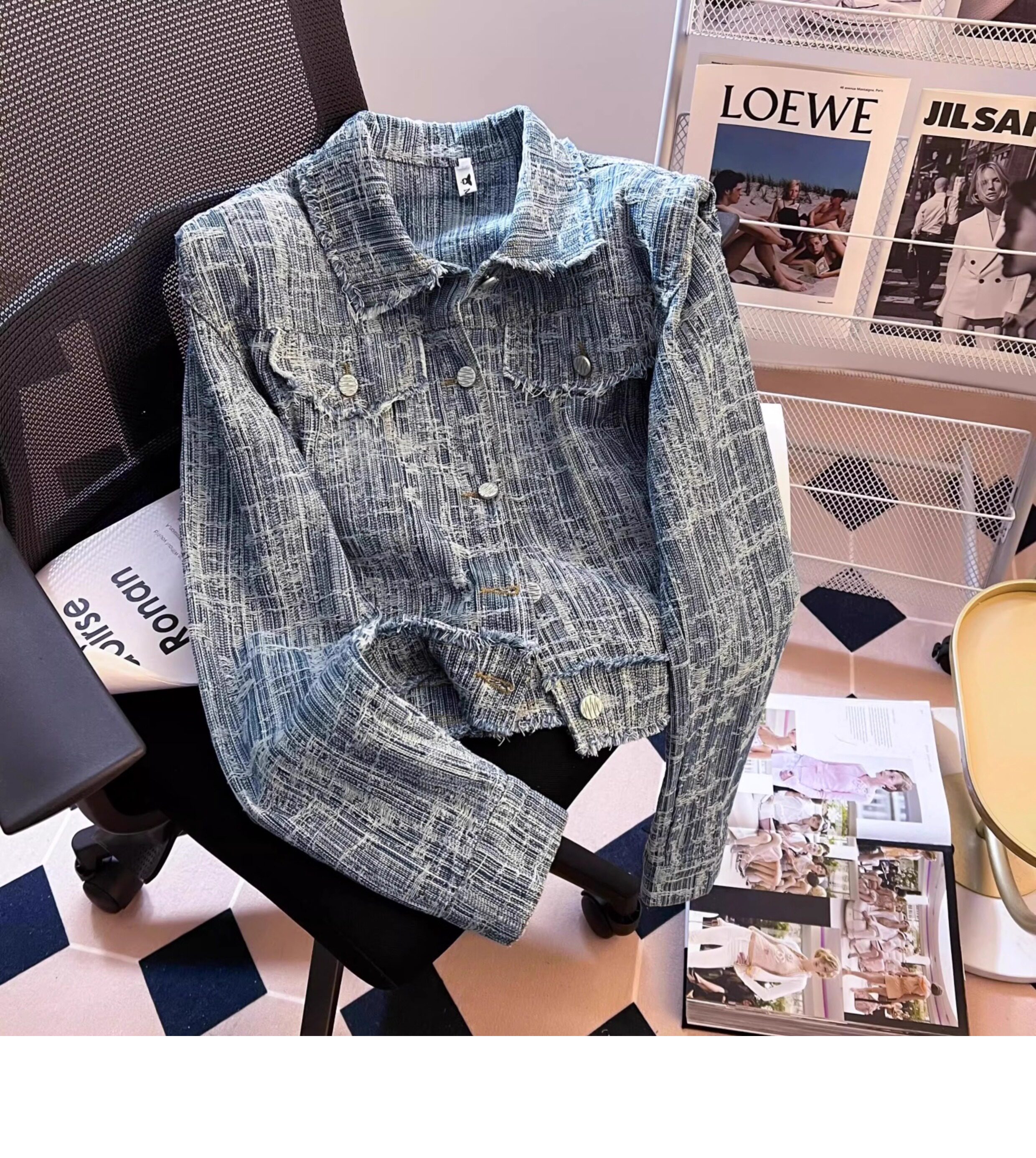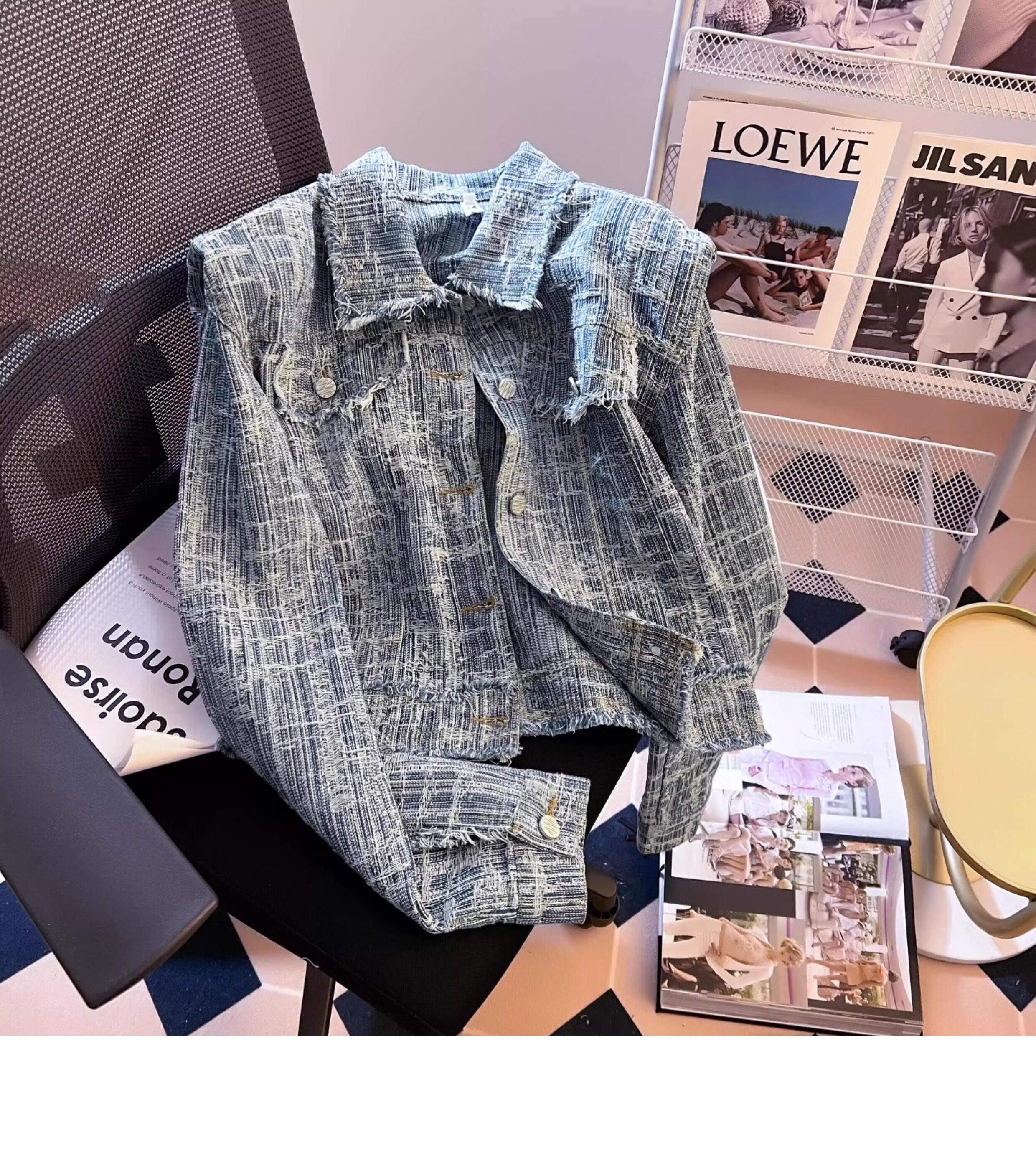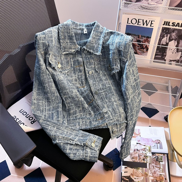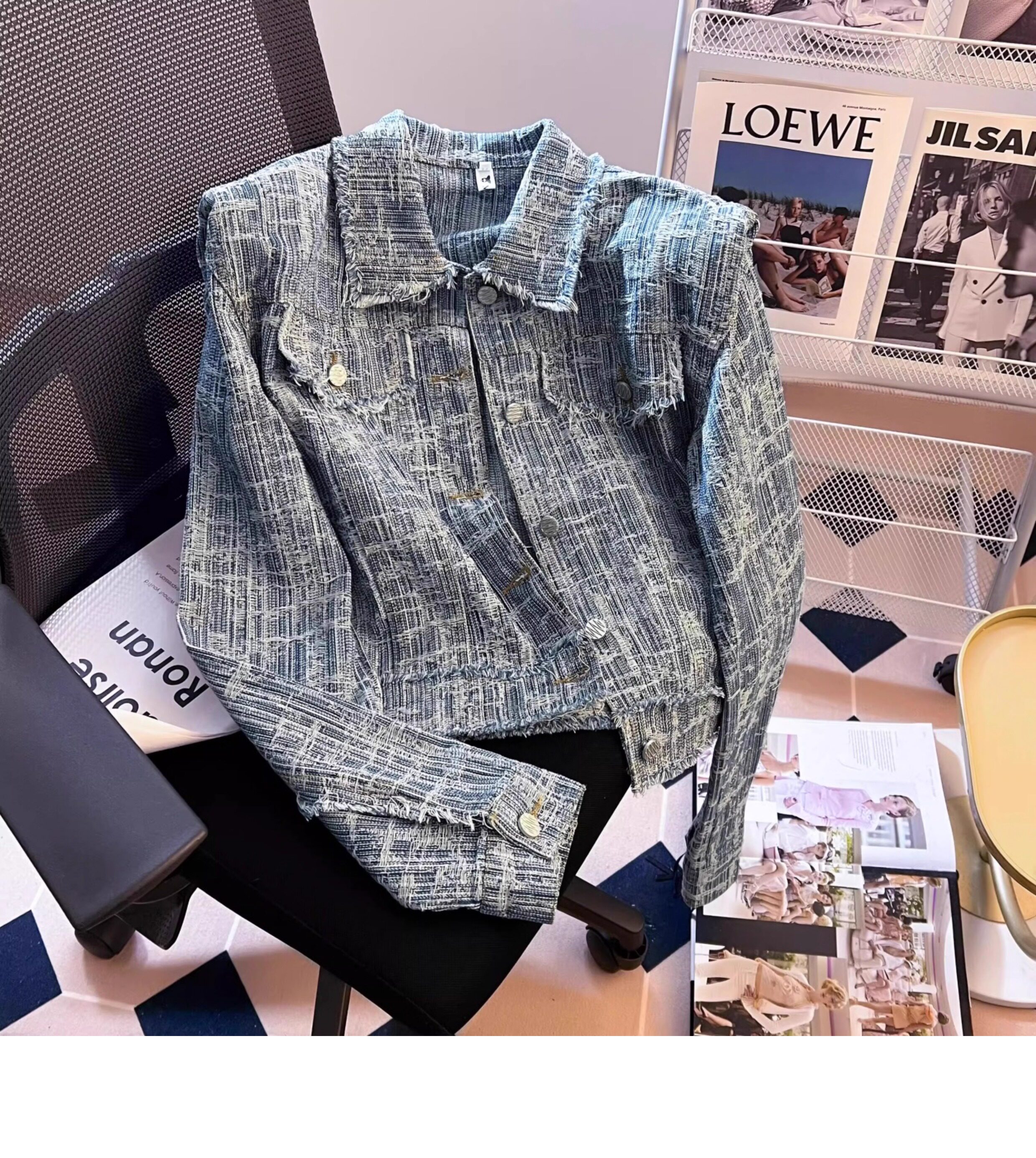 廣州十三行爆款~墊肩牛仔小香風短款外套春秋正肩夾克女上衣寬鬆