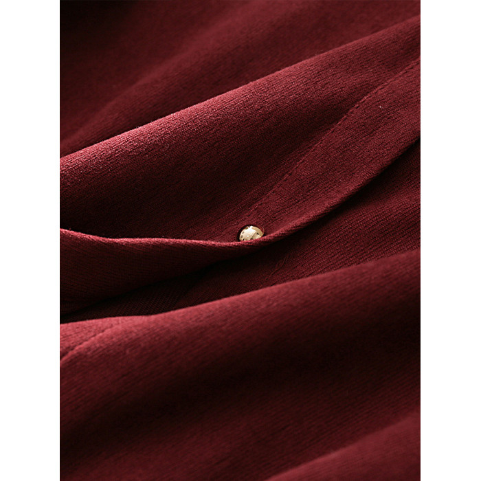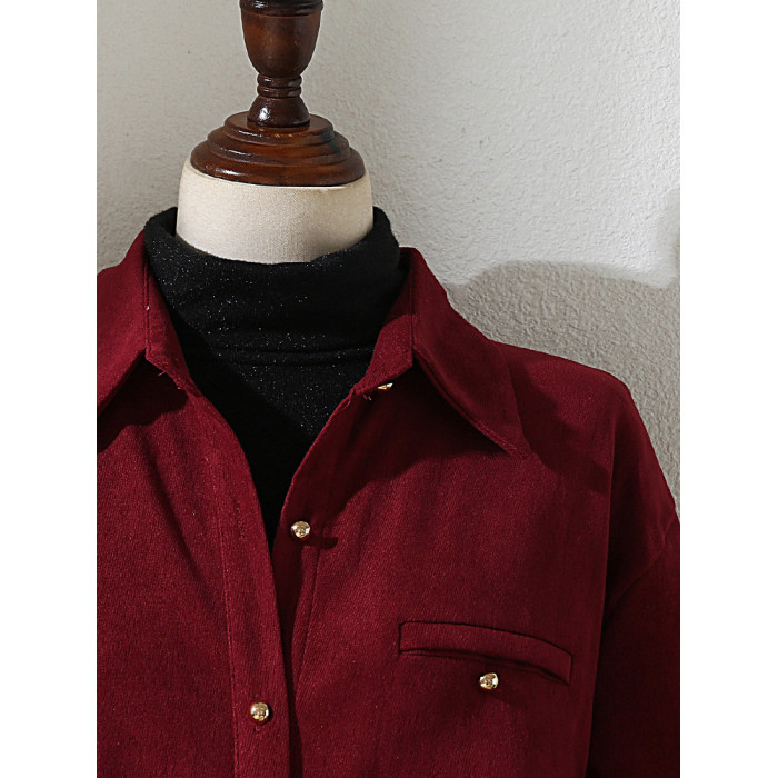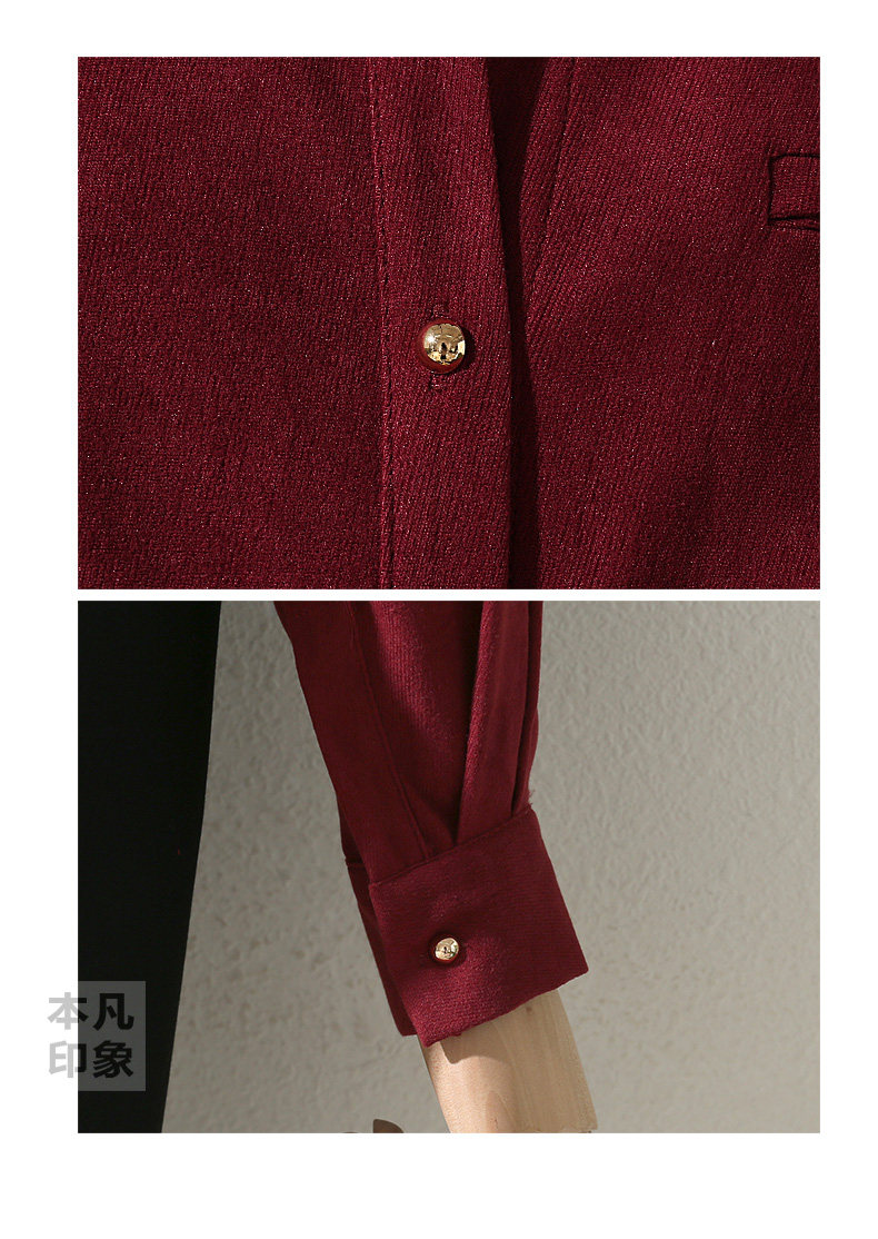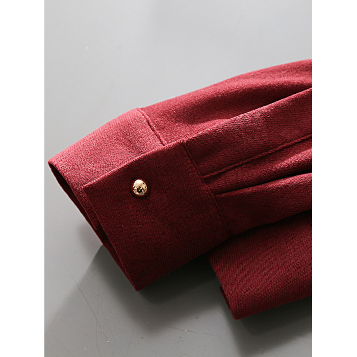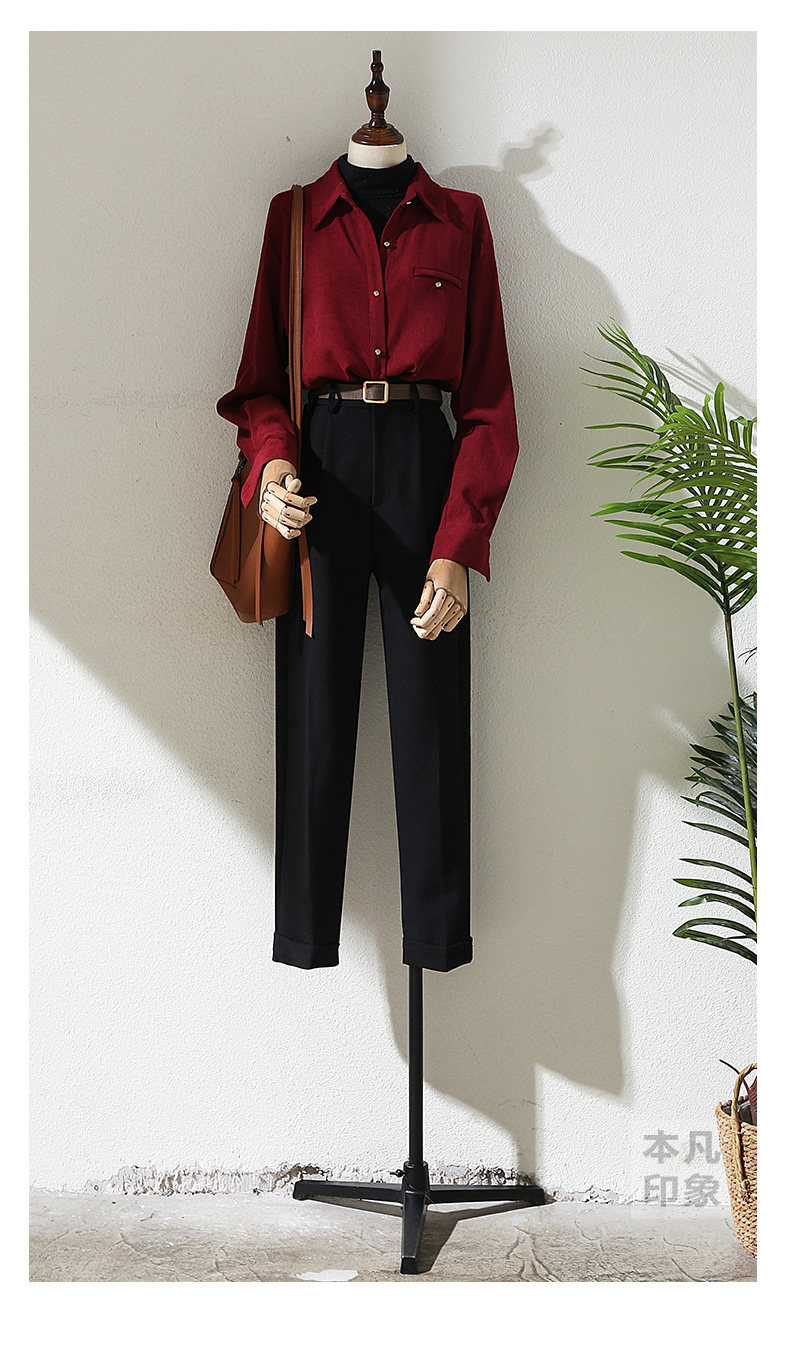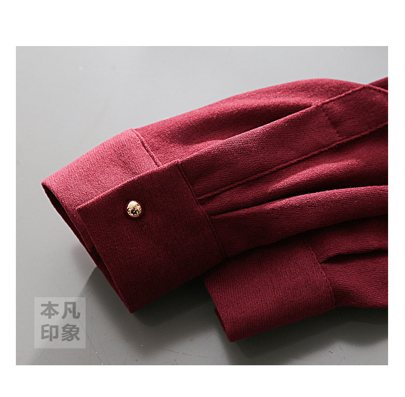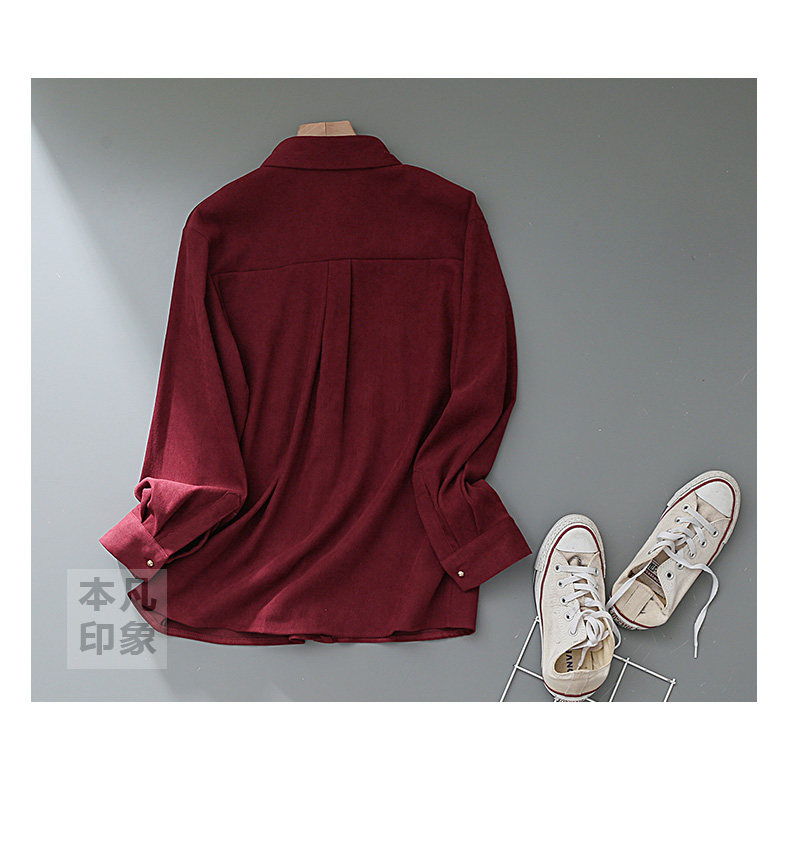 法式復古酒紅色長袖襯衫女裝2024秋冬新款曡穿Polo領內搭打底襯衣
