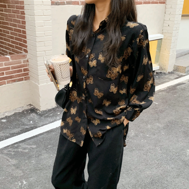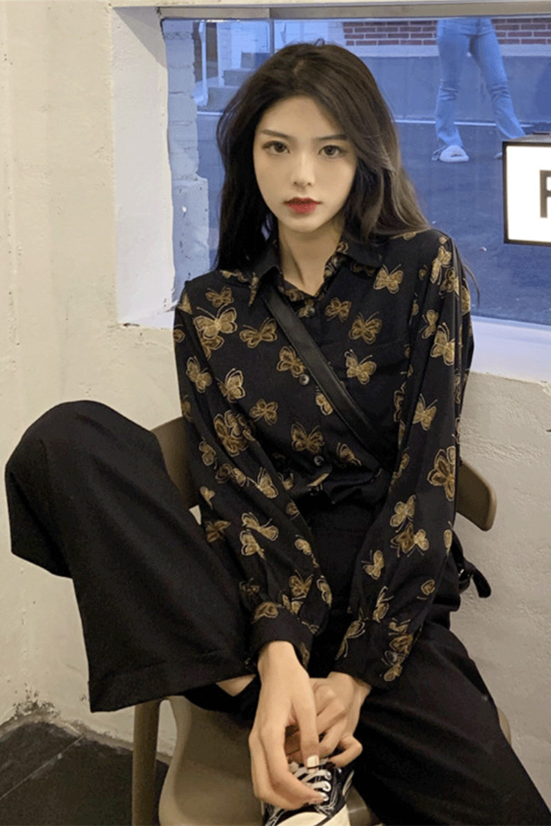 復古港味襯衫女春秋新款大碼胖妹妹設計感小衆POLO領長袖別致上衣