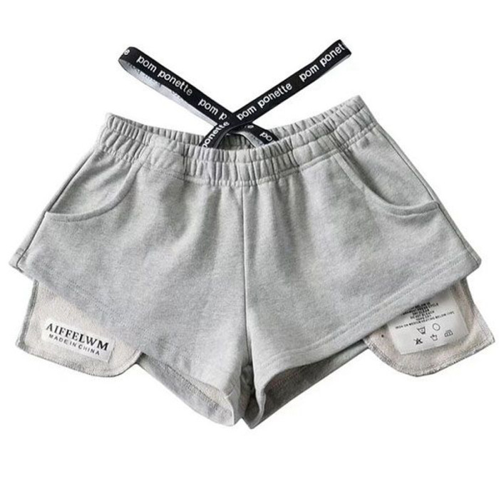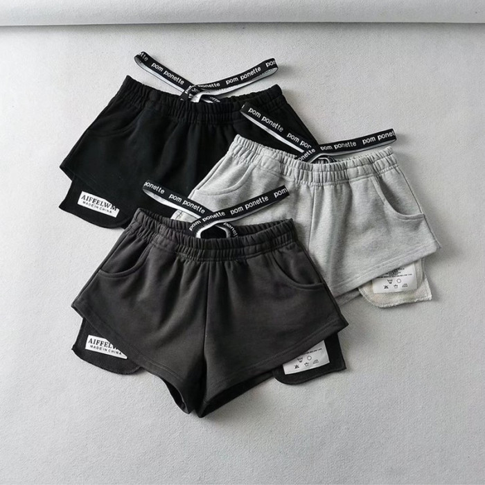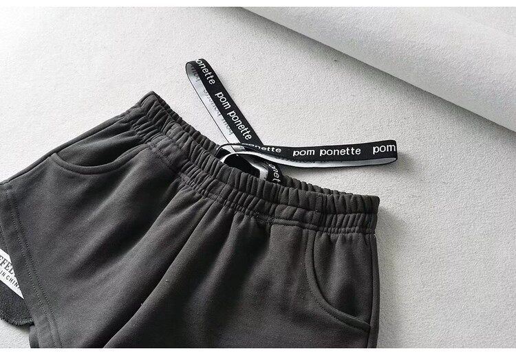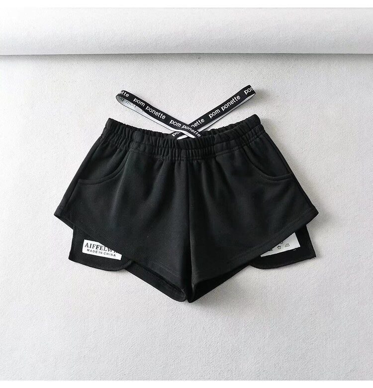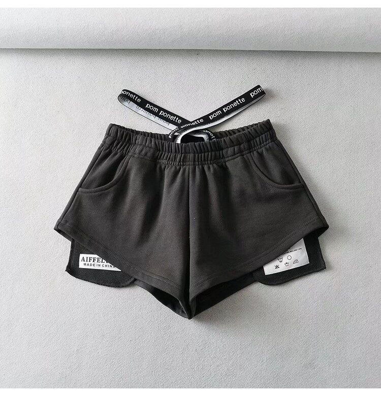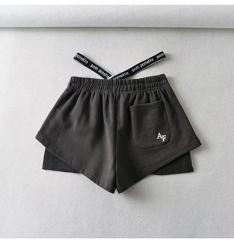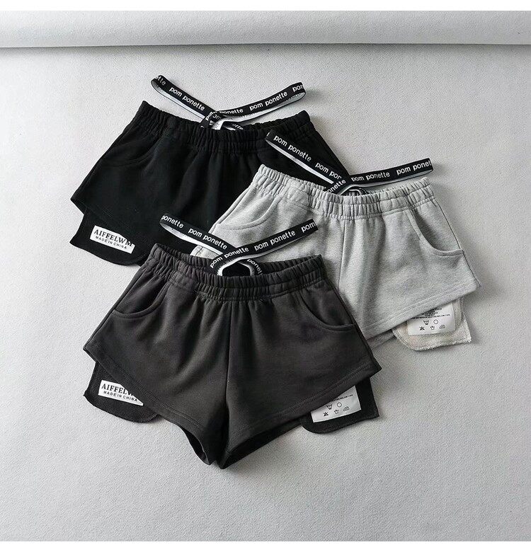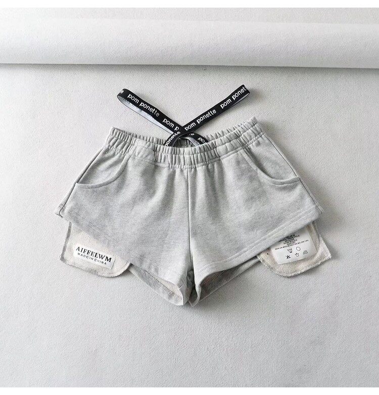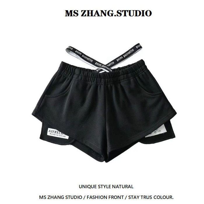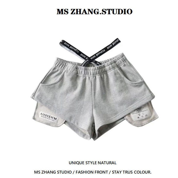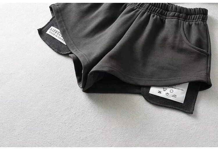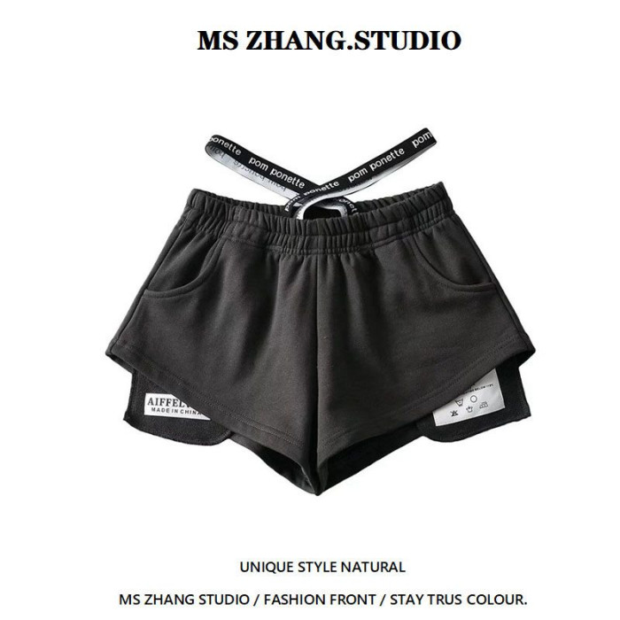 小個子設計感高腰短褲(口袋刺綉) 夏季辣妹風寬鬆濶腿熱褲