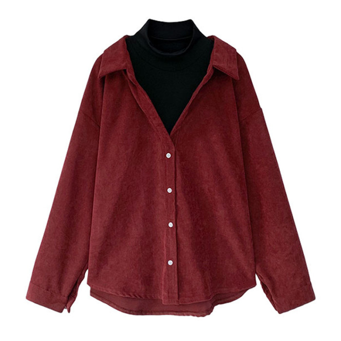 大碼胖mm假兩件襯衫女秋裝新款設計感小衆上衣拼接高領長袖打底衫