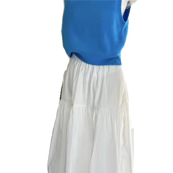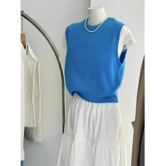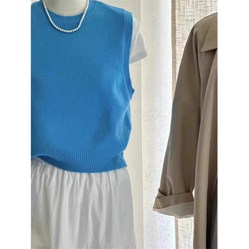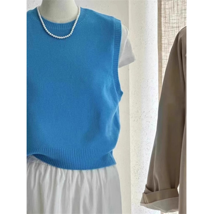 廣州十三行高級歐貨藍色圓領針織背心女秋冬無袖曡穿外搭毛衣馬甲