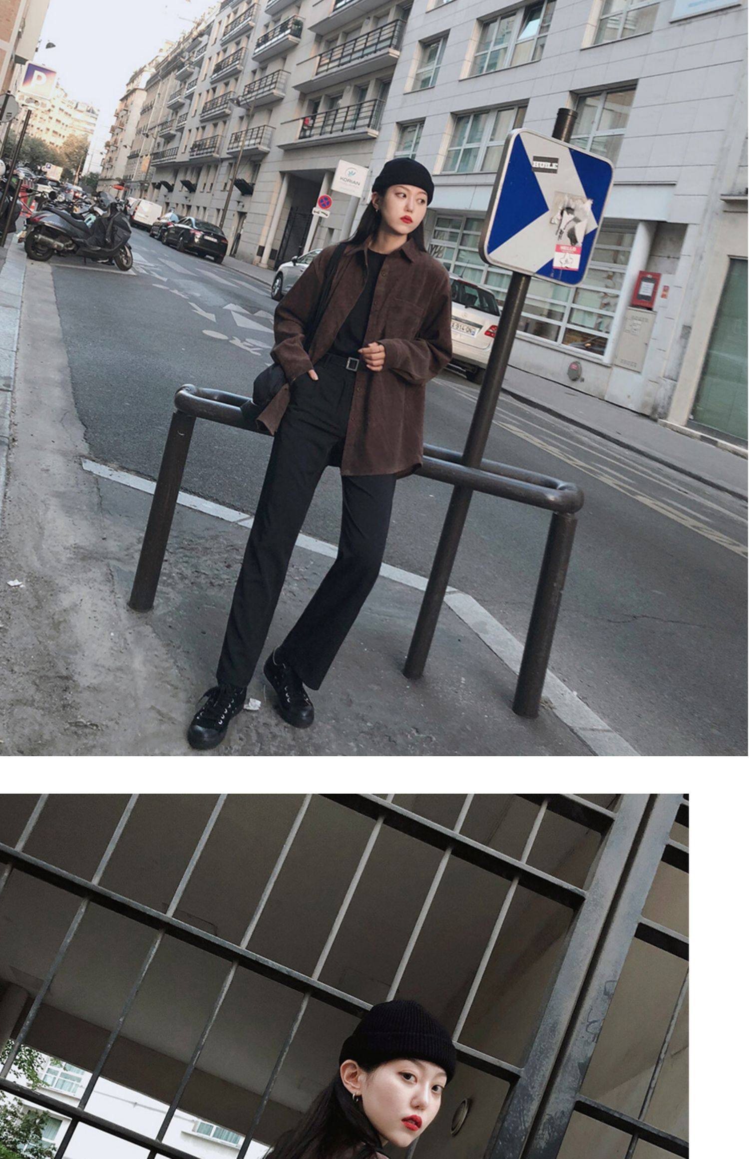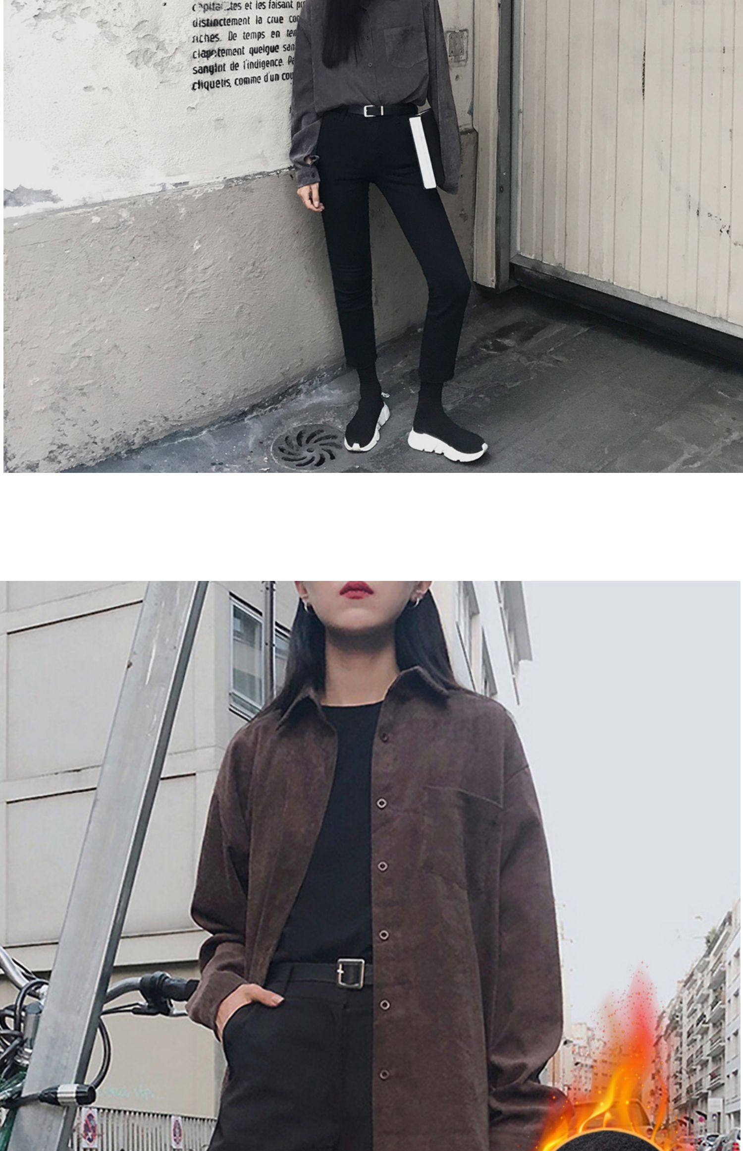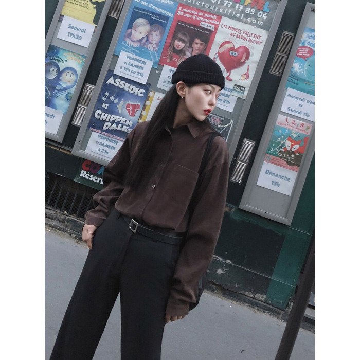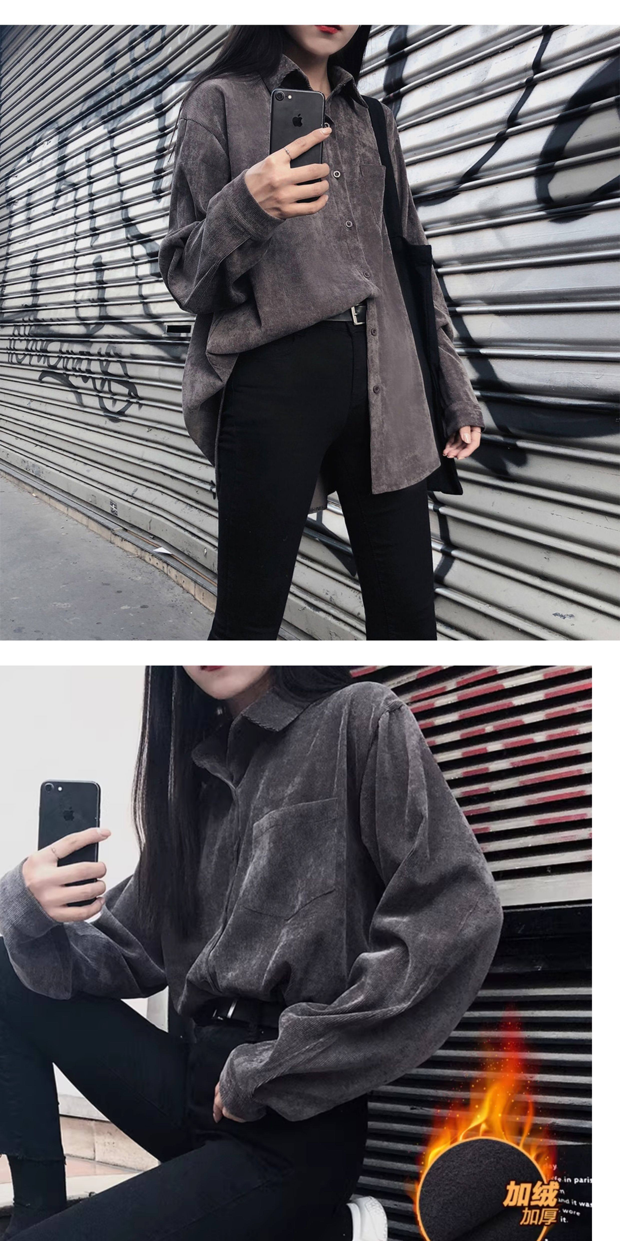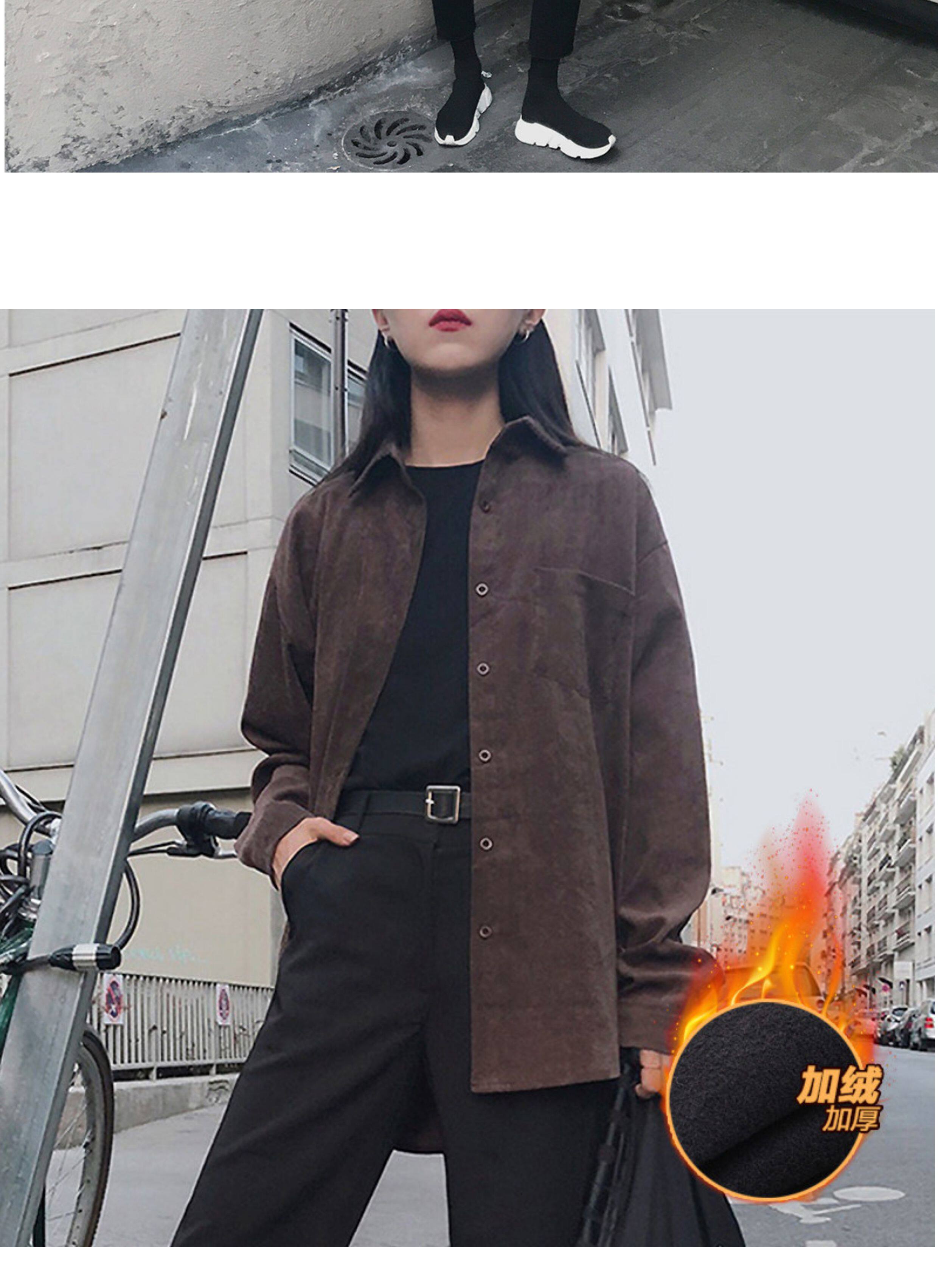 秋冬設計感襯衫女長袖復古港味打底加絨上衣曡穿襯衣燈芯絨外套厚