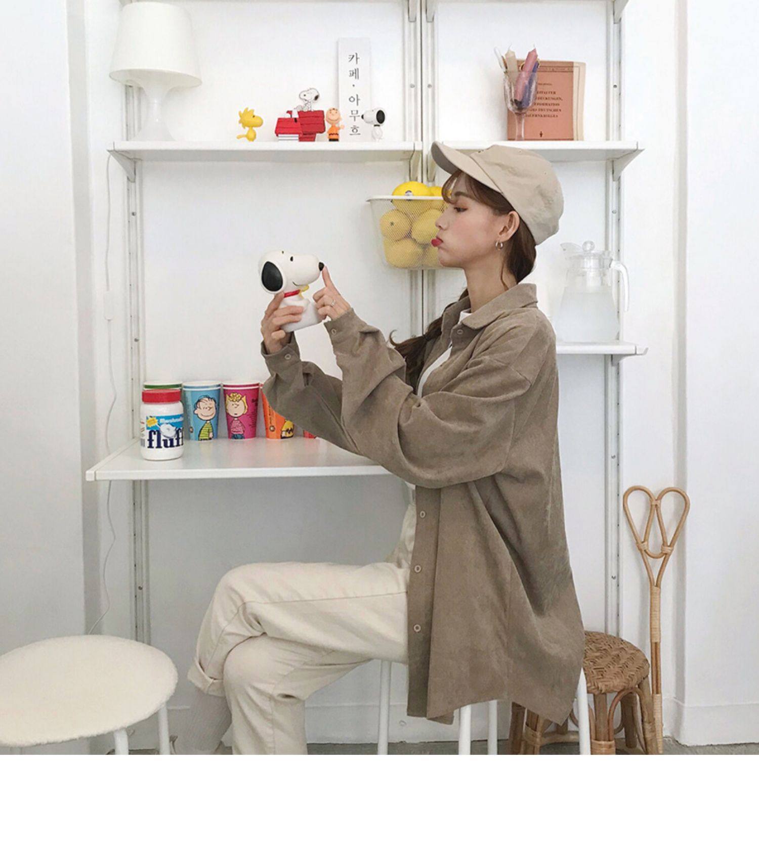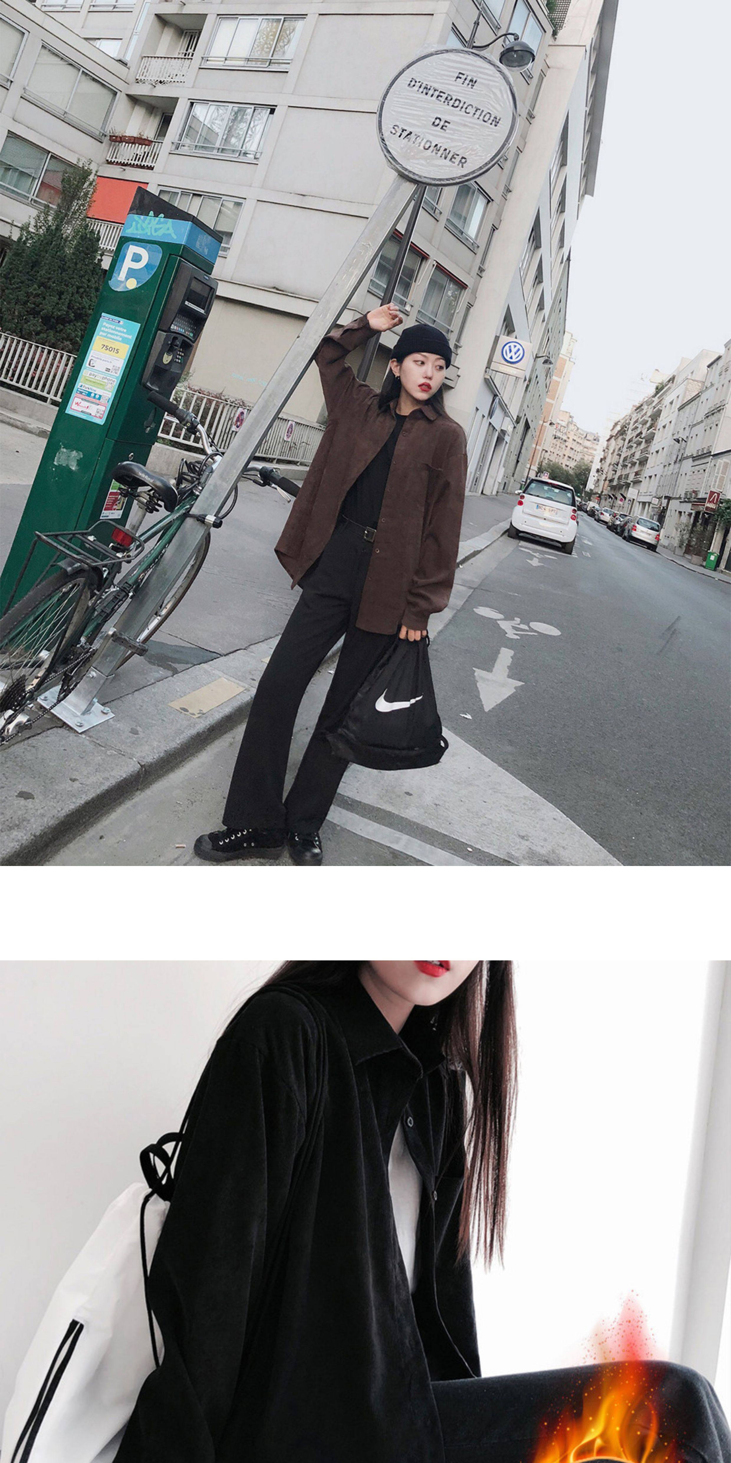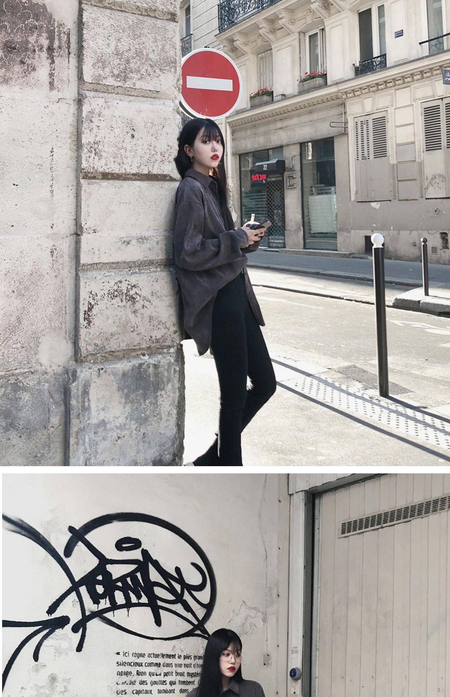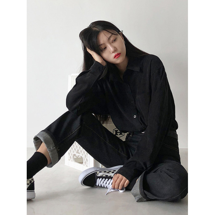 秋冬設計感襯衫女長袖復古港味打底加絨上衣曡穿襯衣燈芯絨外套厚