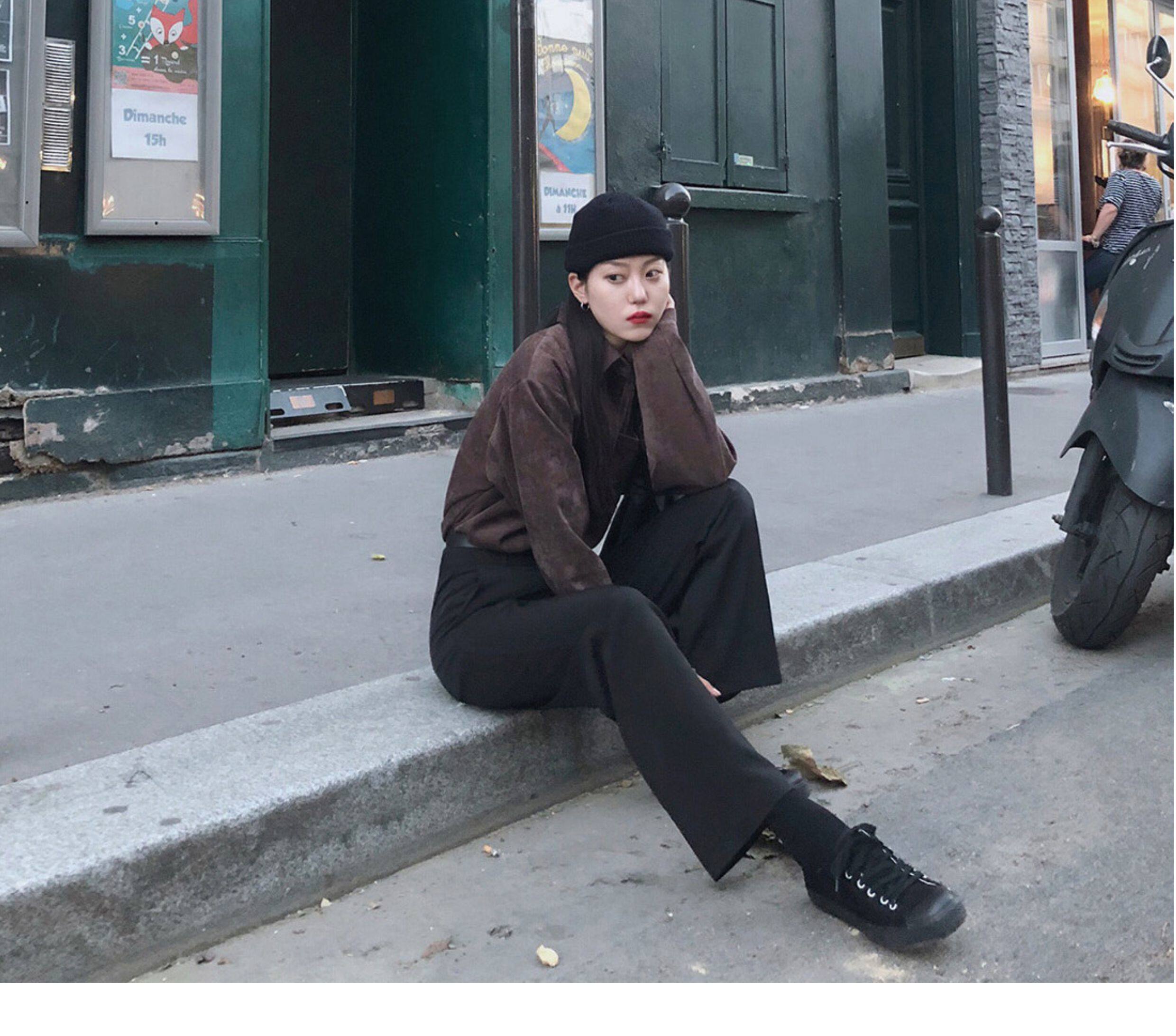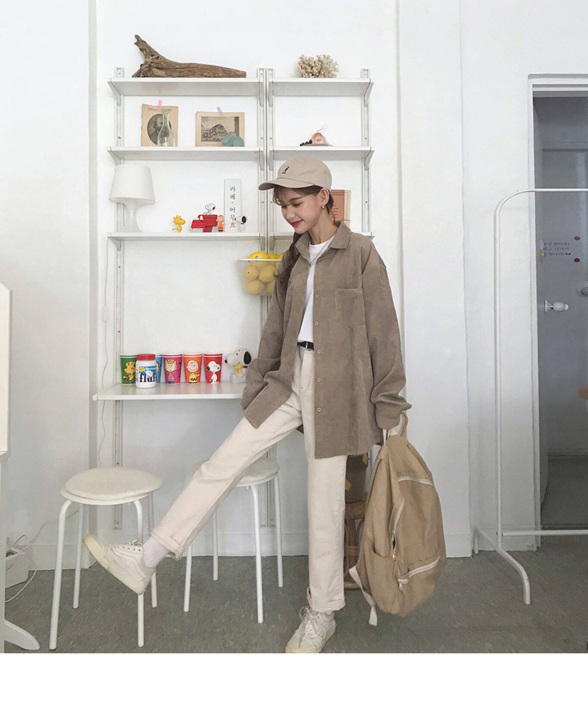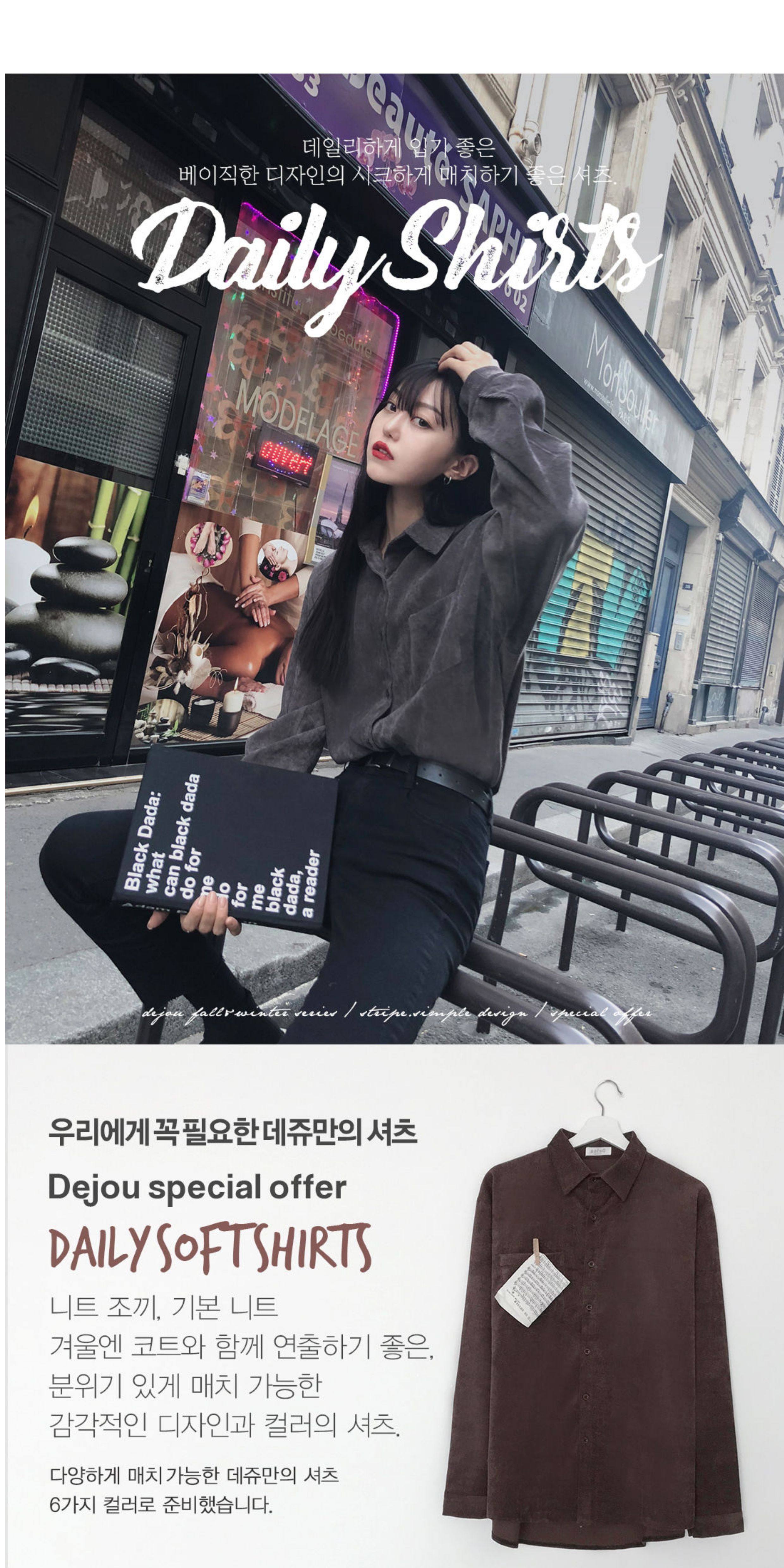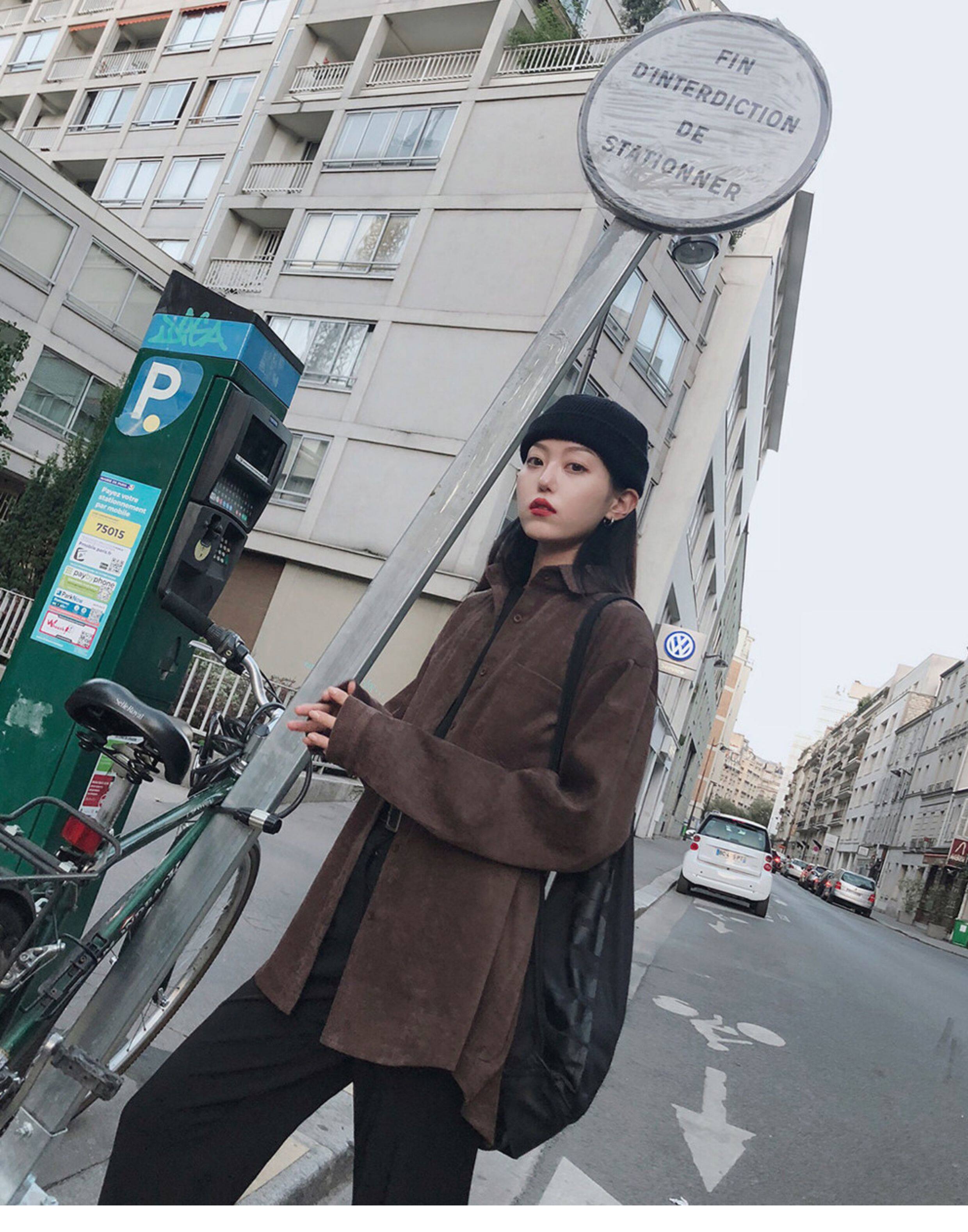 秋冬設計感襯衫女長袖復古港味打底加絨上衣曡穿襯衣燈芯絨外套厚