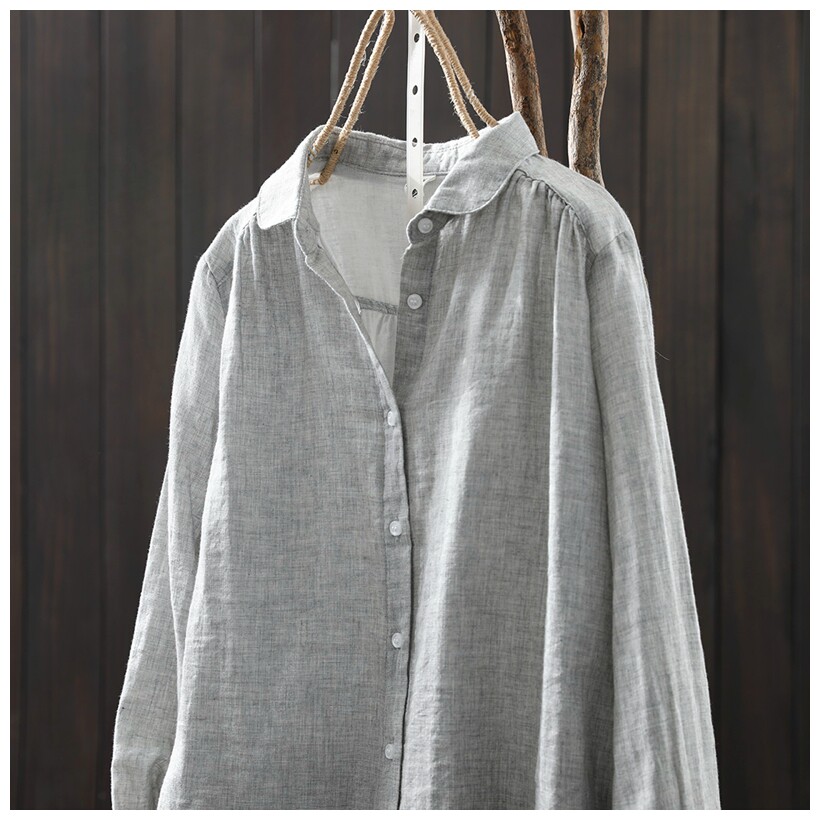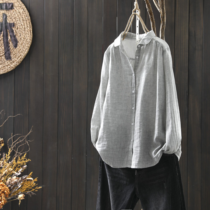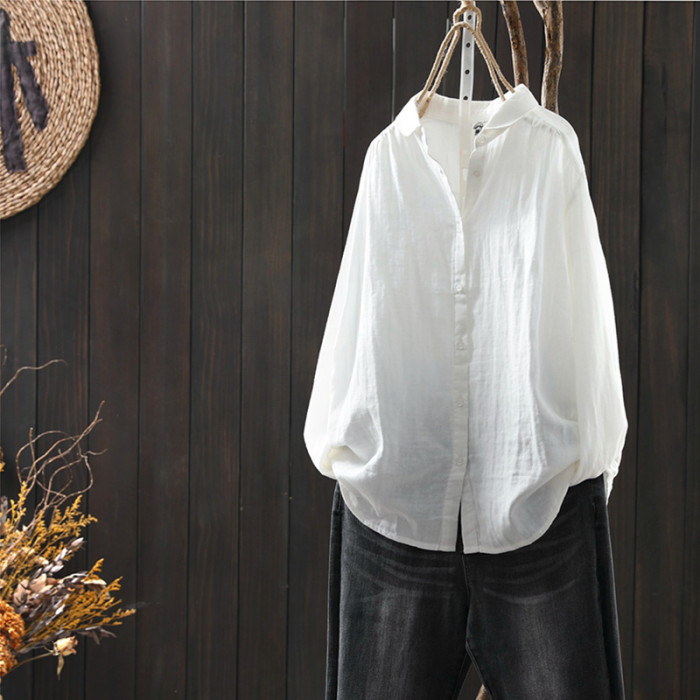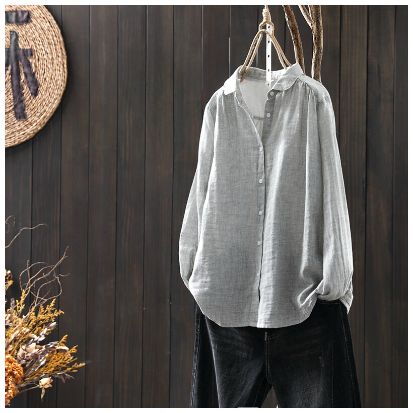 白色雙層棉紗襯衫女寬鬆長袖2026開春新款文藝休閒百搭打底襯衣