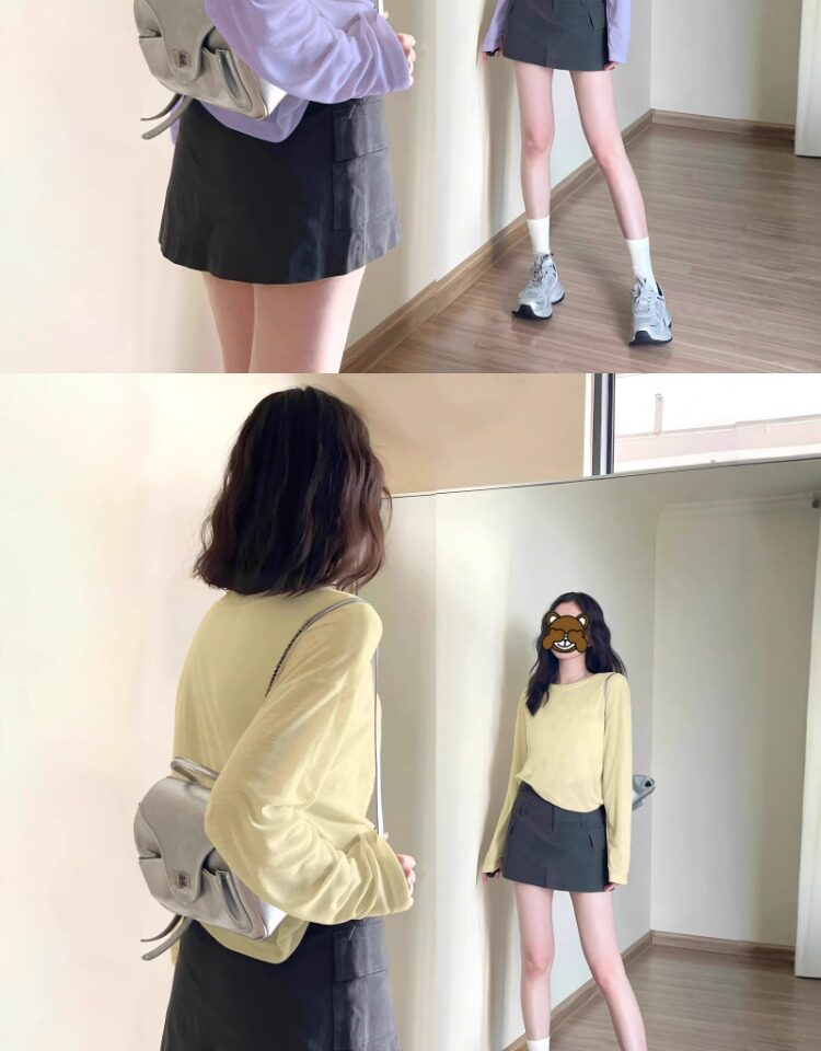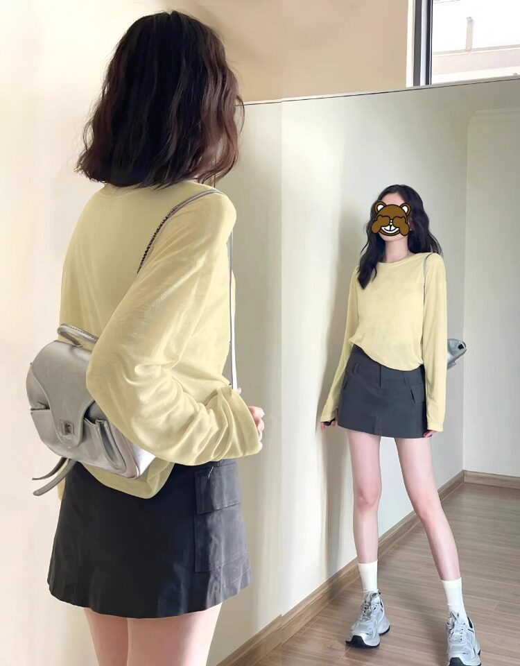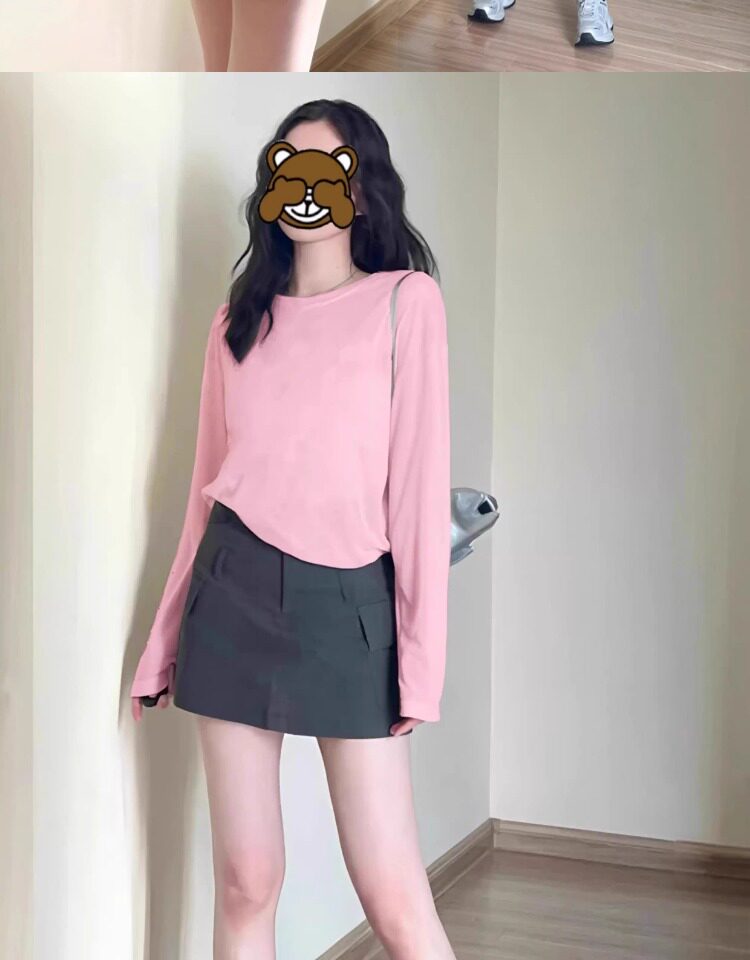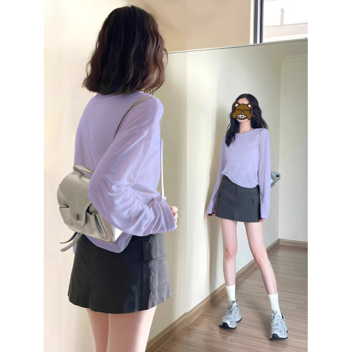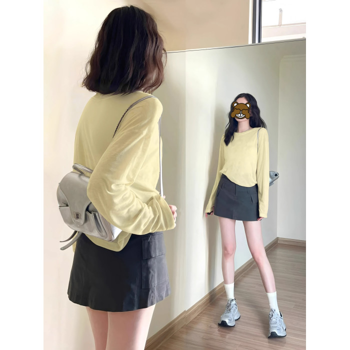 韓系純色簡約長袖t恤防曬罩衫女外搭薄款寬鬆雪花棉松弛感上衣夏