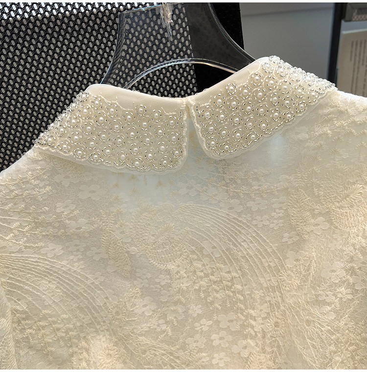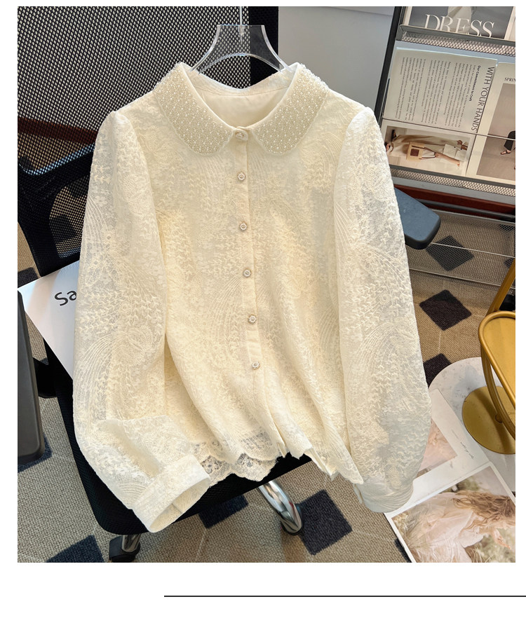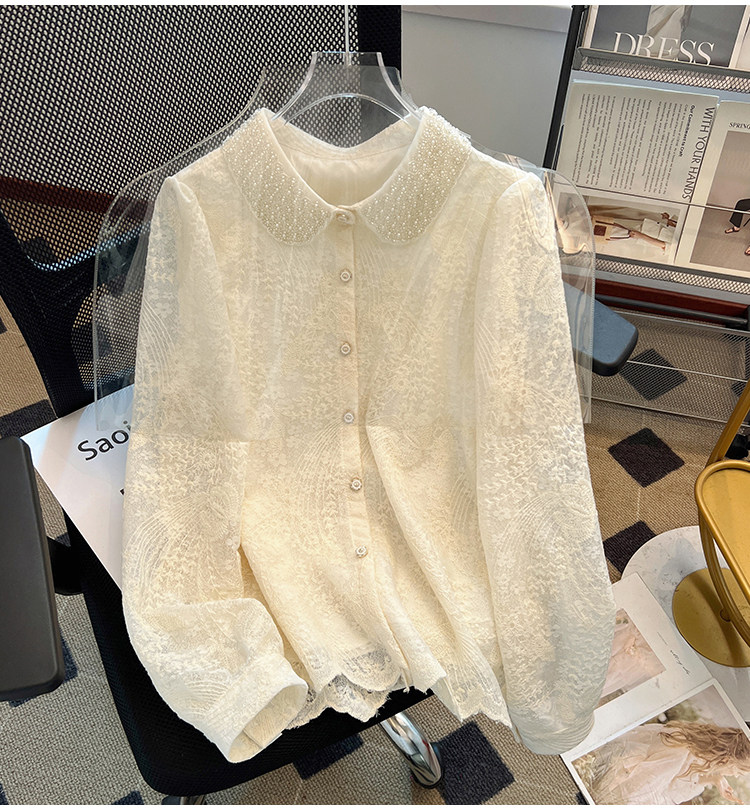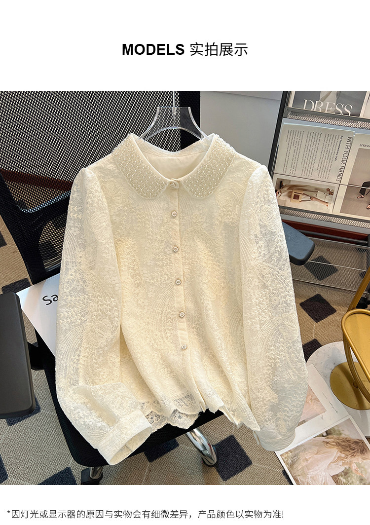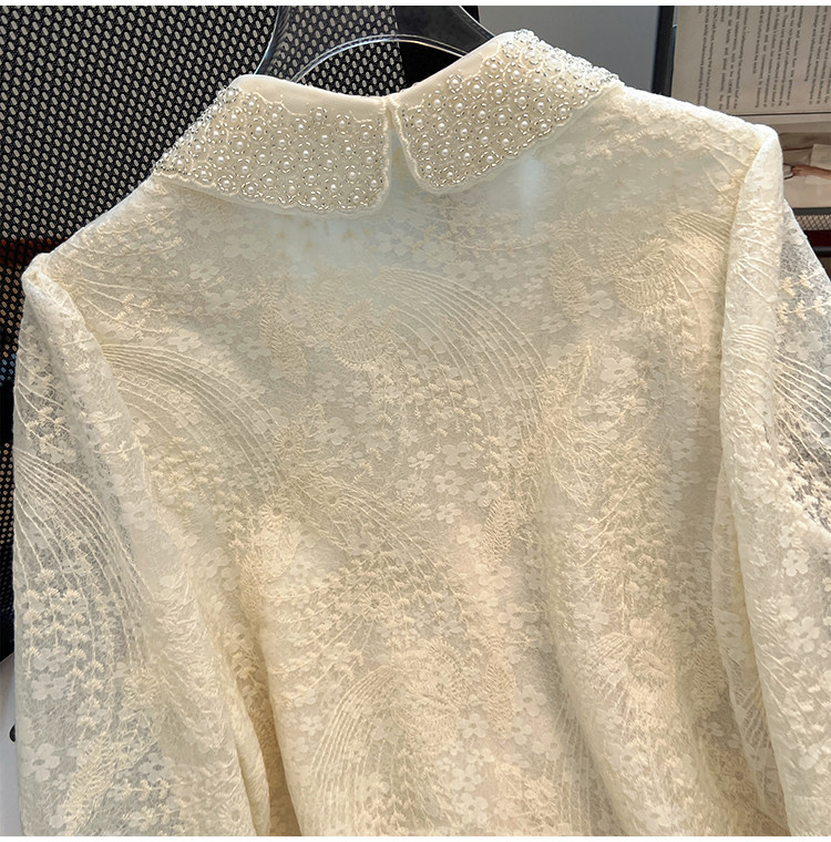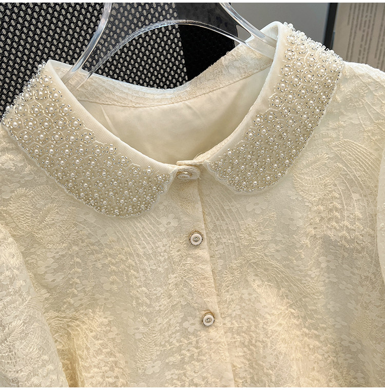 自畱款推薦~重工釘珠娃娃領刺綉蕾絲衫女2025春秋新款小香風上衣