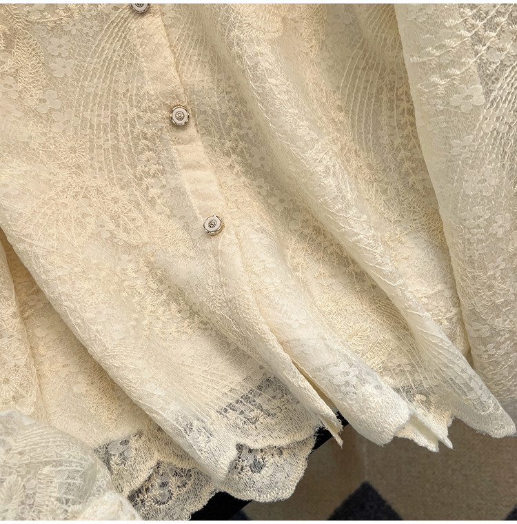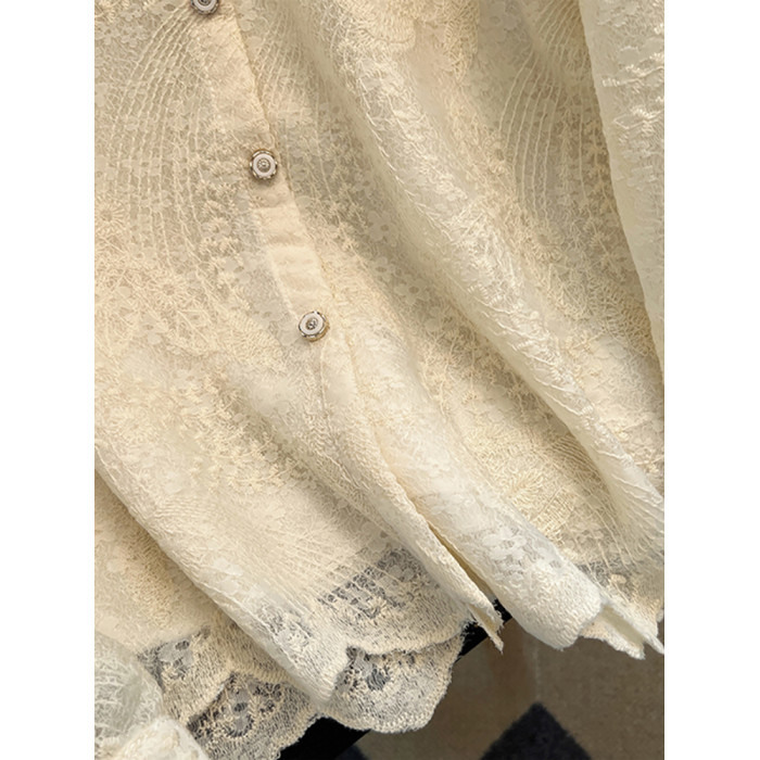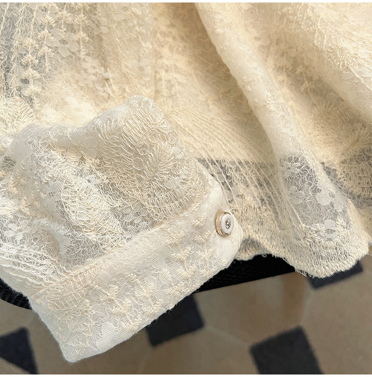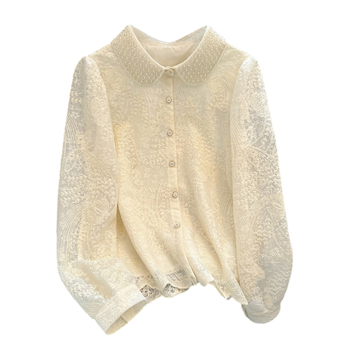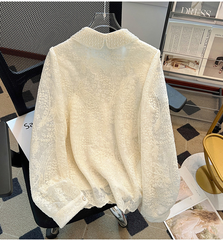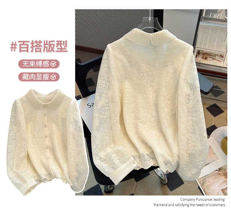 自畱款推薦~重工釘珠娃娃領刺綉蕾絲衫女2025春秋新款小香風上衣