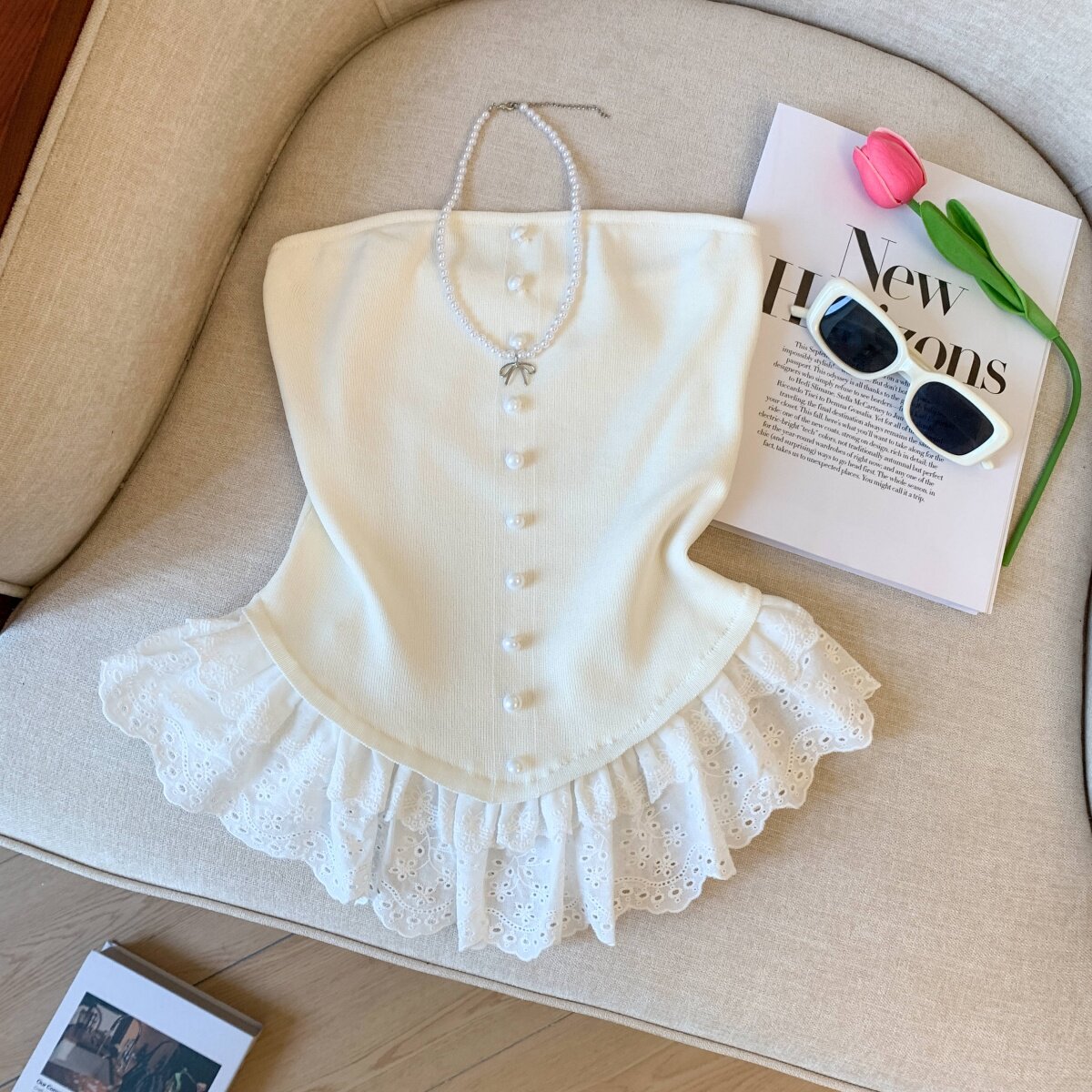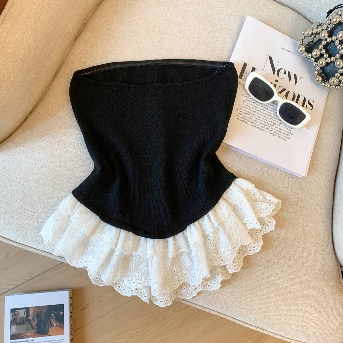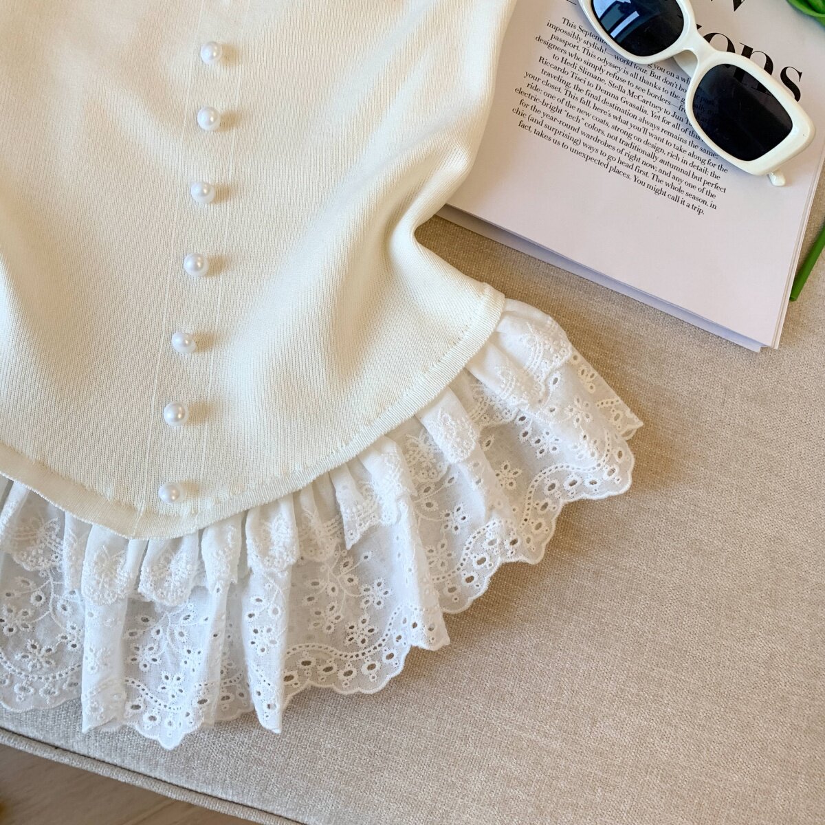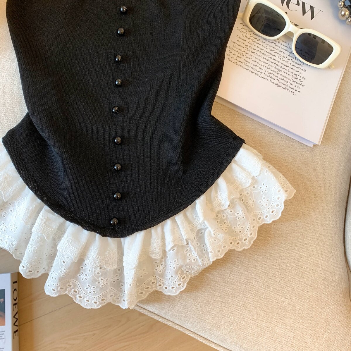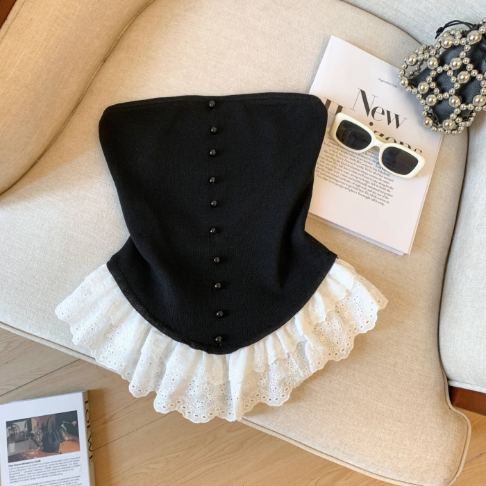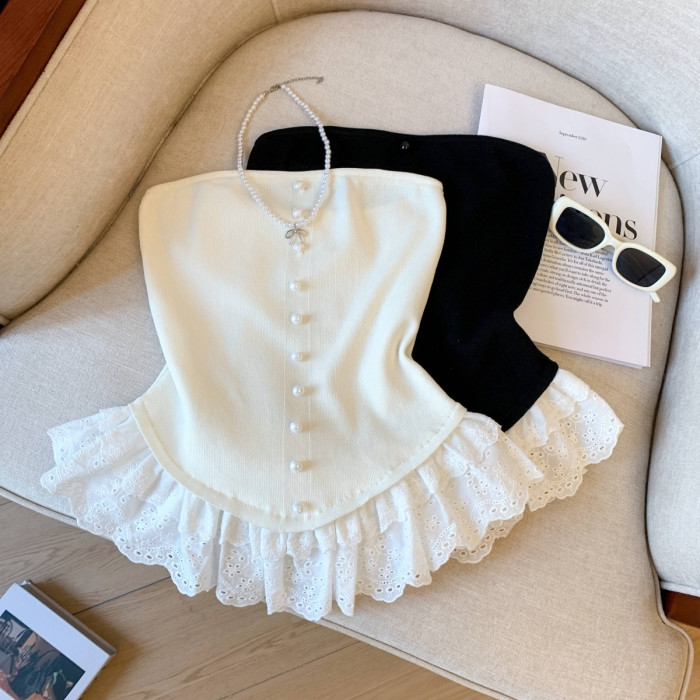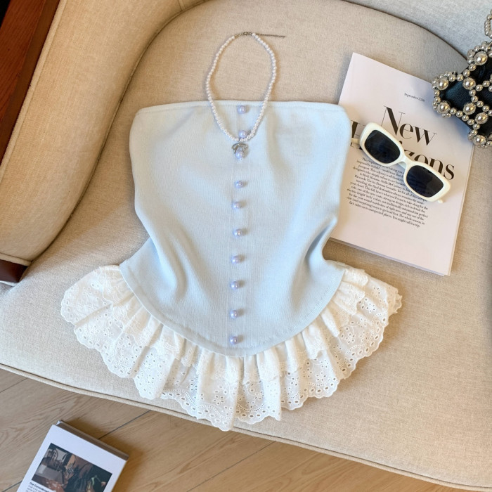 專櫃撤廻剪標芭蕾風花邊下班拼接抹胸背心女夏季新款甜美漂亮上衣