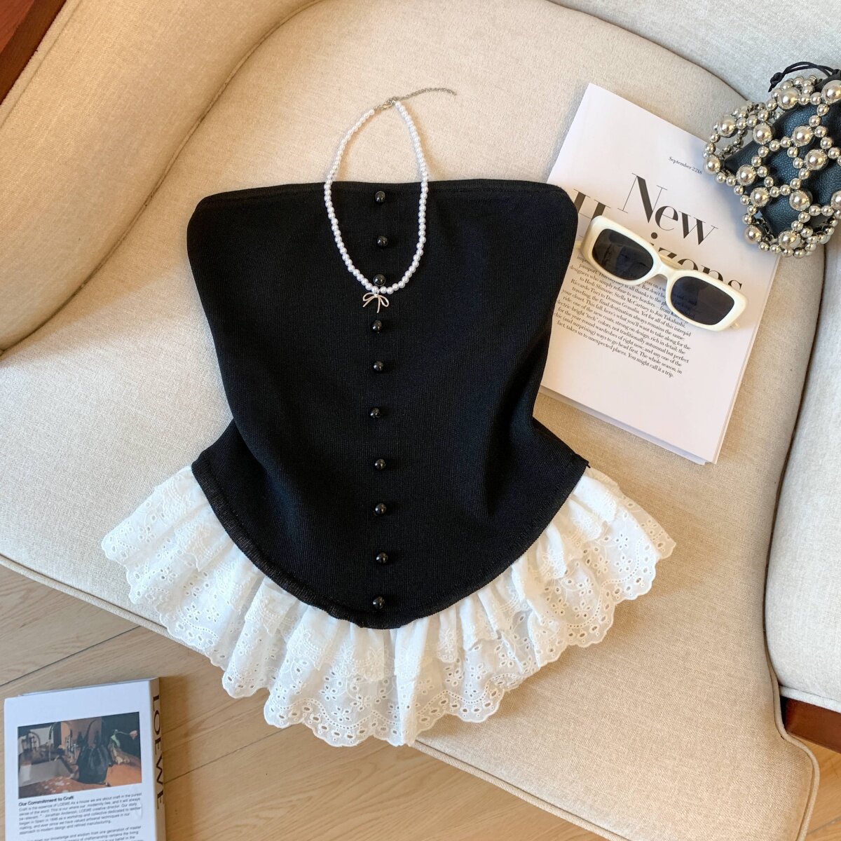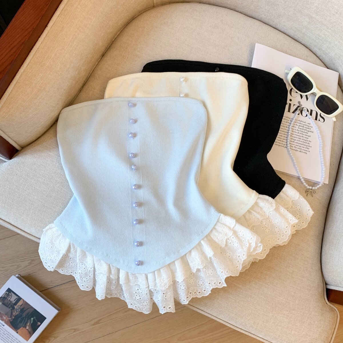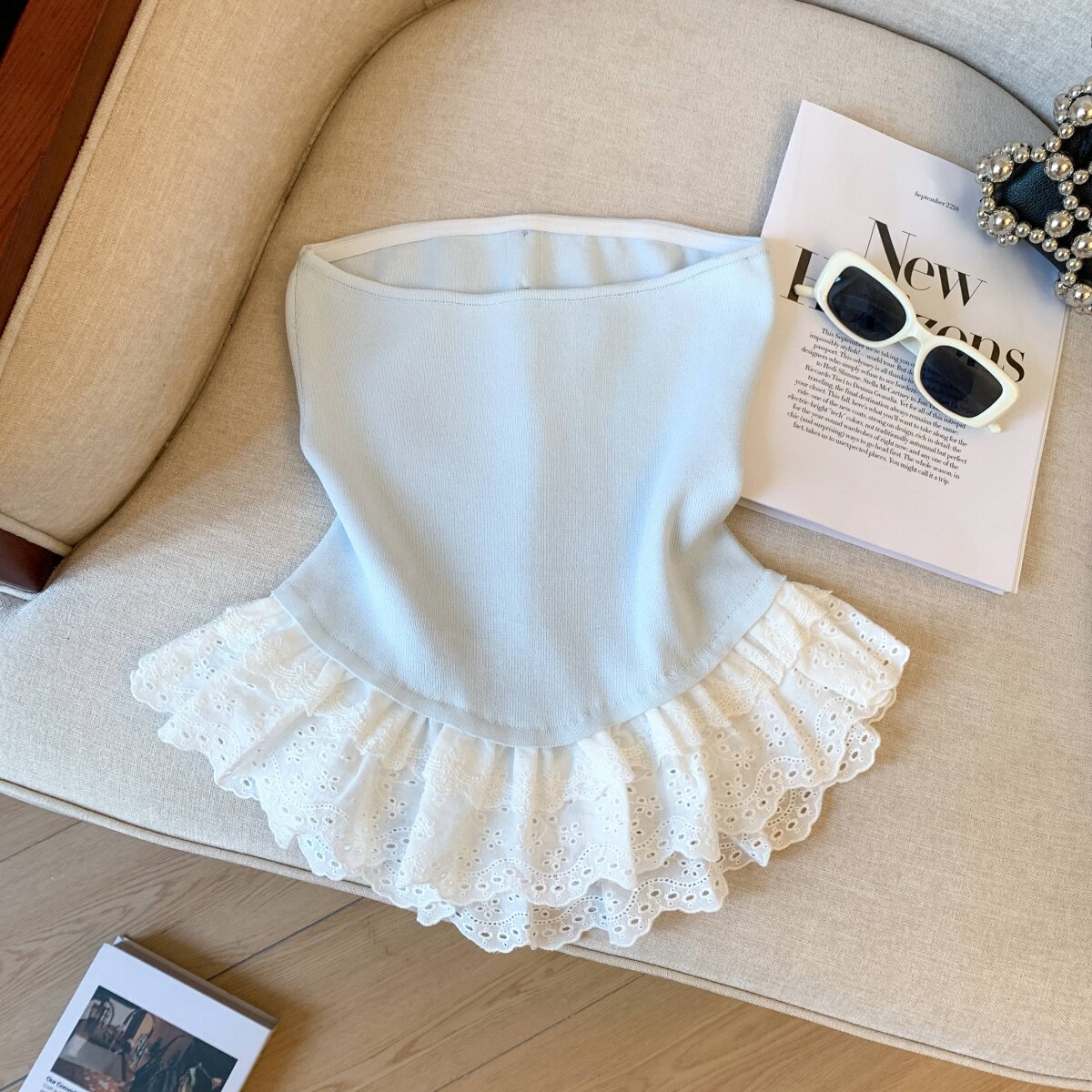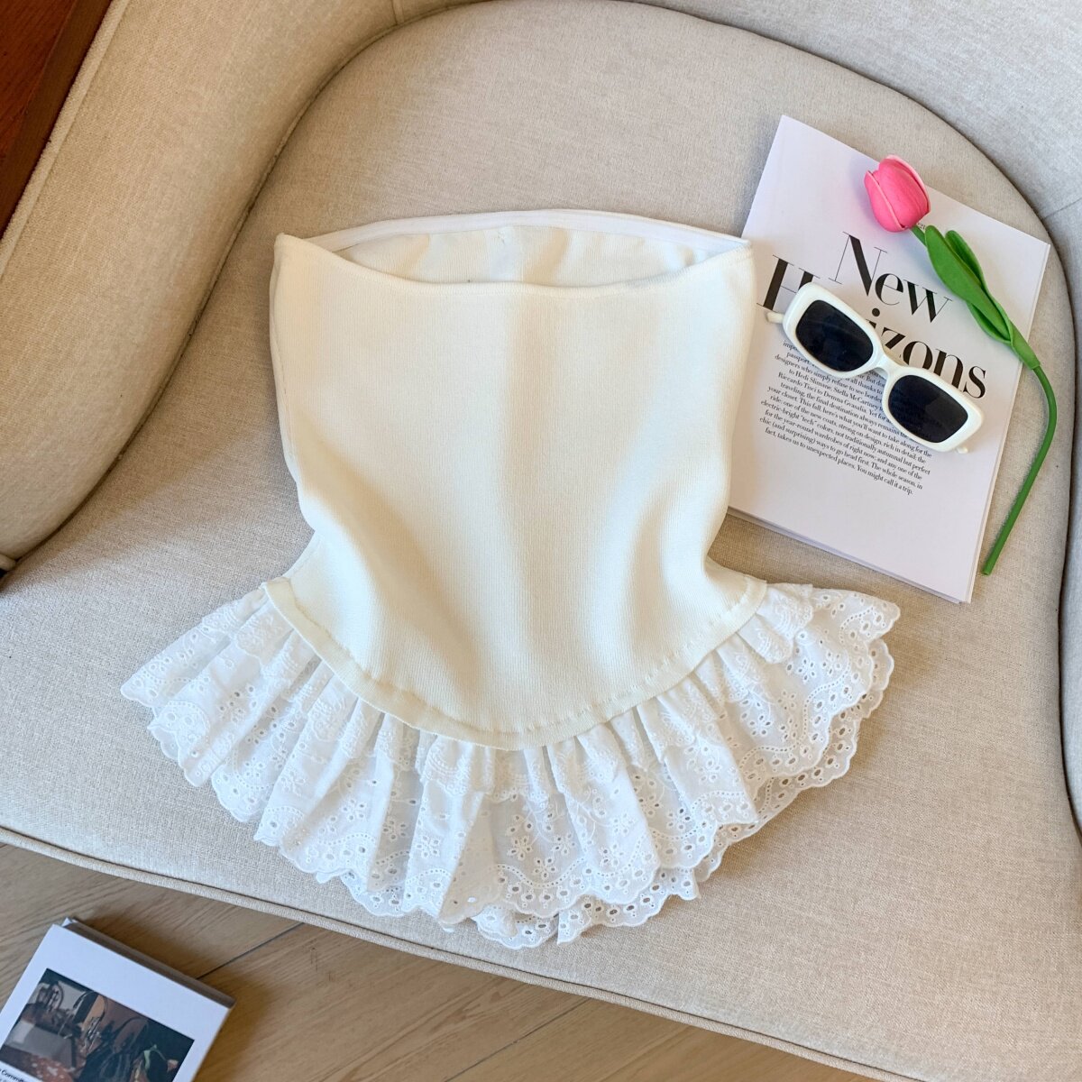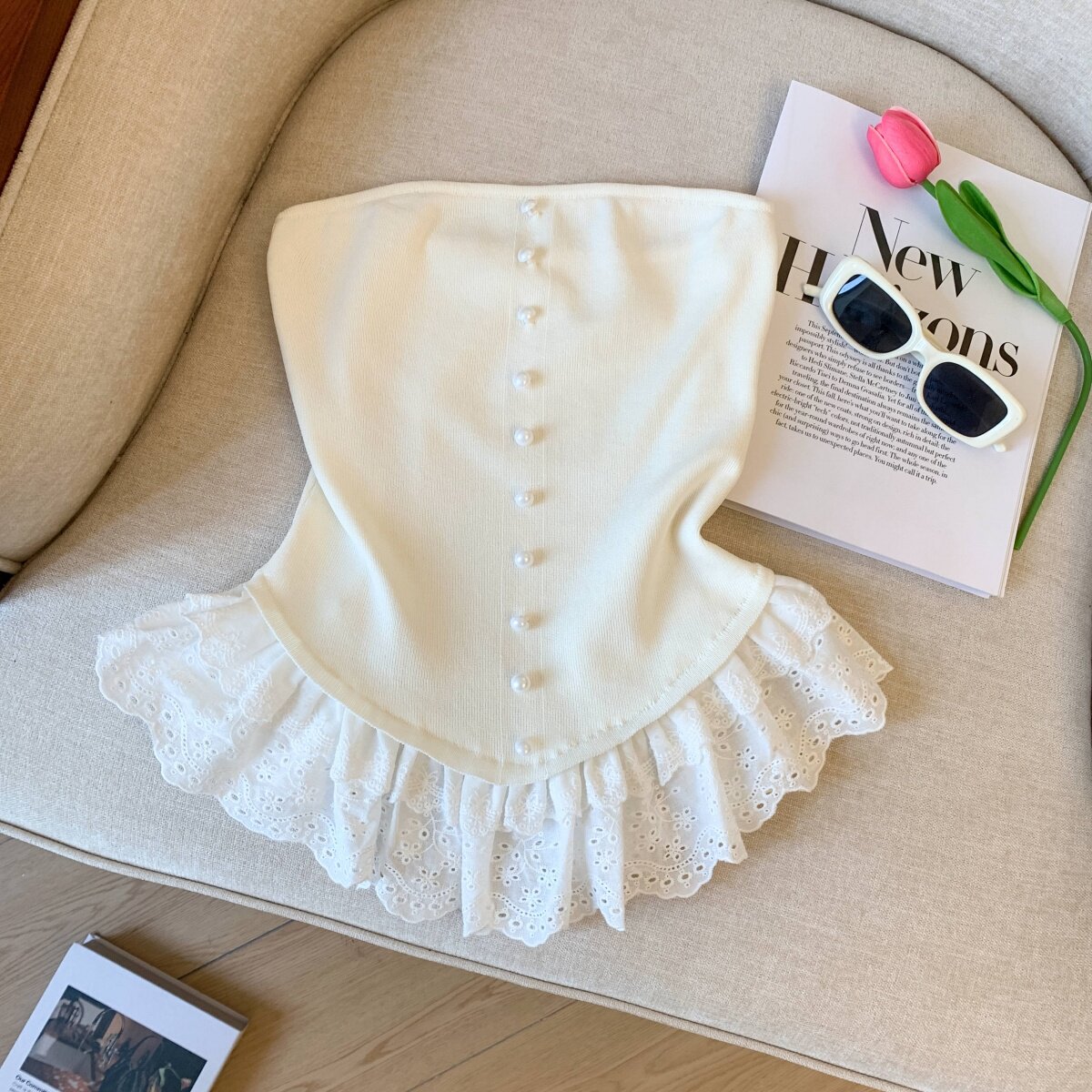 專櫃撤廻剪標芭蕾風花邊下班拼接抹胸背心女夏季新款甜美漂亮上衣